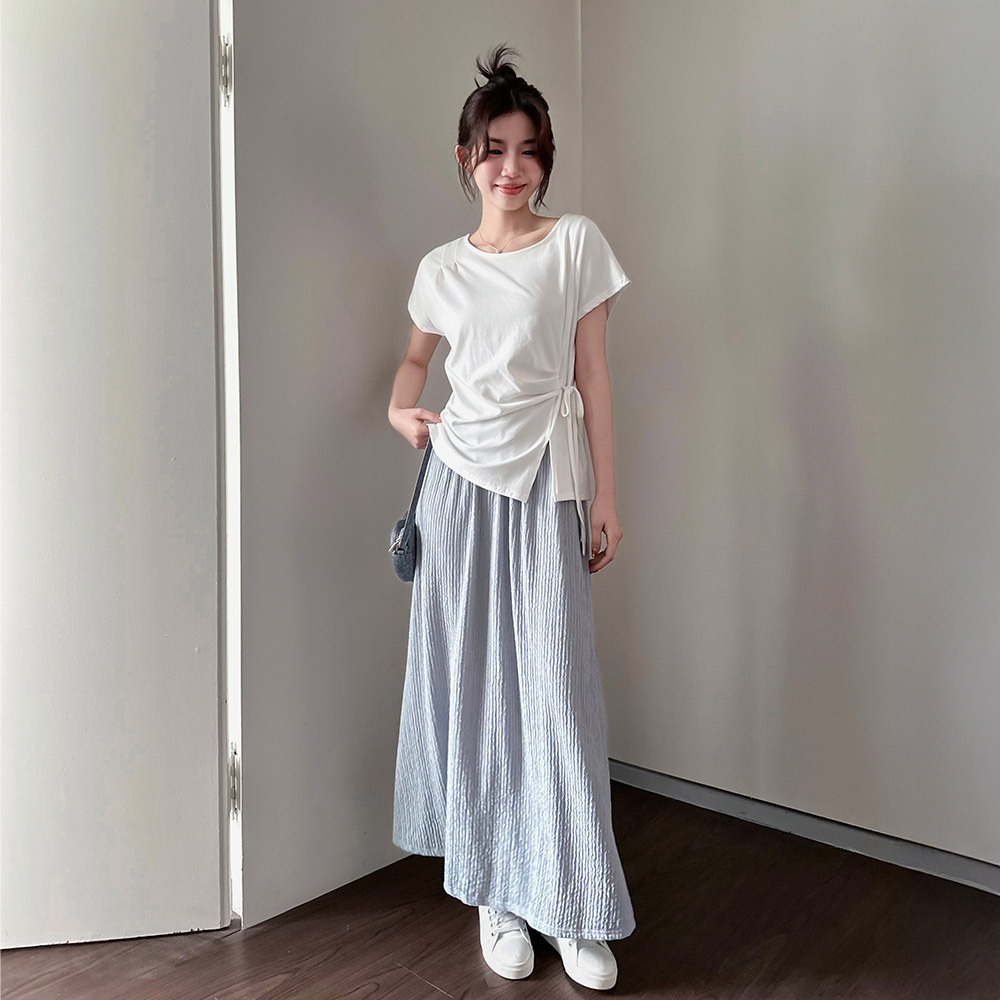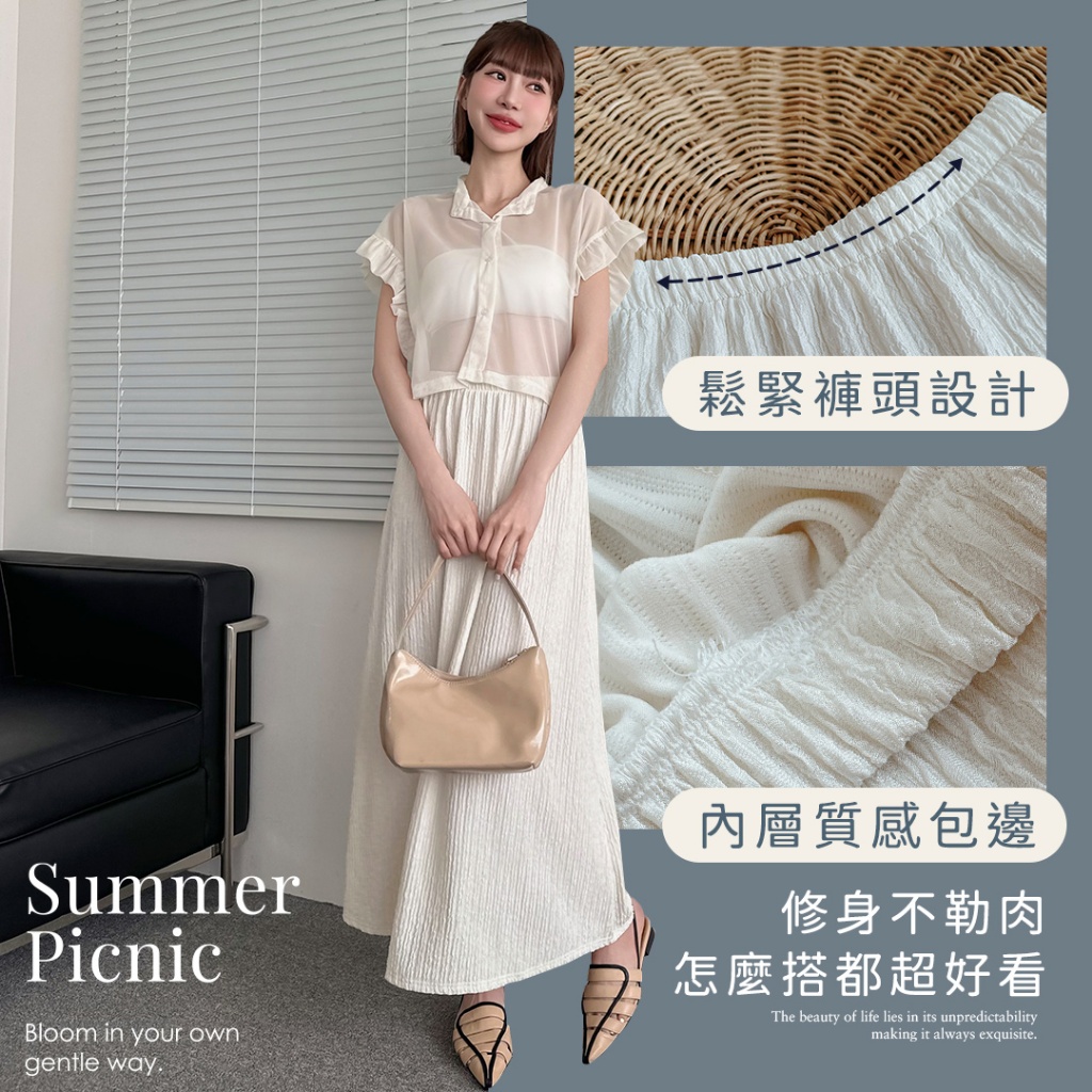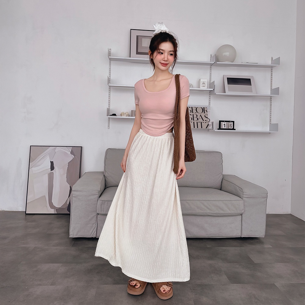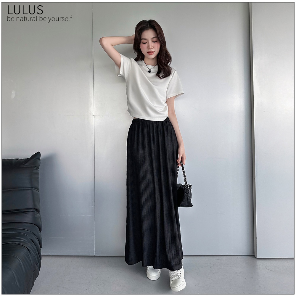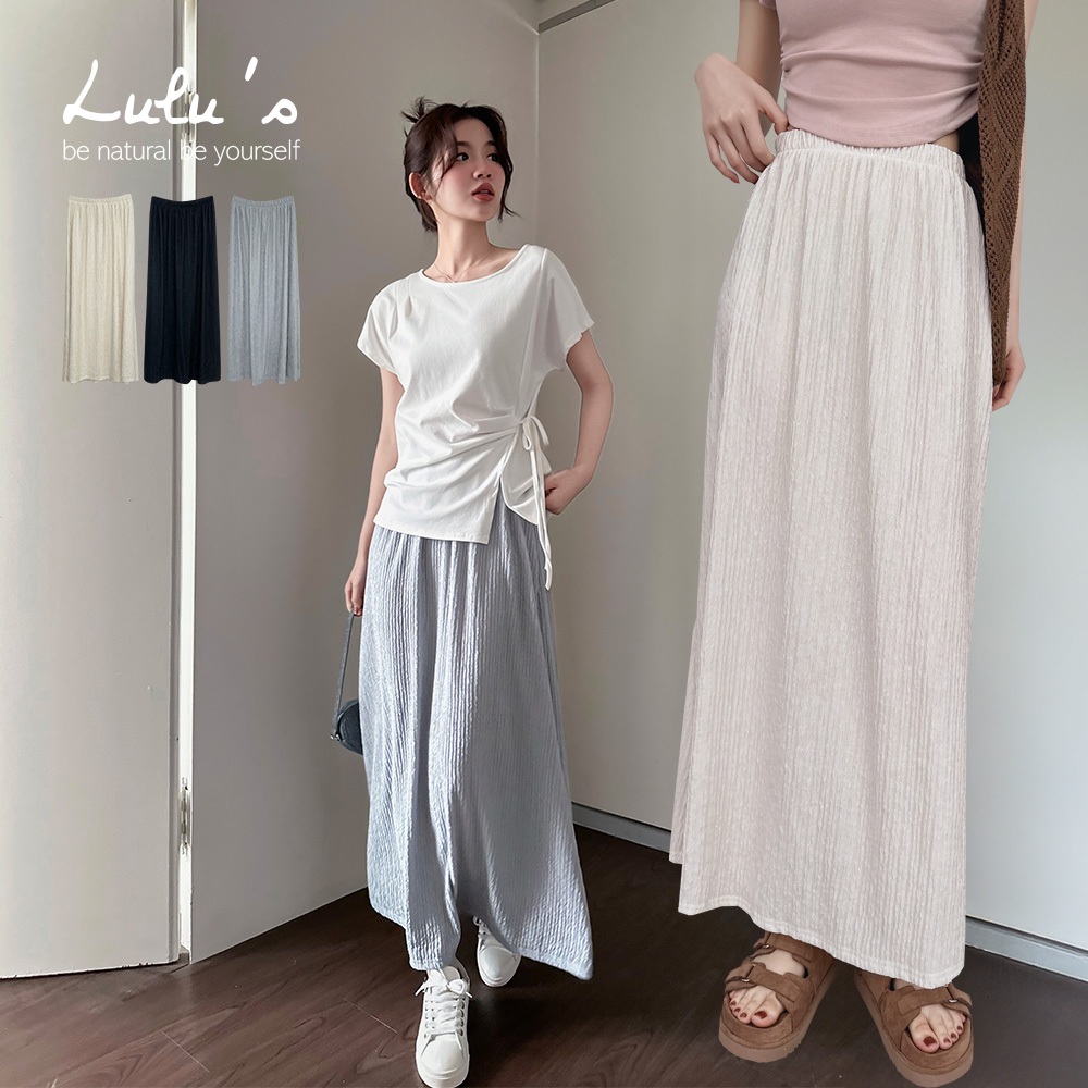LULUS/氣質立體壓紋長裙3色【A05250055】半身裙 傘狀 鬆緊 250625灰藍|杏|黑LULUS