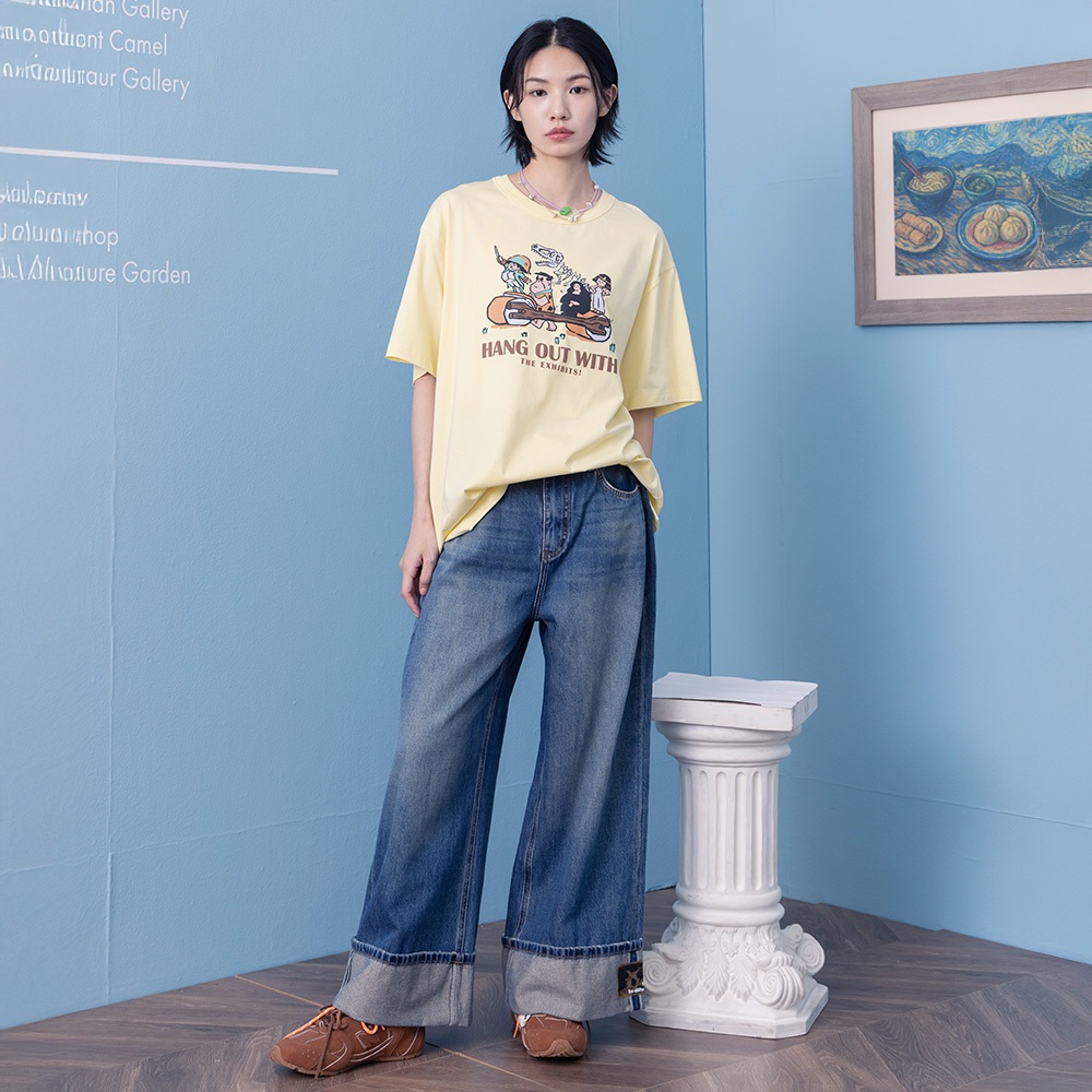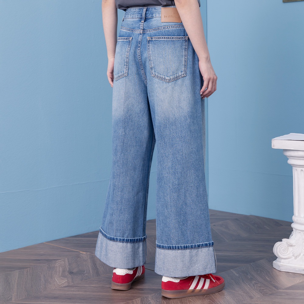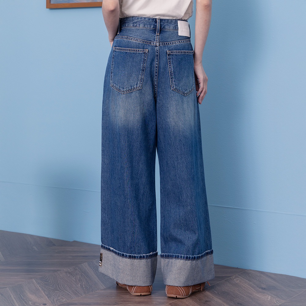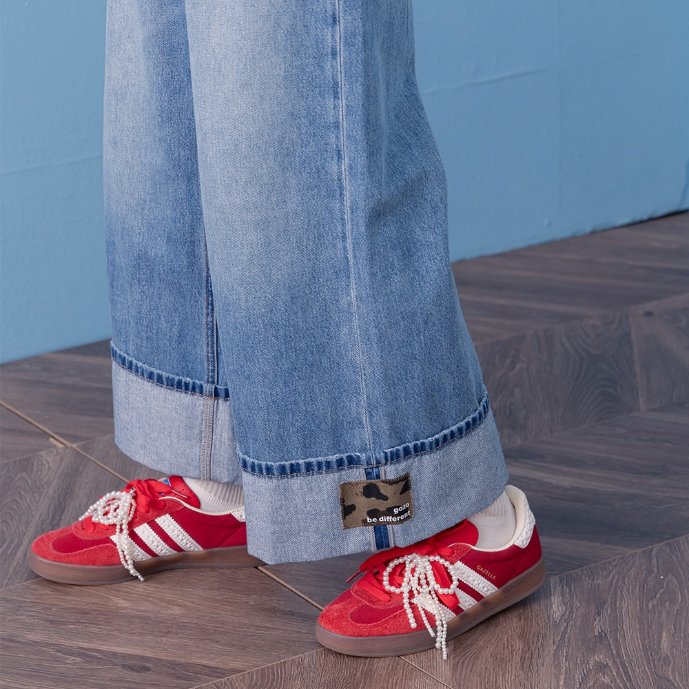 【gozo】豹紋布標反折九分牛仔寬褲(藍色/深藍_S/M/L) | 女裝 修身 百搭深藍,S|深藍,M|深藍,L|淺藍,S|淺藍,M|淺藍,Lgozo 品牌旗艦店
