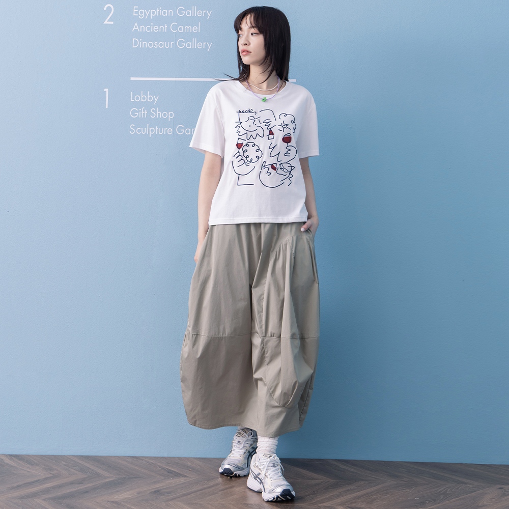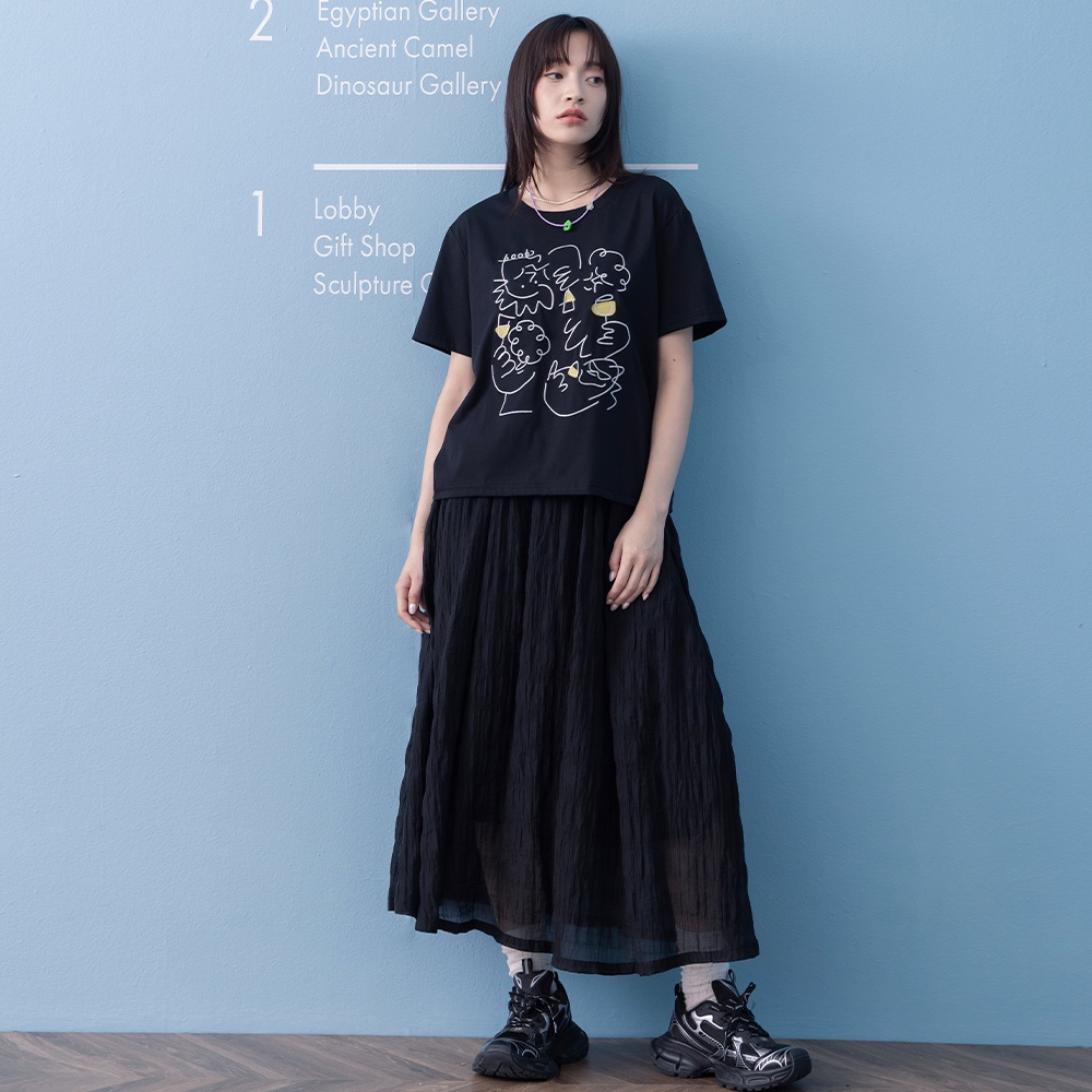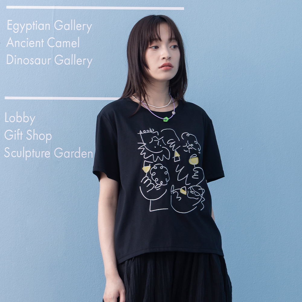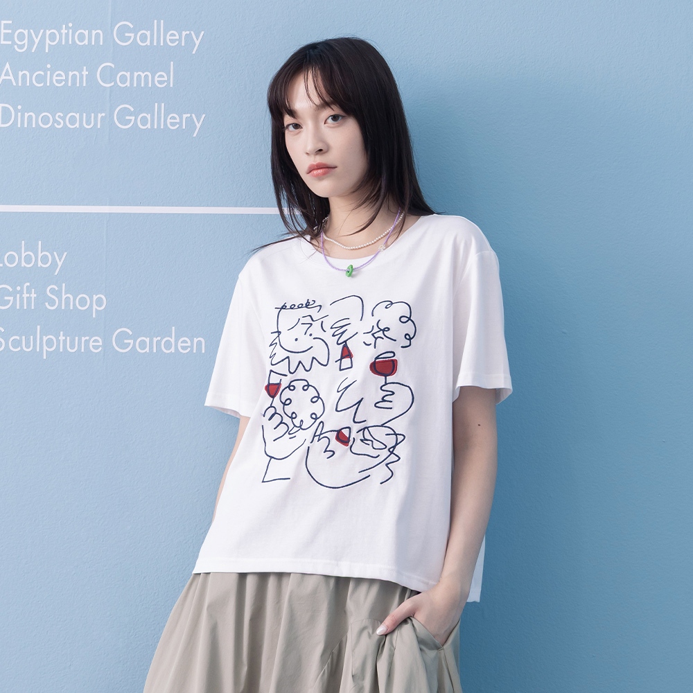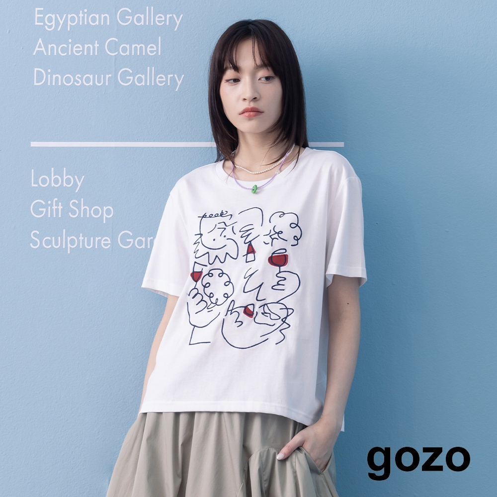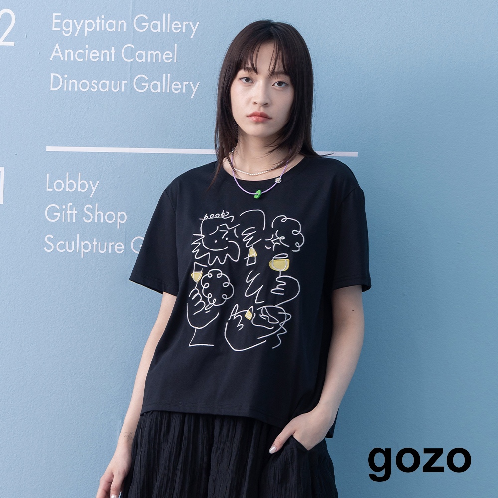 【gozo】➤奶奶聚會線條繡花涼感T恤(白色/黑色_F) | 女裝 圓領 涼感白色,F|黑色,FT-shirtsgozo 品牌旗艦店