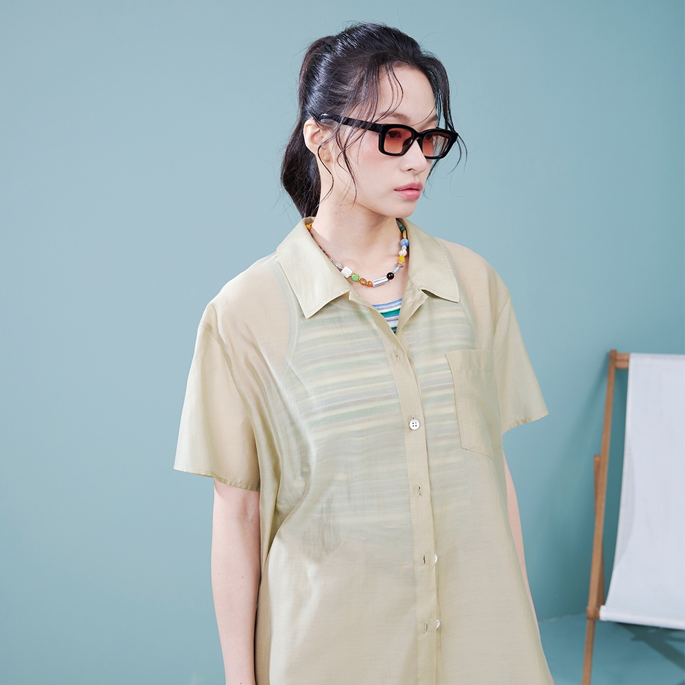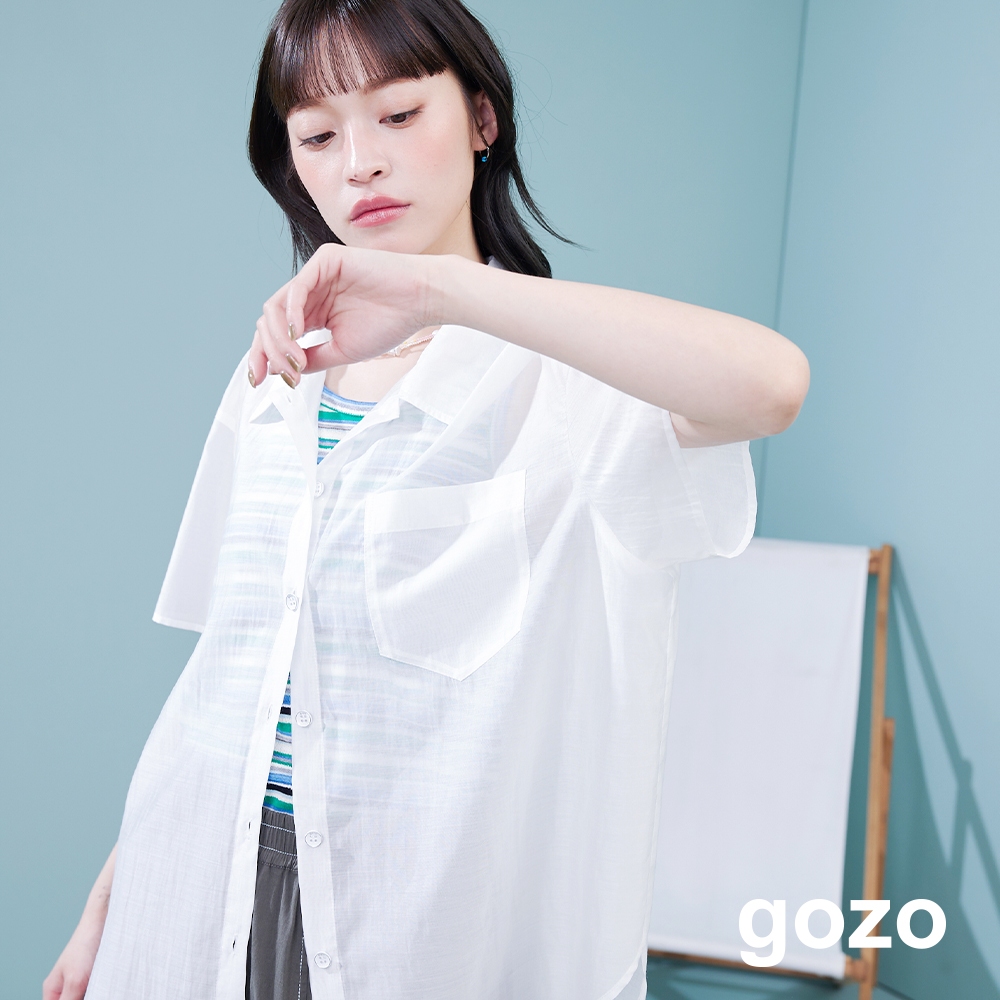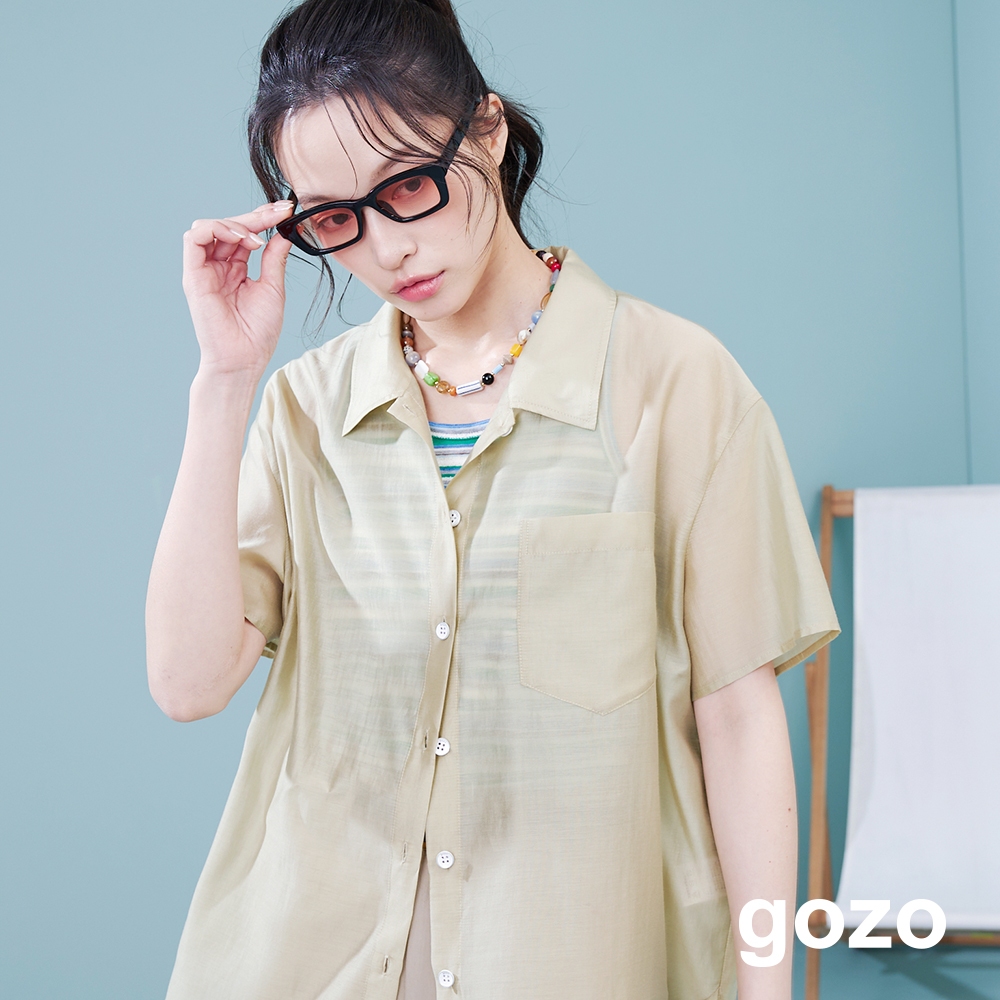 【gozo】涼感天絲透膚繭型短袖襯衫(白色/綠色_F) | 女裝 襯衫領 百搭白色,F|綠色,FShirts & Blousesgozo 品牌旗艦店