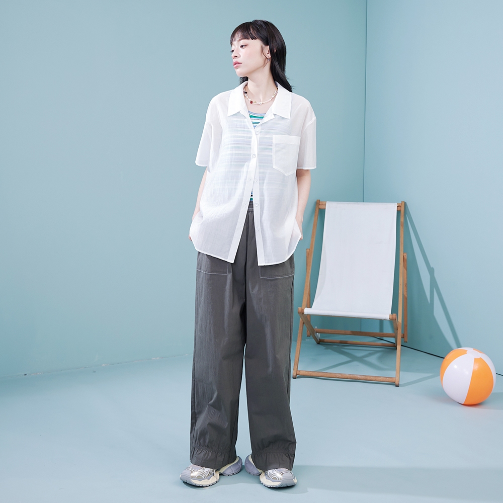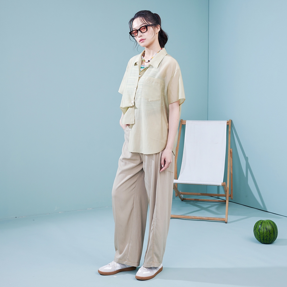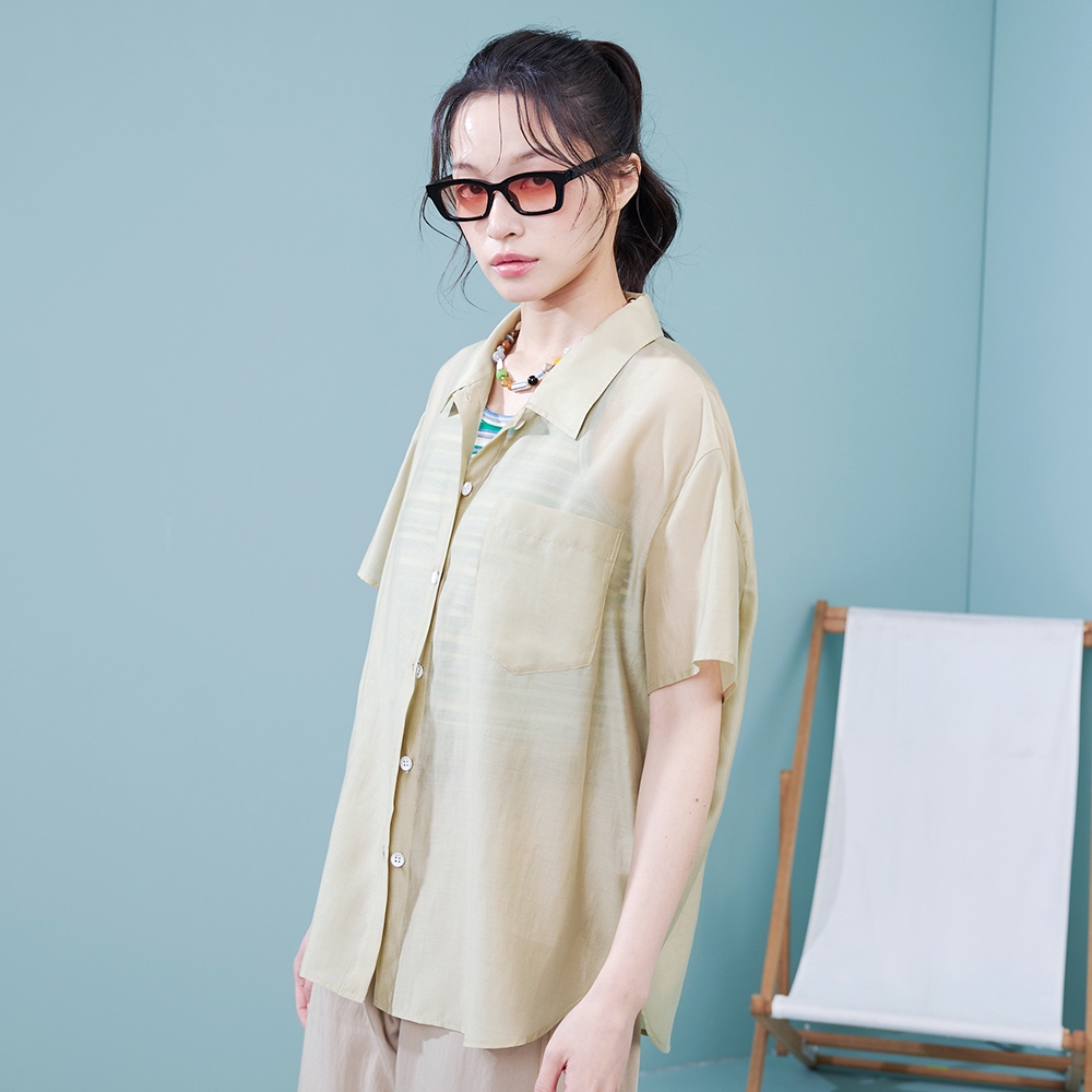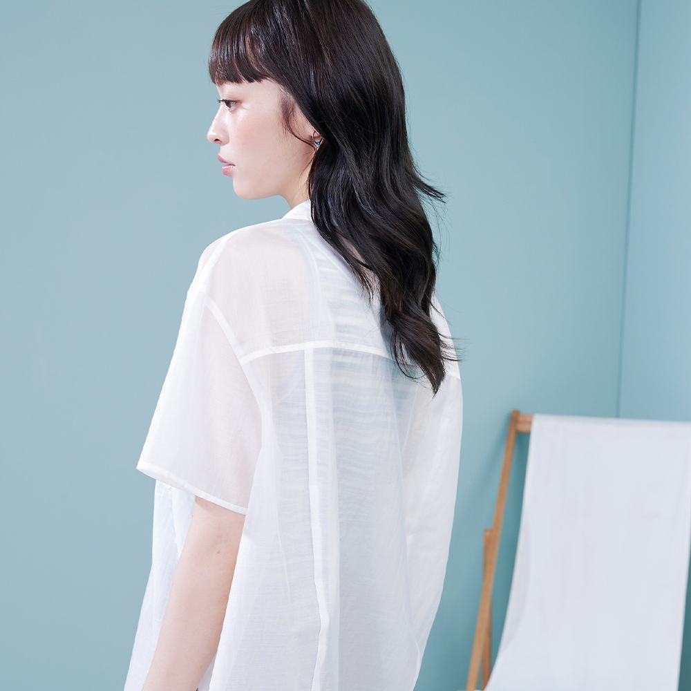 【gozo】涼感天絲透膚繭型短袖襯衫(白色/綠色_F) | 女裝 襯衫領 百搭白色,F|綠色,FShirts & Blousesgozo 品牌旗艦店