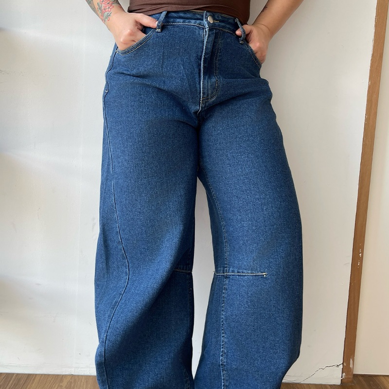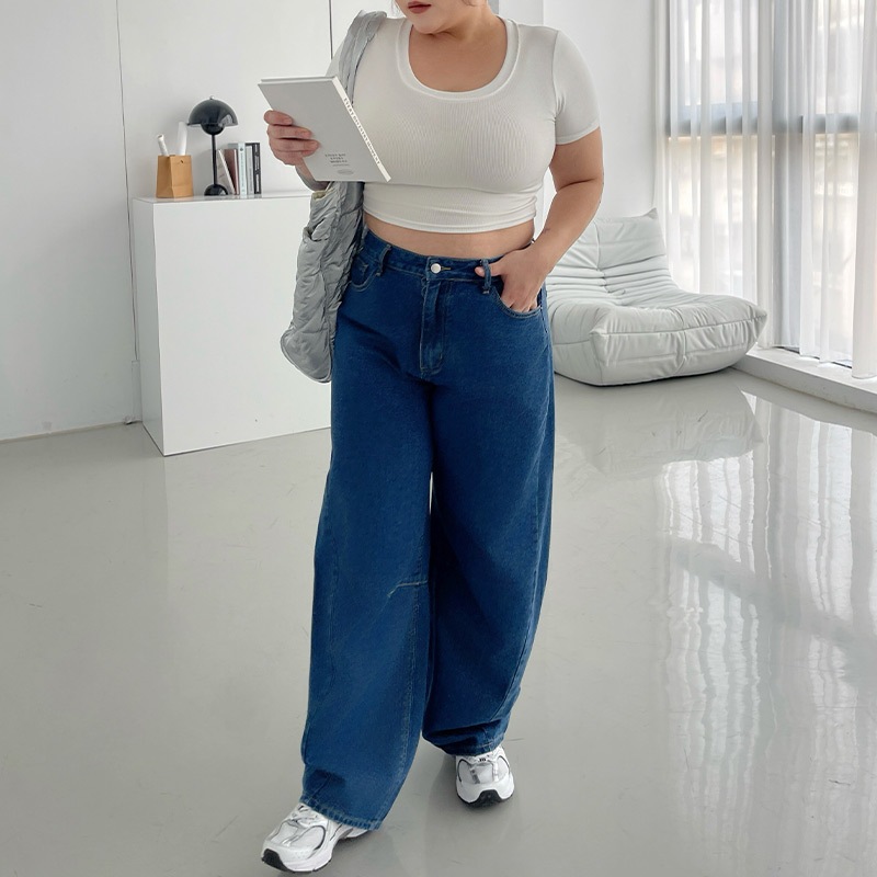 LULUS/PLUS/中大尺碼/修修腿車線牛仔彈性繭型彎刀褲S-XL中藍【A04250034】250326中藍L|中藍M|中藍S|中藍XLPantsLULUS