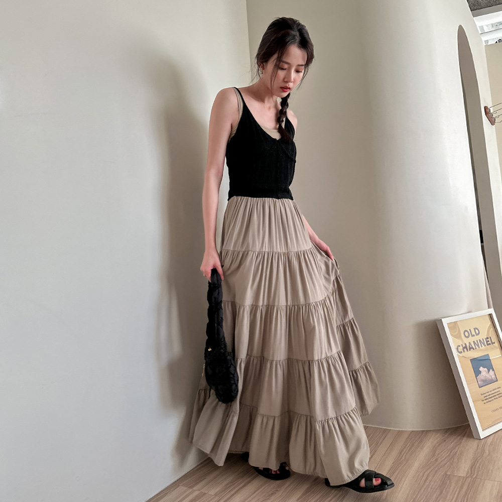 LULUS/屬於長腿姊姊的蛋糕裙4色【A05230046】渡假長裙 裙子230629卡其|杏|黑|白LULUS