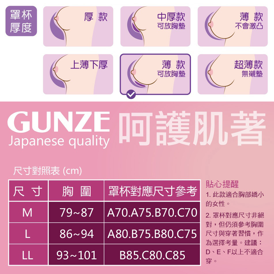【GUNZE郡是】日本製無痕bra背心-米白M|L|LLBrasGunze郡是|日本官方唯一授權