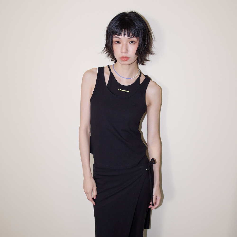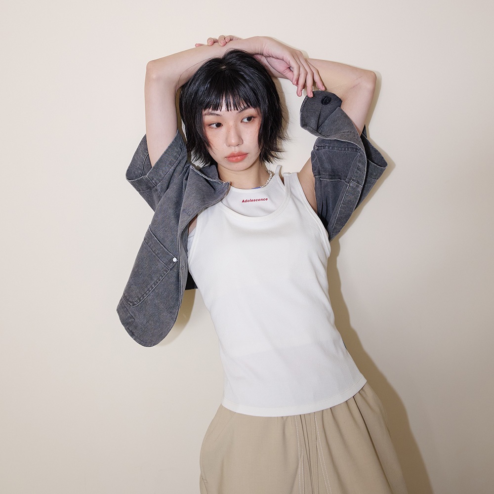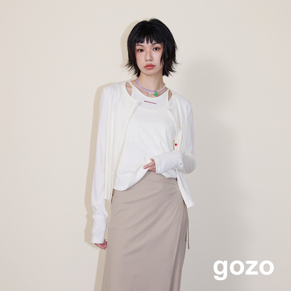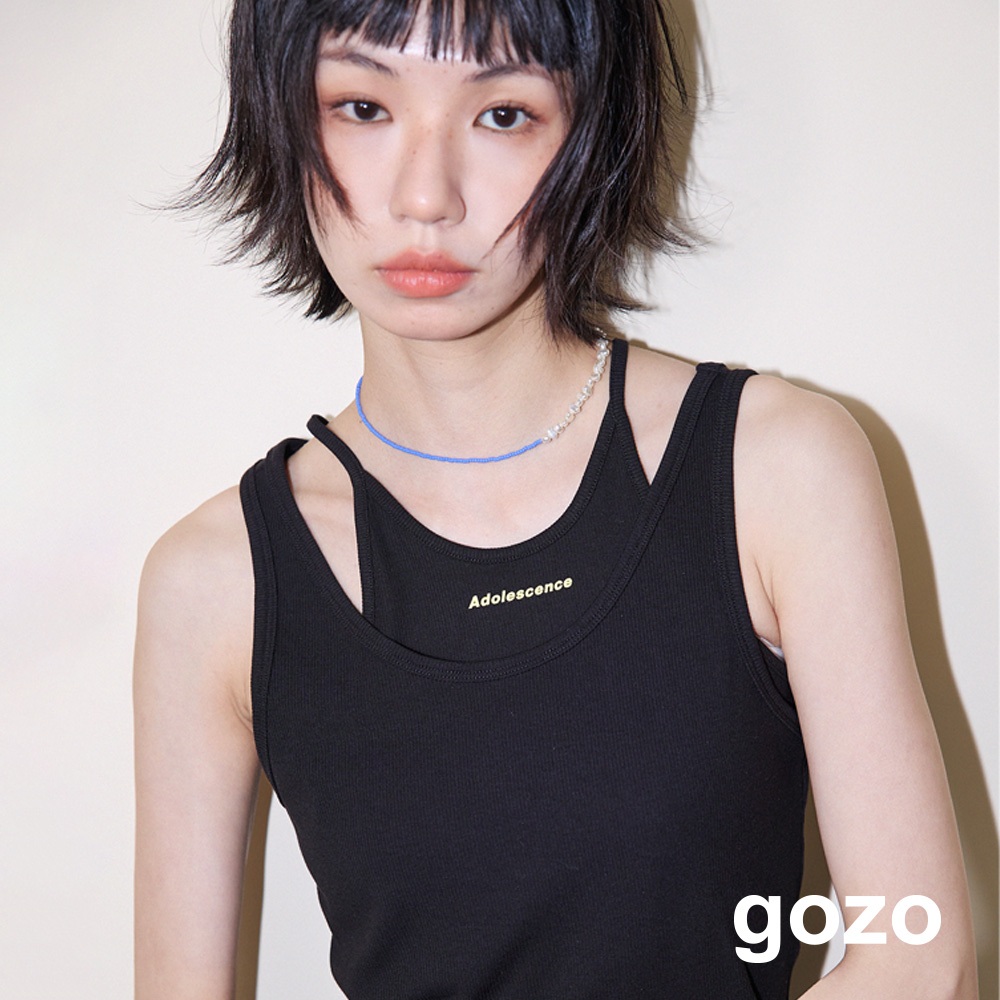 【gozo】A|英文字印花兩件式彈性合身背心(黑色/米白_F) | 女裝 圓領 百搭黑色,F|米白,FTanks & Camisolesgozo 品牌旗艦店