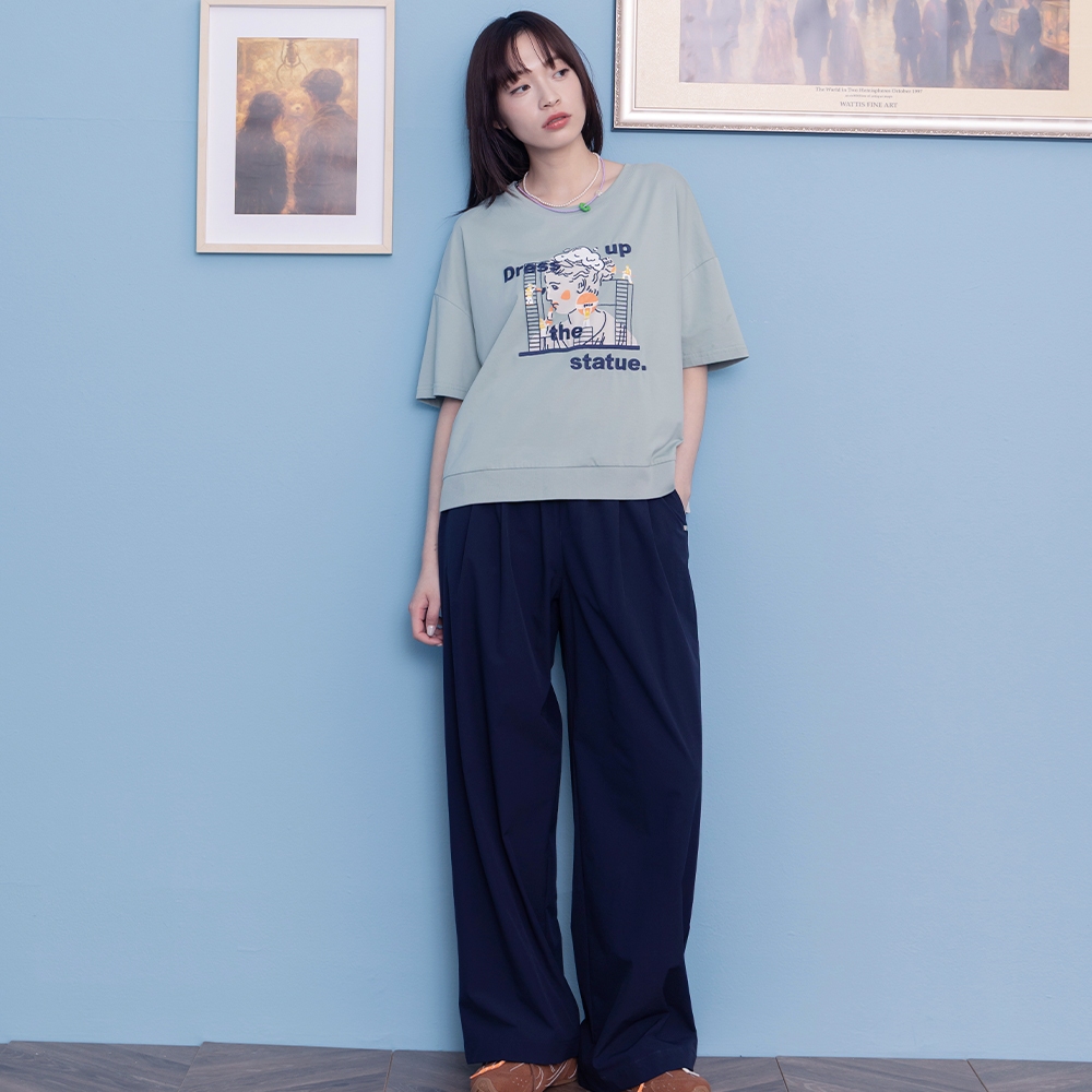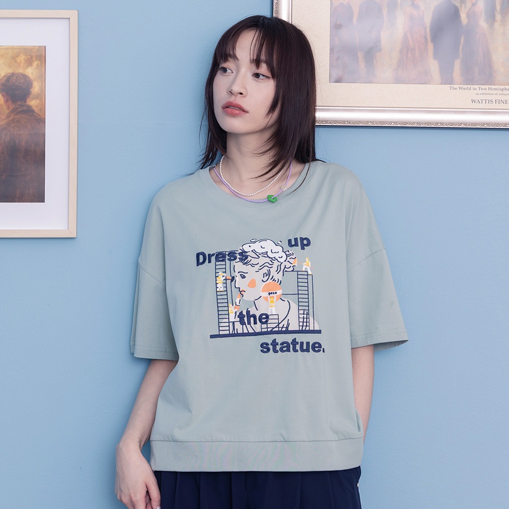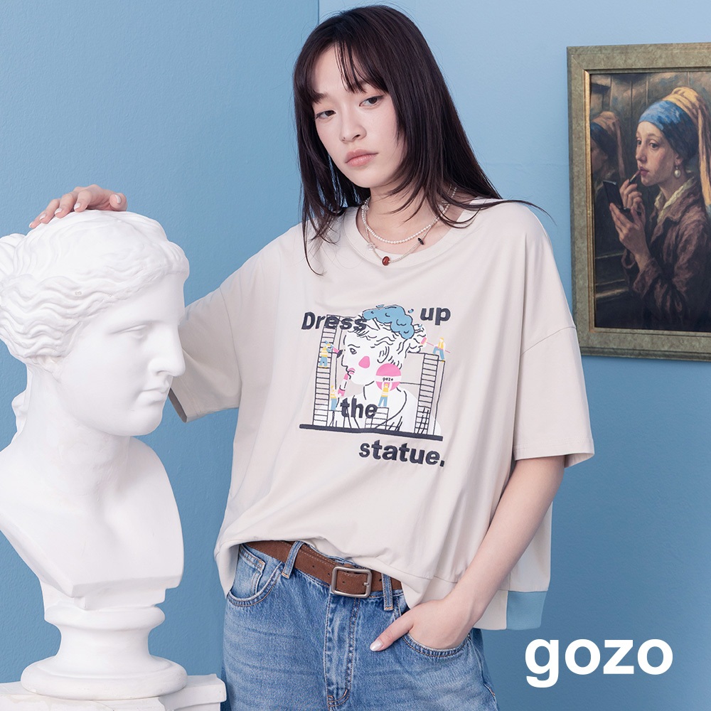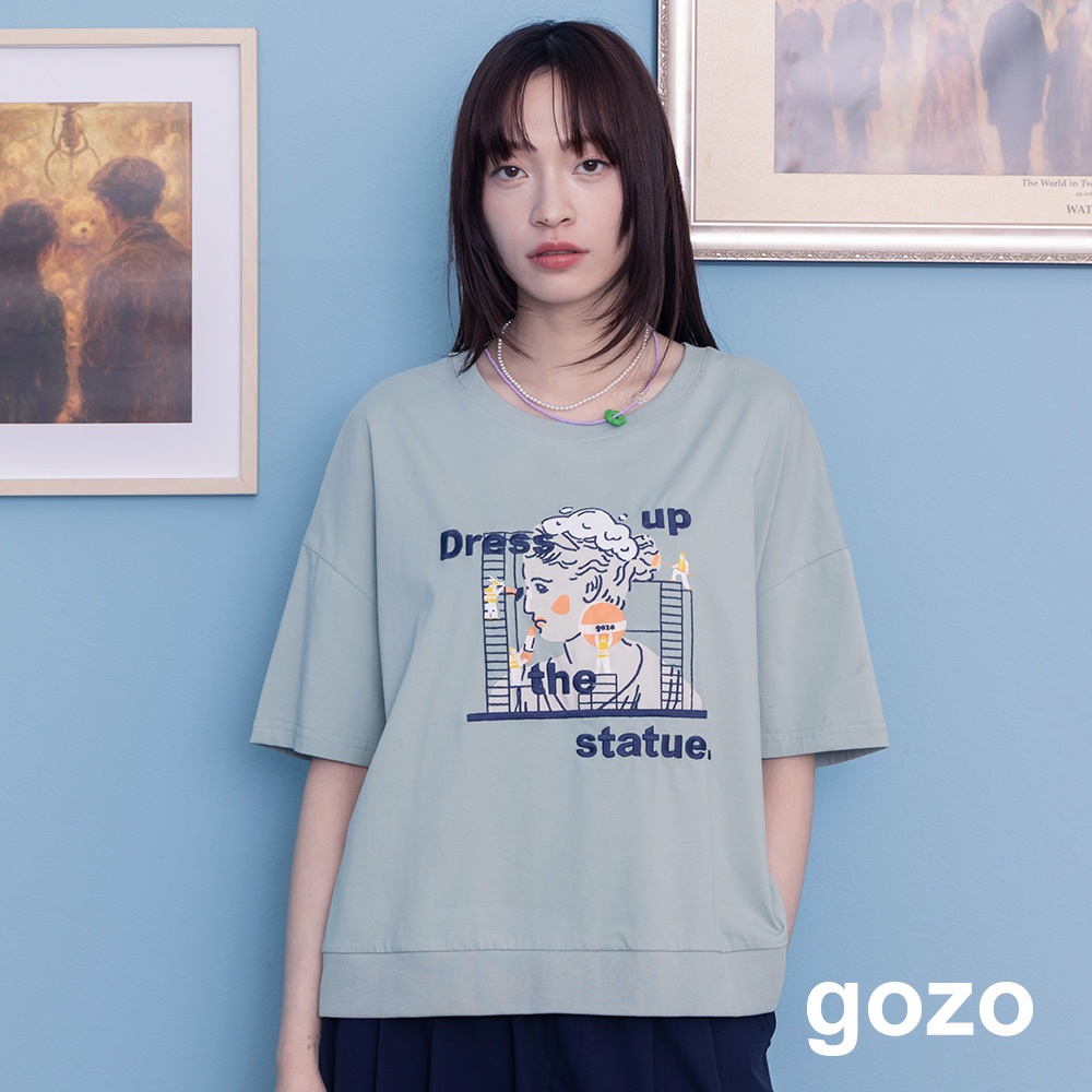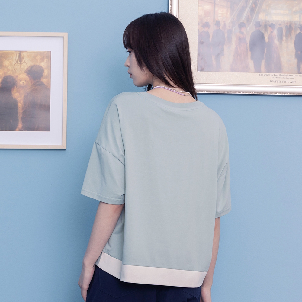【gozo】為雕像化妝下擺配色羅紋T恤(綠色/米色_F) | 女裝 圓領 休閒綠色,F|米色,FT-shirtsgozo 品牌旗艦店