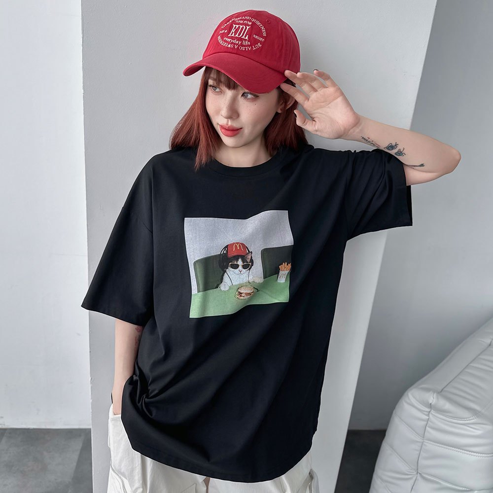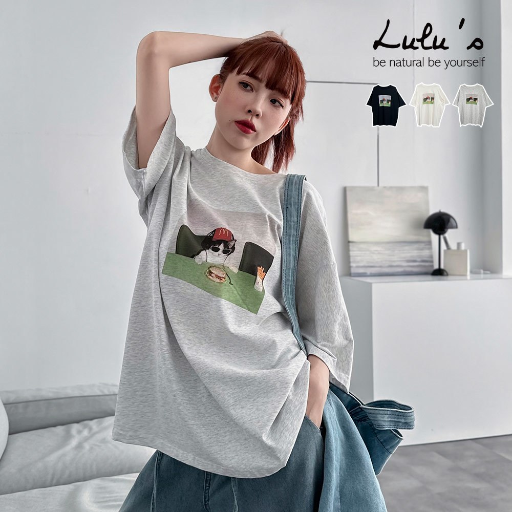 LULUS/速食貓貓寬鬆T恤3色【A01250547】貓咪 寬T 250716黑|白|白灰T-shirtsLULUS