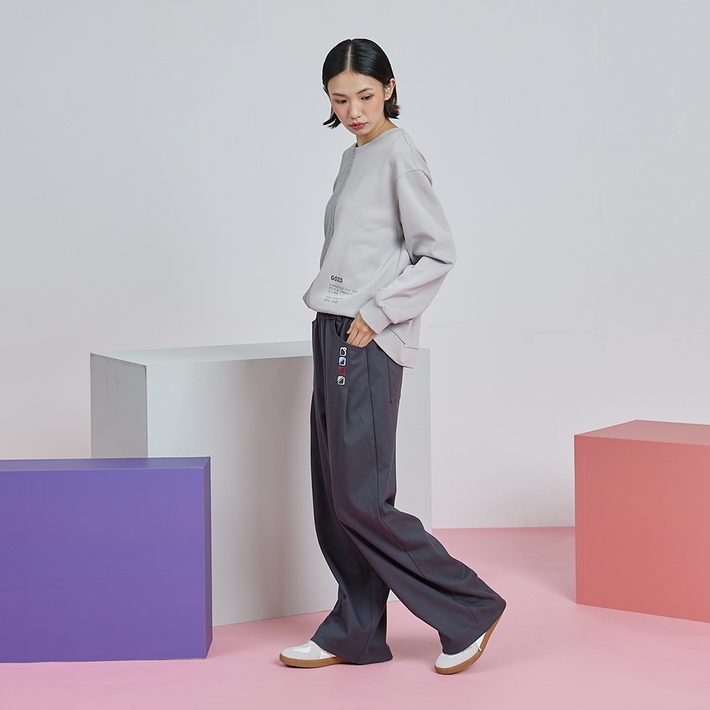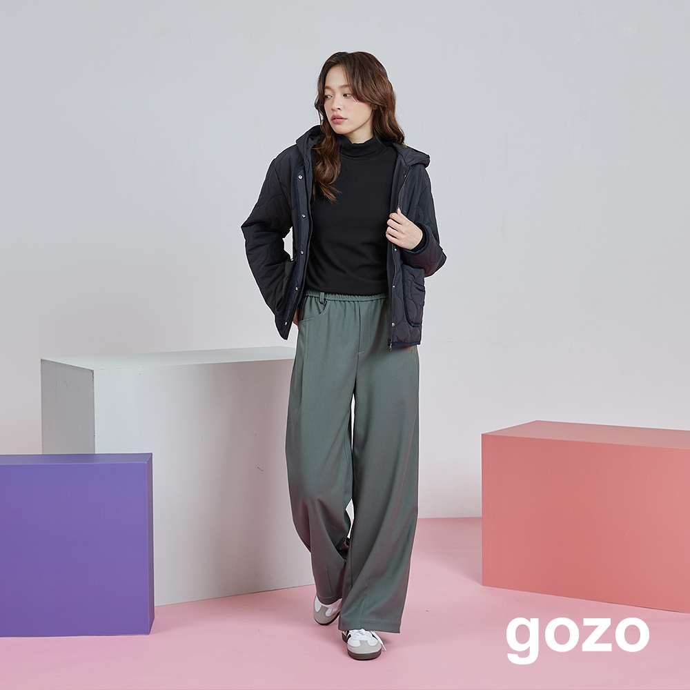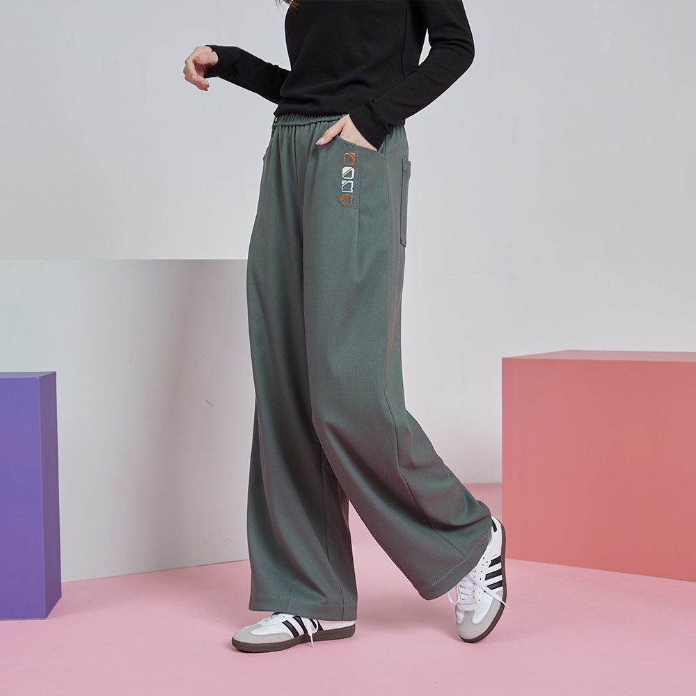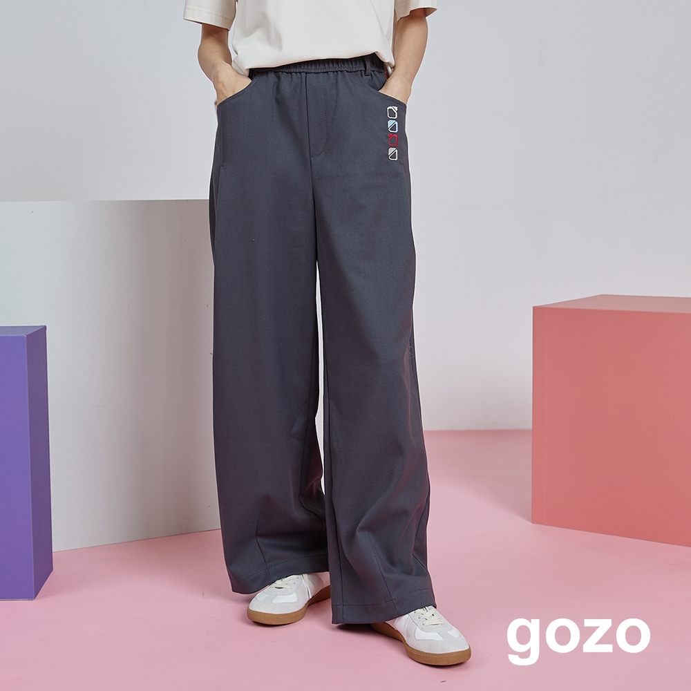 【gozo】gozo幾何字母鬆緊打褶寬褲(深灰/綠色_M/L) | 女裝 顯瘦 百搭深灰,M|深灰,L|綠色,M|綠色,LPantsgozo 品牌旗艦店