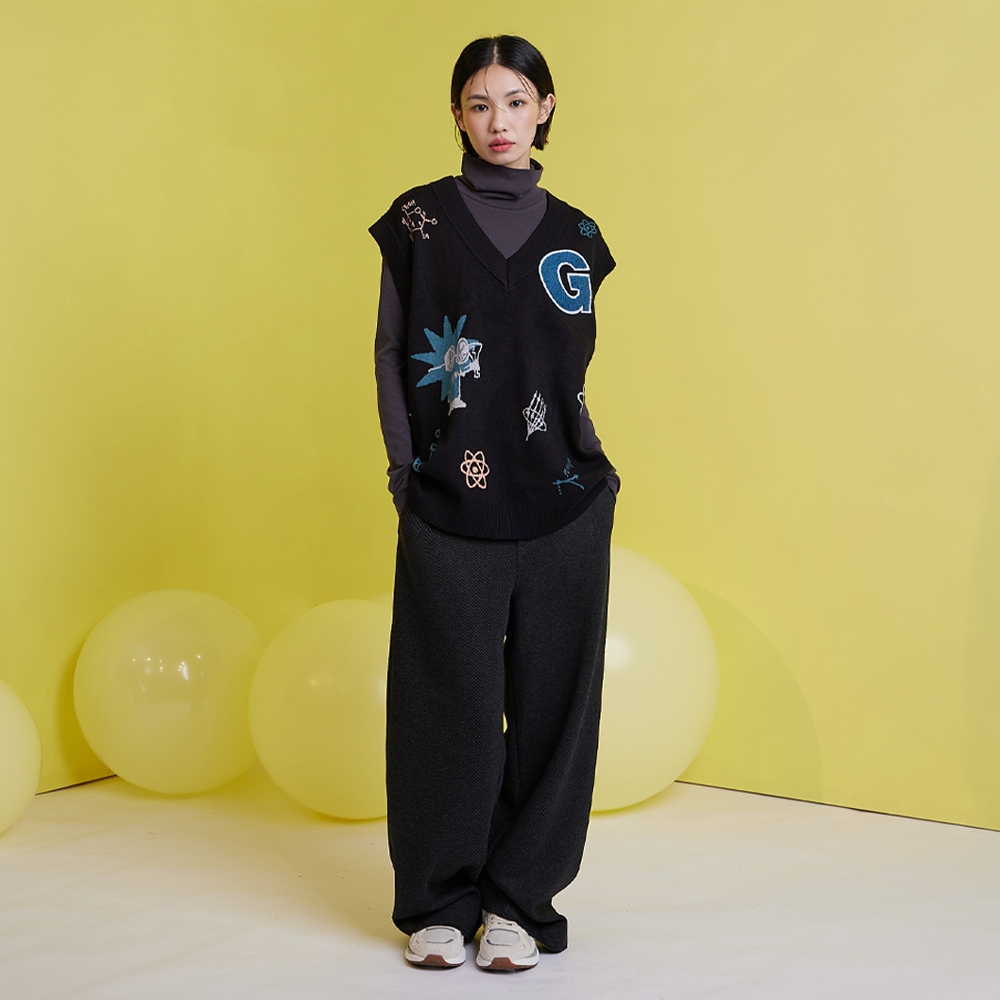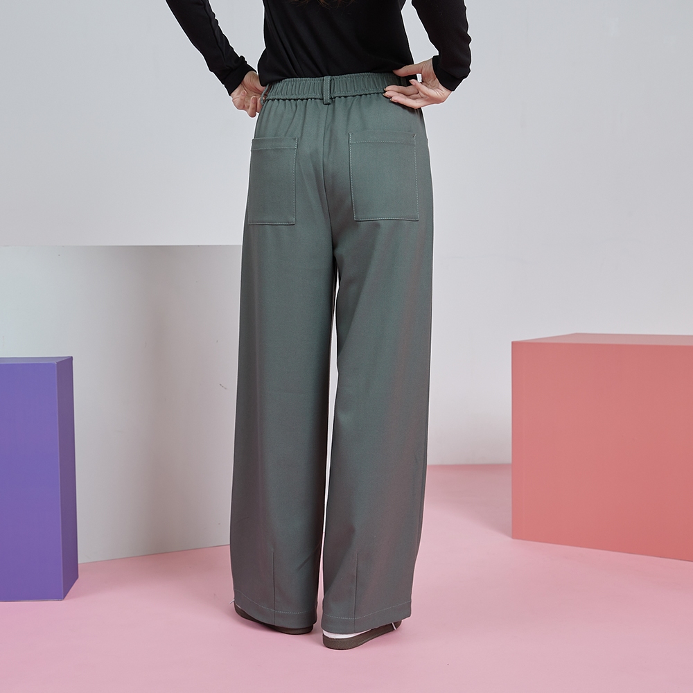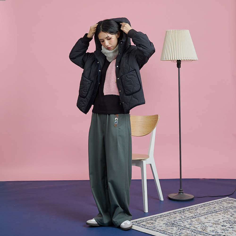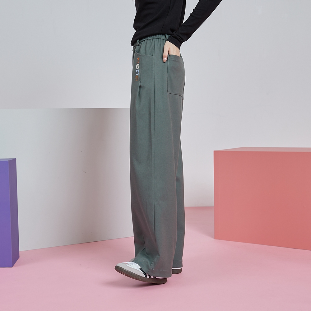 【gozo】gozo幾何字母鬆緊打褶寬褲(深灰/綠色_M/L) | 女裝 顯瘦 百搭深灰,M|深灰,L|綠色,M|綠色,LPantsgozo 品牌旗艦店