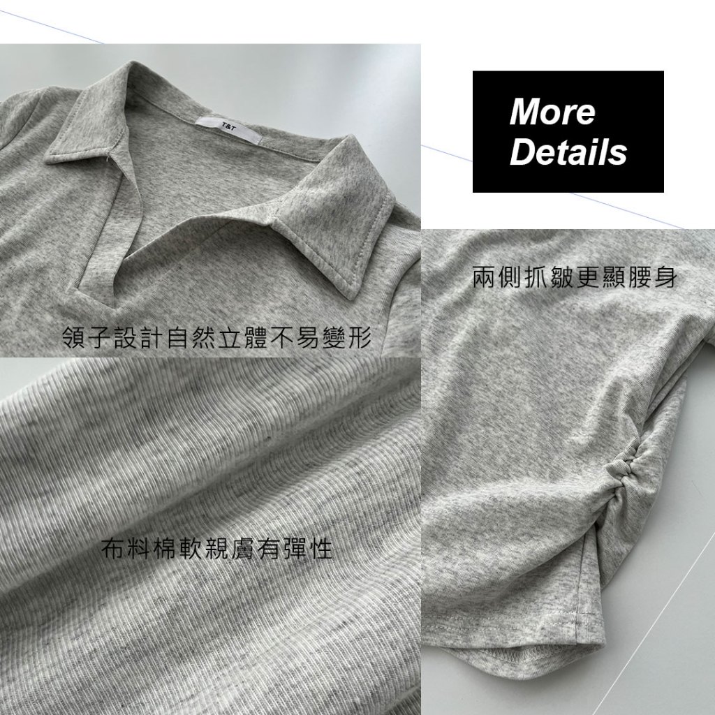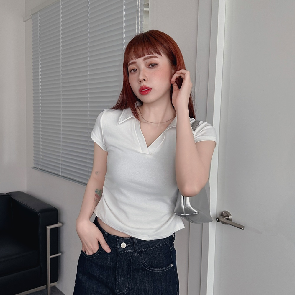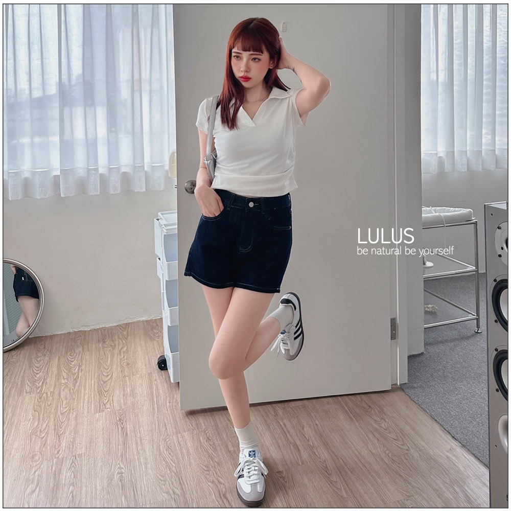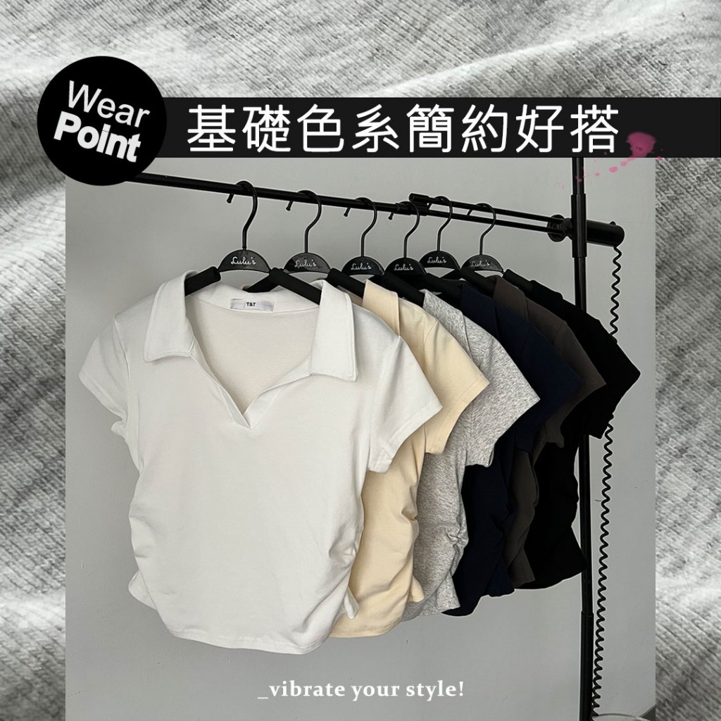 LULUS/顯身材側抓皺POLO領上衣6色【A01250283】V領 短版上衣 250528杏|深灰|黑|藍|白|白灰T-shirtsLULUS