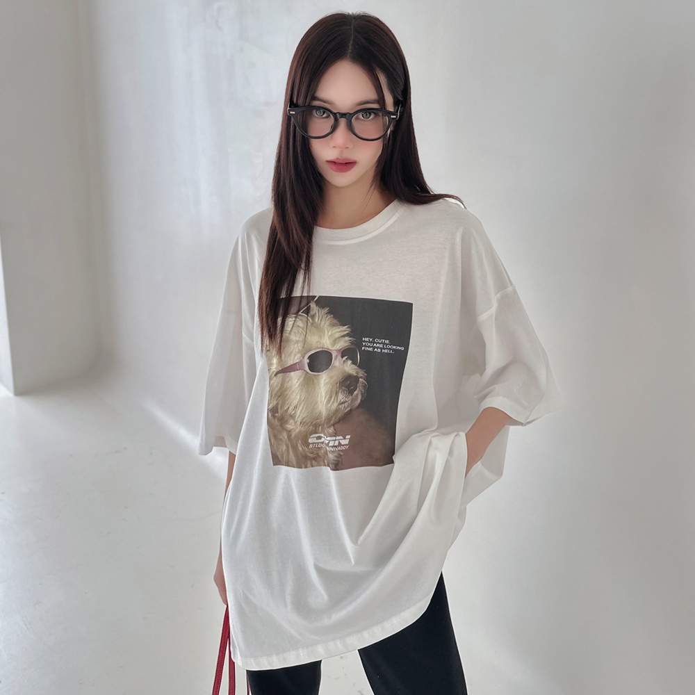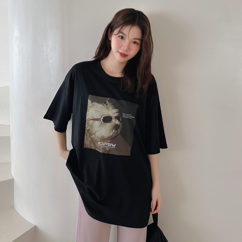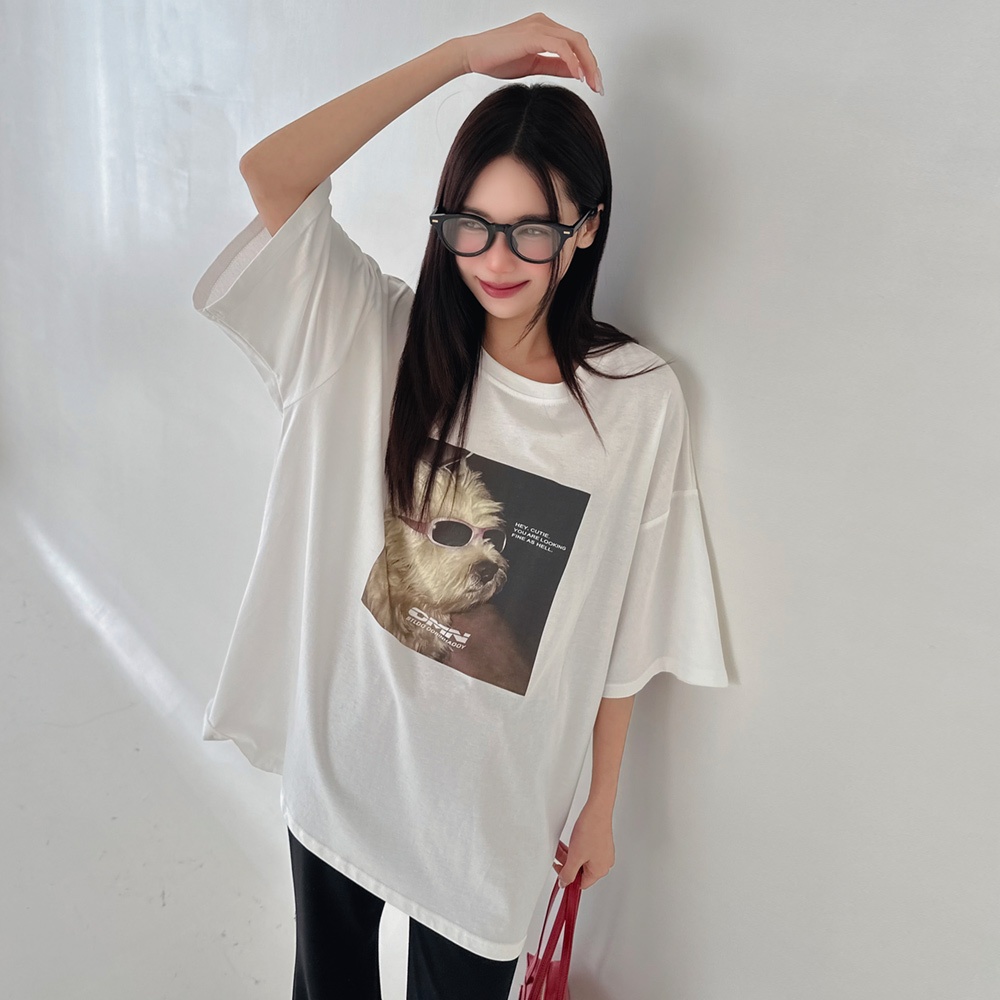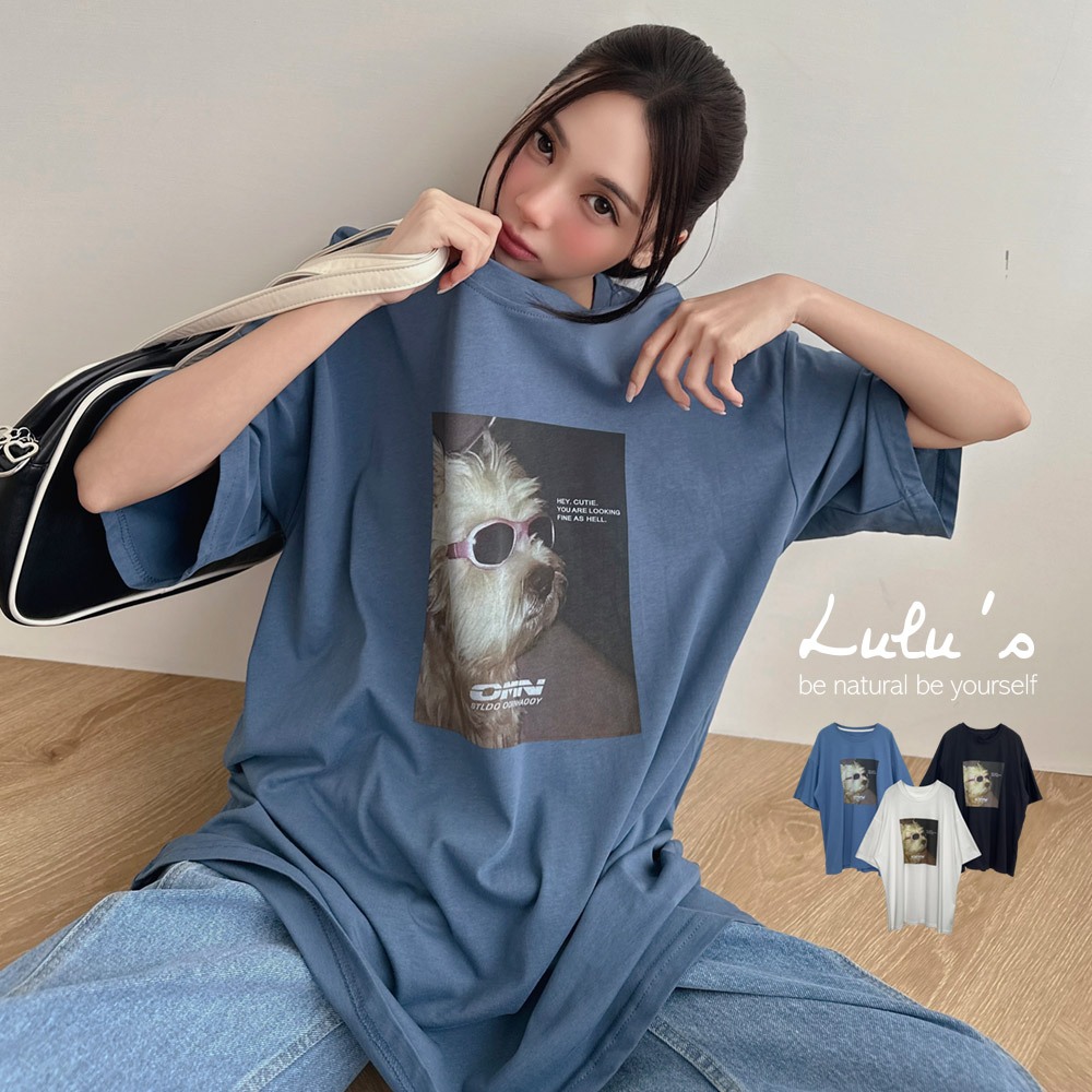 LULUS/墨鏡狗狗T恤3色【A01250144】250319黑|藍|白T-shirtsLULUS