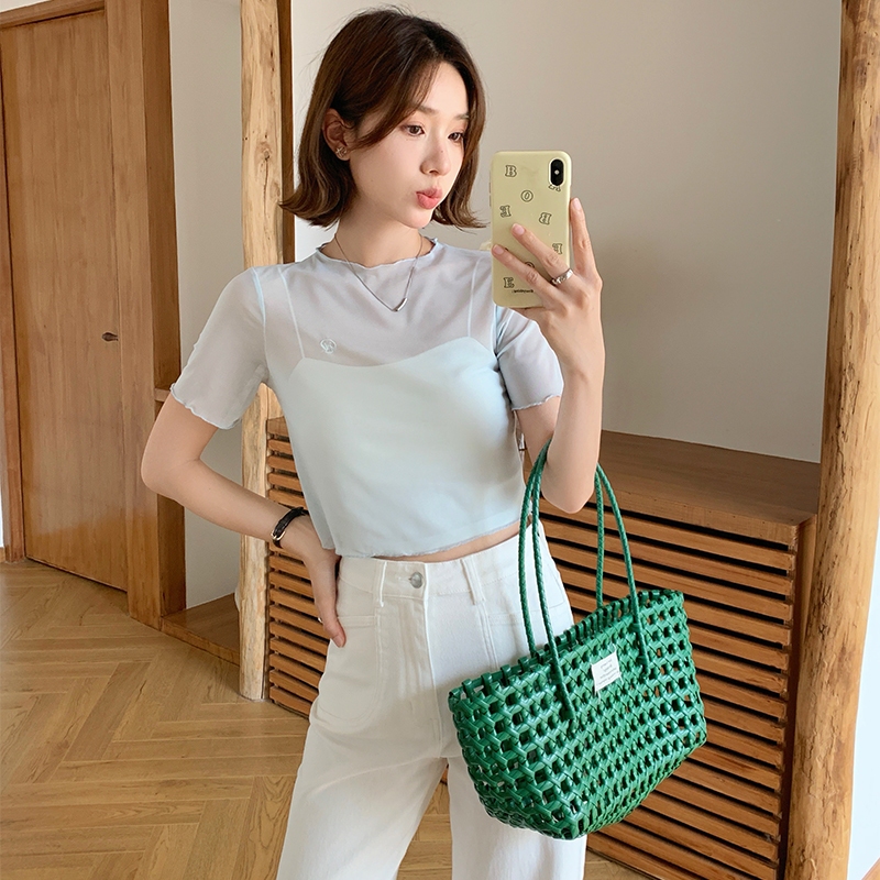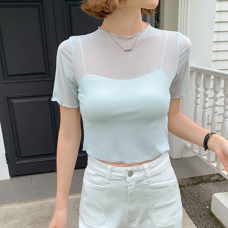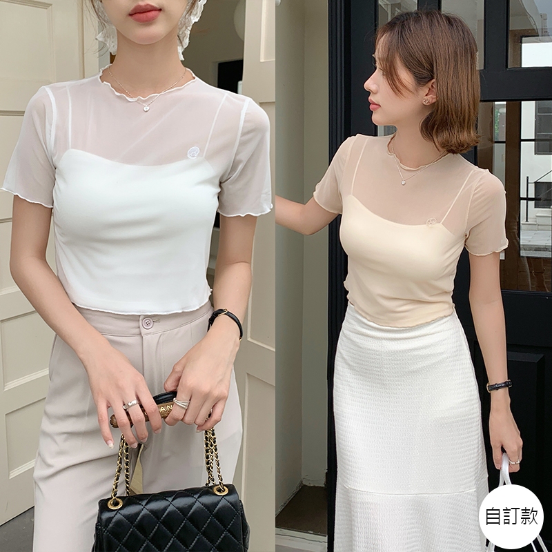 【HARPER】品牌自訂透膚網紗刺繡上衣 | 現貨 短袖上衣 短版 透膚【CLB49224J】白,S~M|白,L~XL|奶油黃,S~M|奶油黃,L~XL|湖水綠,S~M|湖水綠,L~XLT-shirtsHARPER