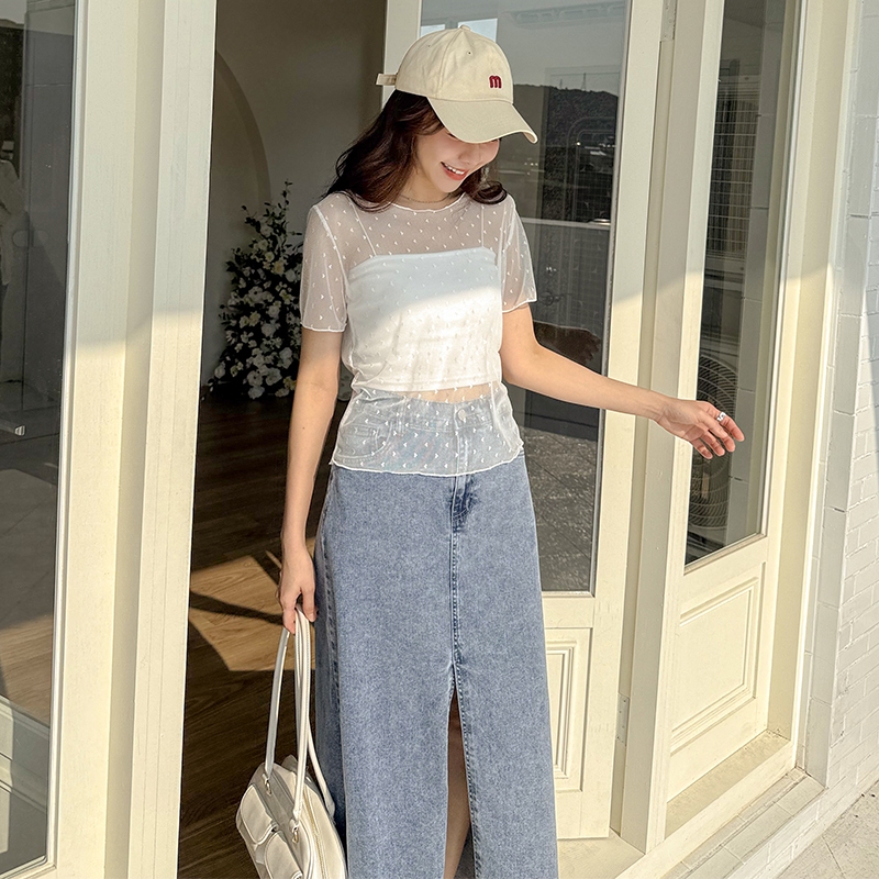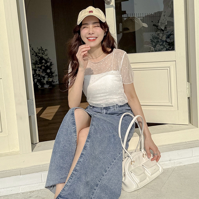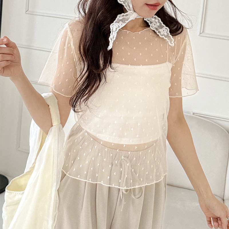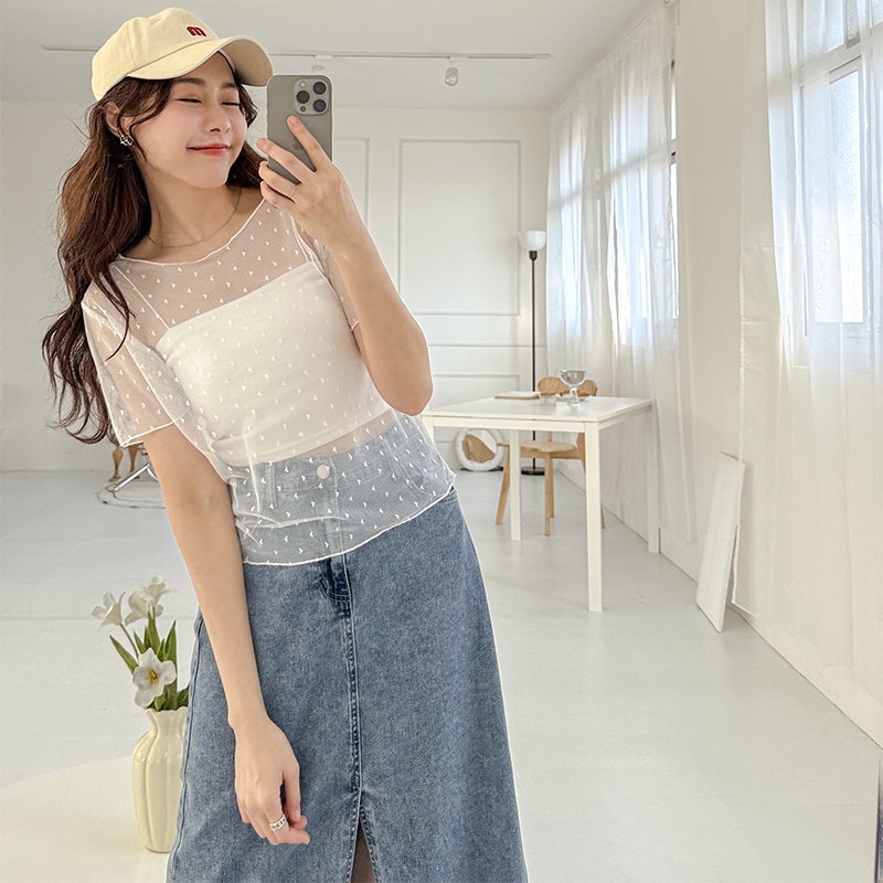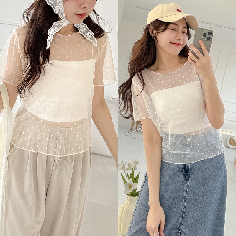 【HARPER】愛心網紗透膚上衣 | 現貨 短袖 透膚 上衣 內搭【CLE32722J】白,F|杏,FT-shirtsHARPER