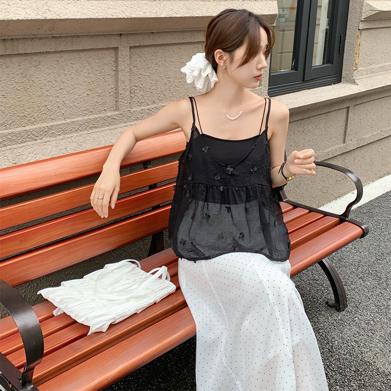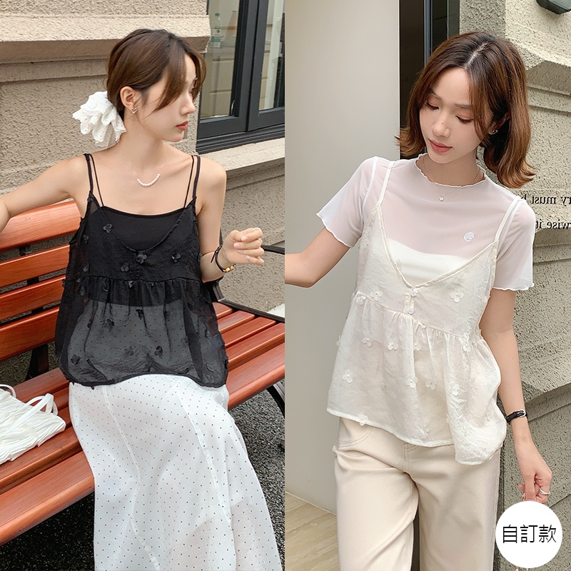 【HARPER】品牌自訂秘密花園微透膚背心 | 現貨 無袖上衣 背心 透膚 外罩【CLB49324J】杏,L~XL|黑,S~M|黑,L~XL|杏,S~MTanks & CamisolesHARPER