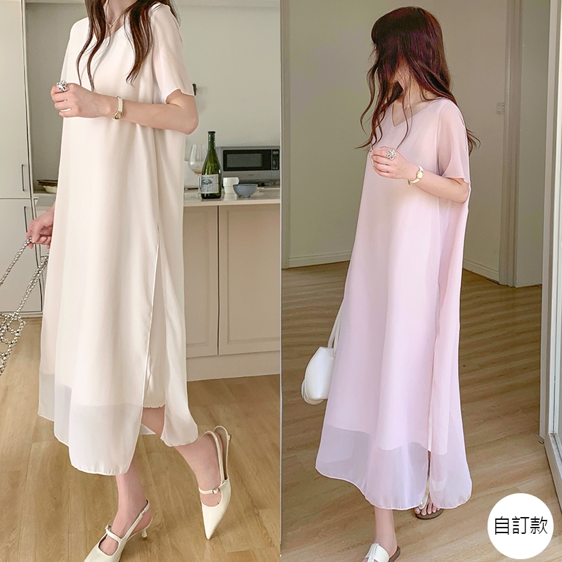 【HARPER】品牌自訂霧紗感層次長洋裝 | 現貨 短袖洋裝 連身裙 紗裙【DSB48319J】奶杏,S~M|奶杏,L~XL|粉,S~M|粉,L~XLHARPER