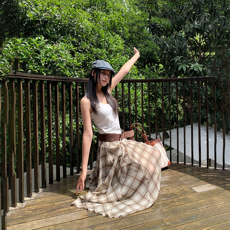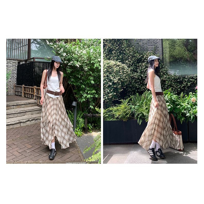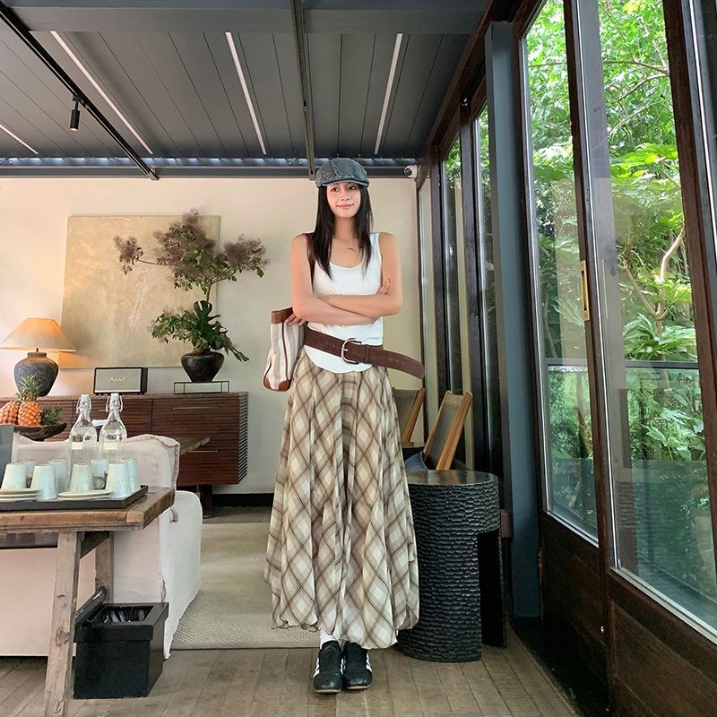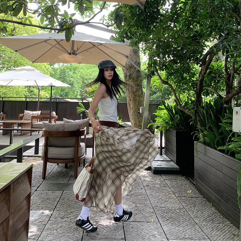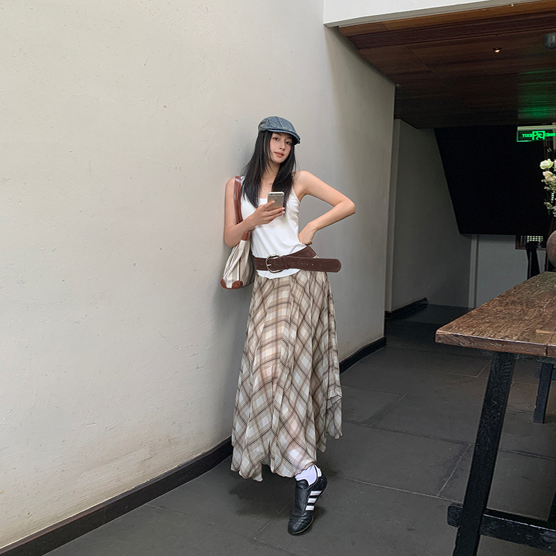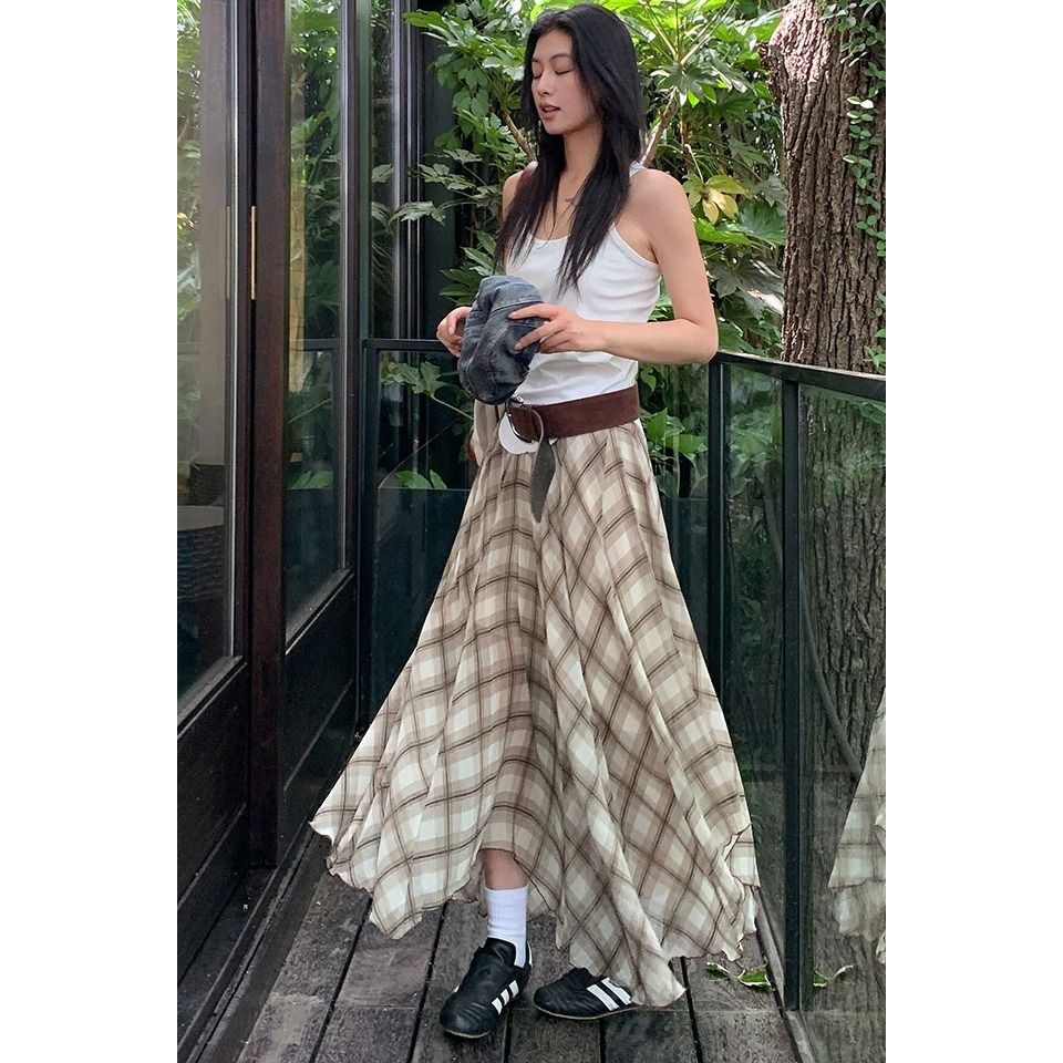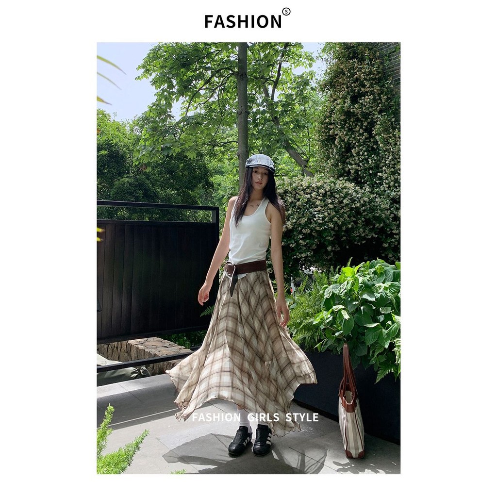【HOT 本舖】 三亞篇時髦精美式復古高腰不規則垂感透氣清涼百搭氣質長裙棕色,XS|棕色,S|棕色,M|棕色,L|棕色,XLHOT本舖|女裝館