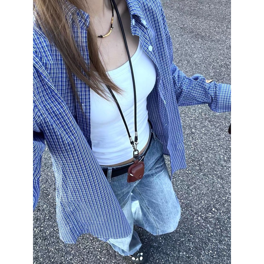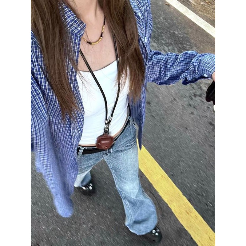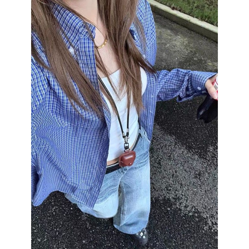 【HOT 本舖】 韓系藍色格子襯衫外套女早秋穿搭新款學院風寬鬆疊穿打底外套藍色,S|藍色,M|藍色,L|藍色,XL|藍色,2XLShirts & BlousesHOT本舖|女裝館