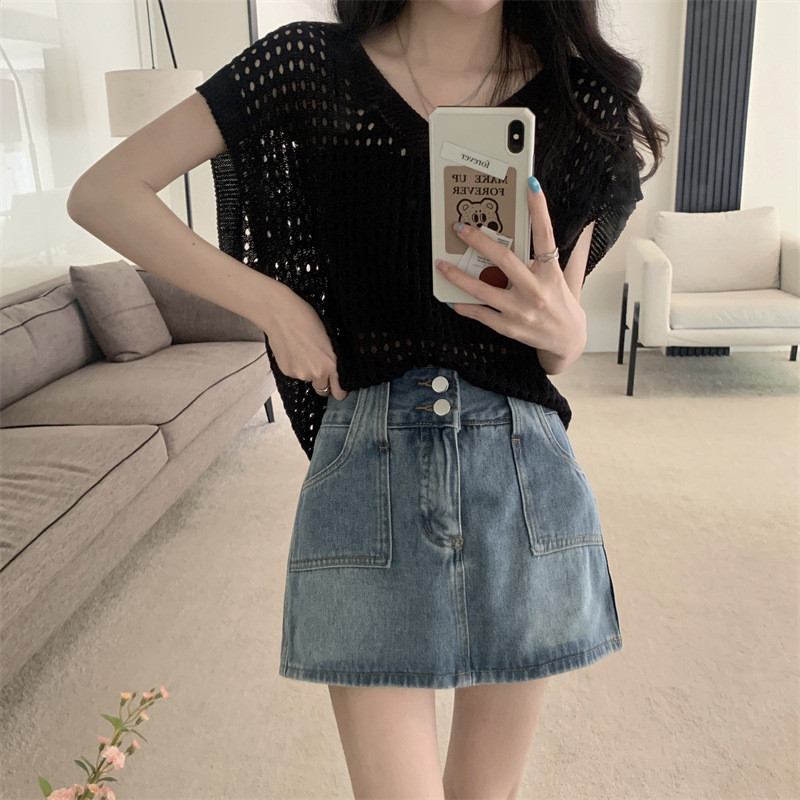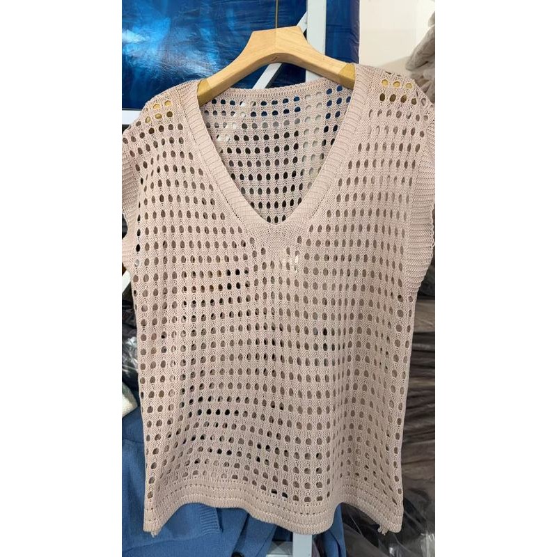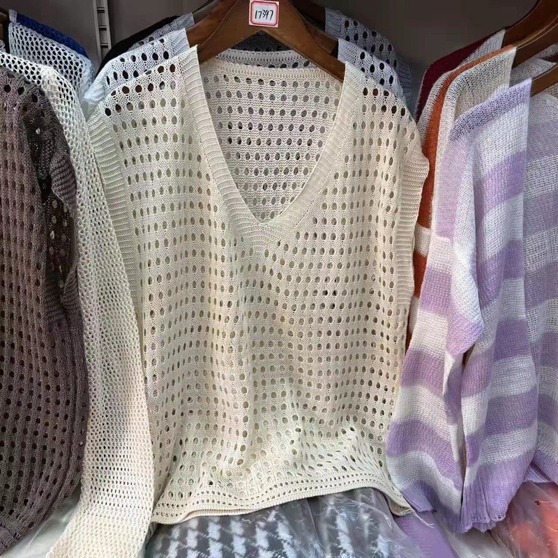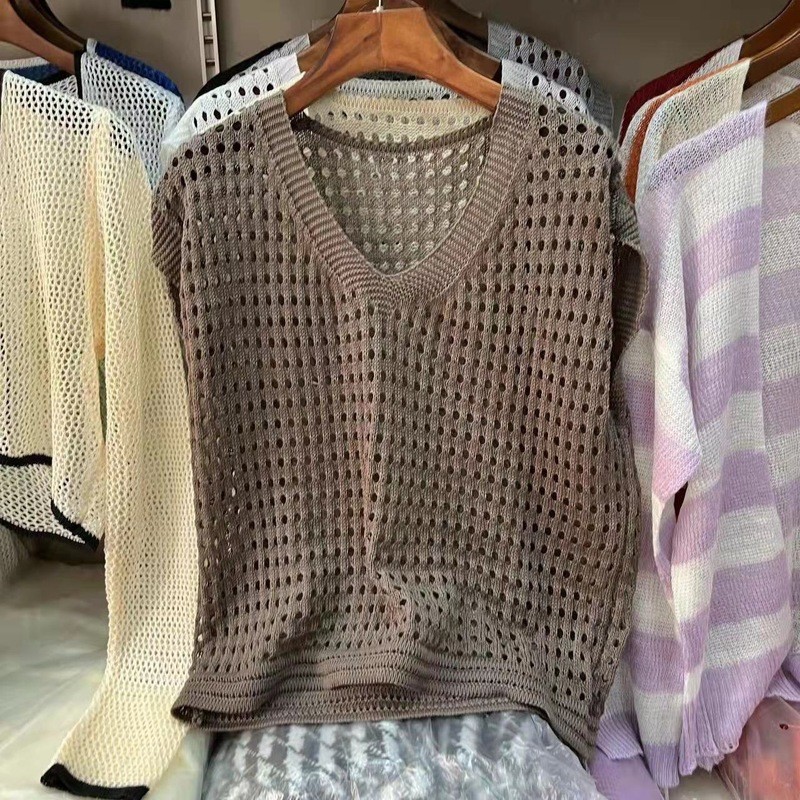 【HOT 本舖】年慵懶風新款防曬罩衫鏤空v領針織衫短袖背心露鎖骨破洞設計白色,均碼|杏色,均碼|灰色,均碼|黑色,均碼|咖色,均碼T-shirtsHOT本舖|女裝館