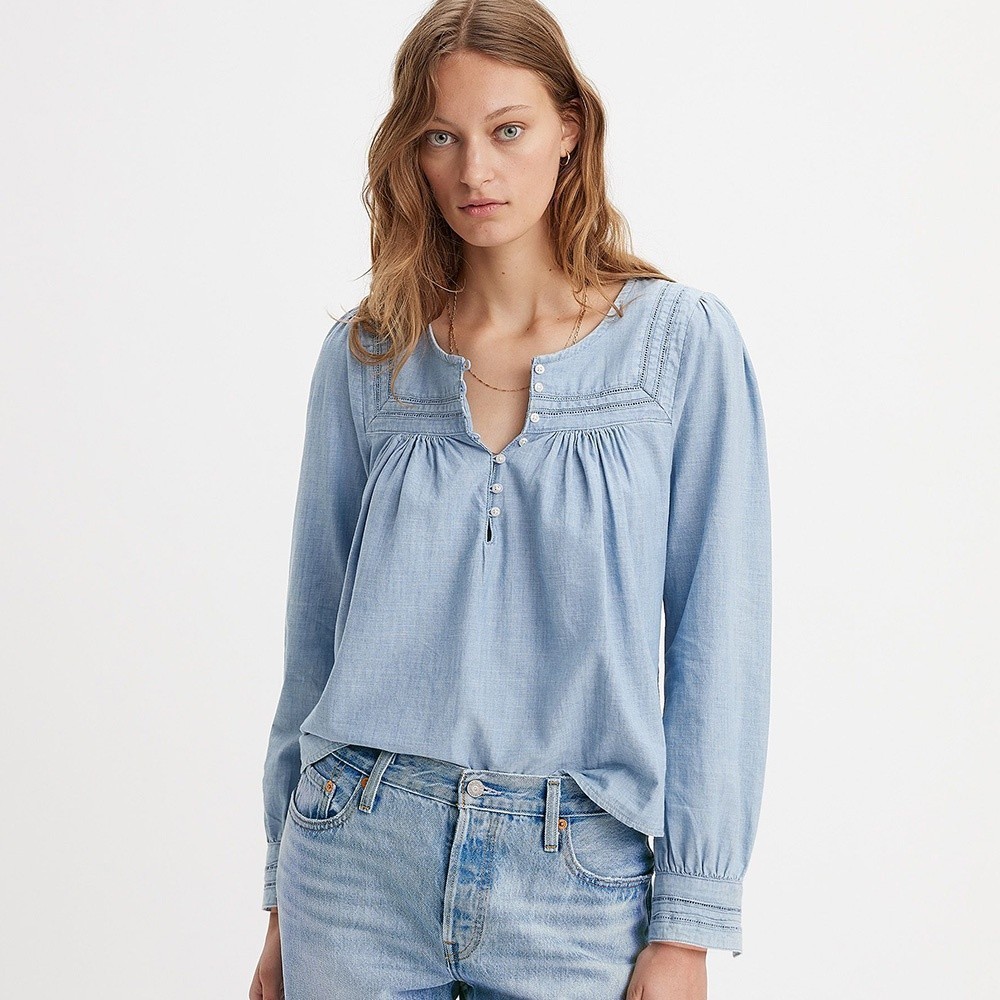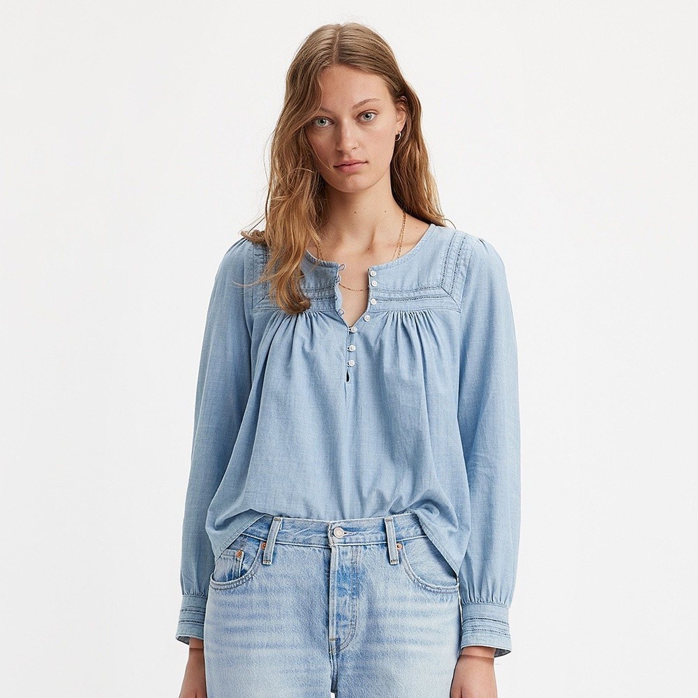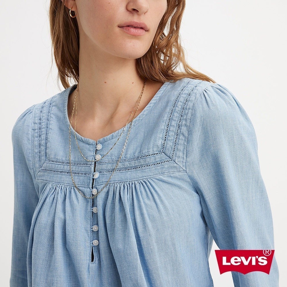 Levis 半開襟圓領襯衫 / 寬鬆抓皺設計 女款 熱賣單品 A7617-0001XS|S|MShirts & BlousesLevi’s官方旗艦店