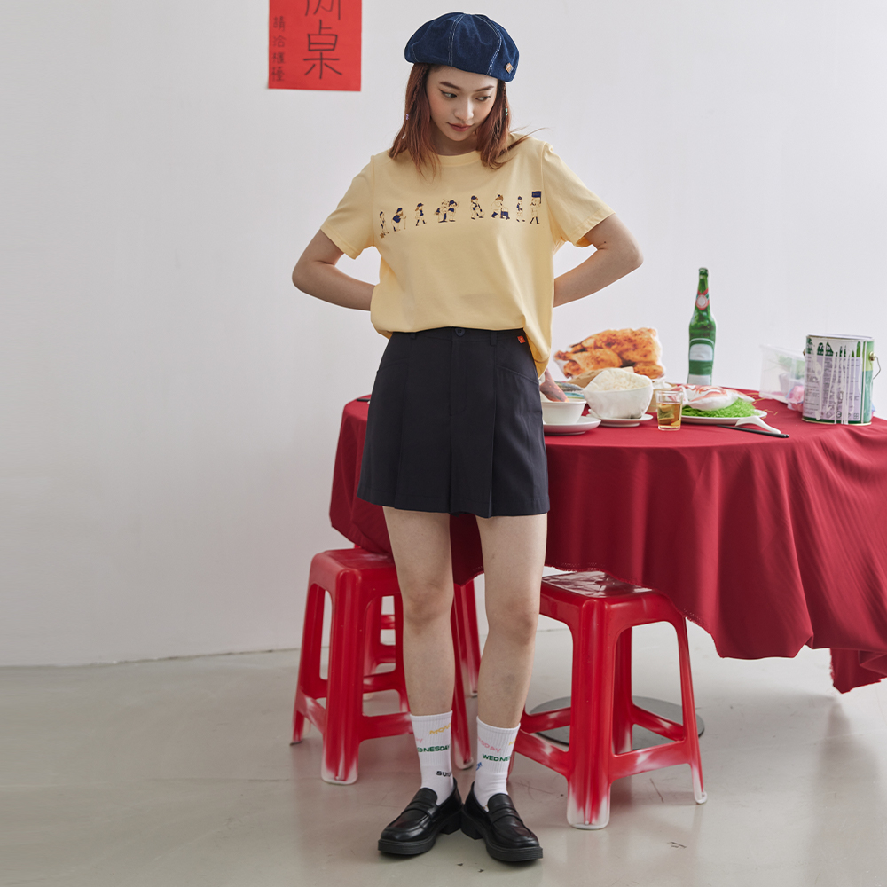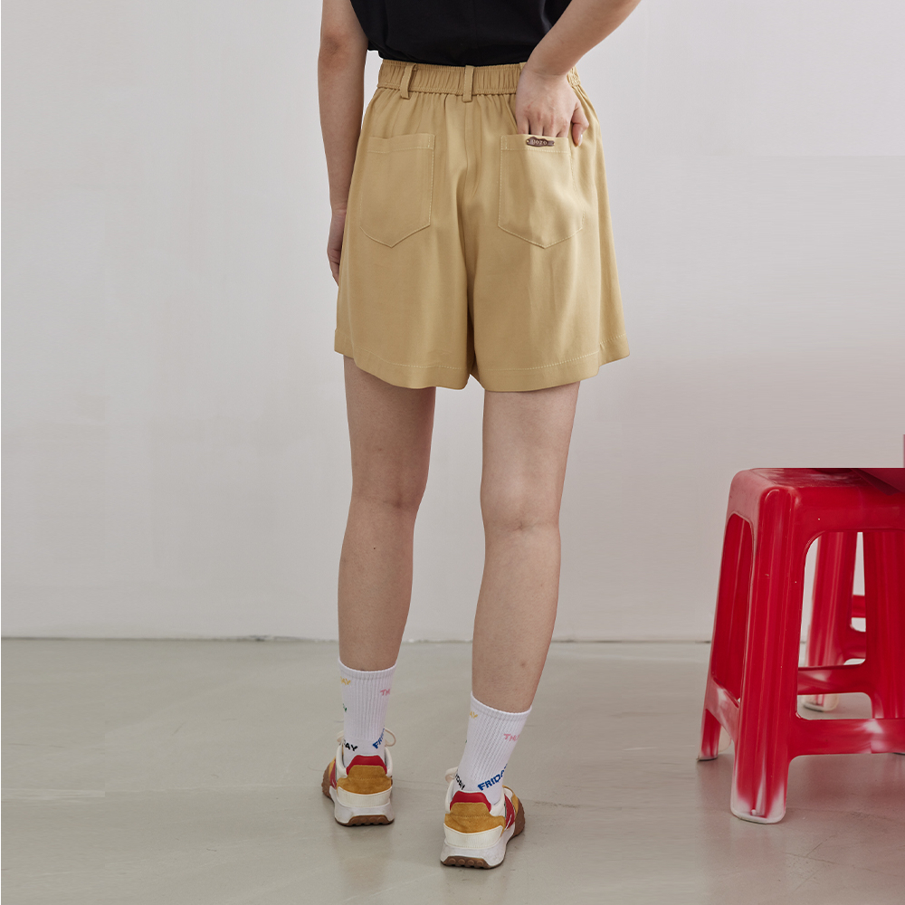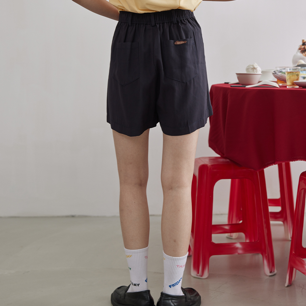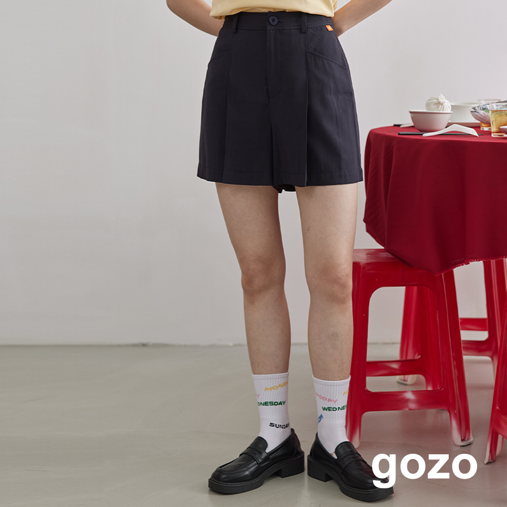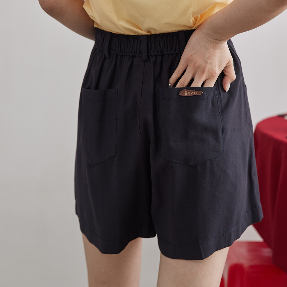 【gozo】➤斜紋打褶小直筒短褲(黃色/深藍_M/L) | 女裝 顯瘦 百搭黃色,M|黃色,L|深藍,M|深藍,LShortsgozo 品牌旗艦店