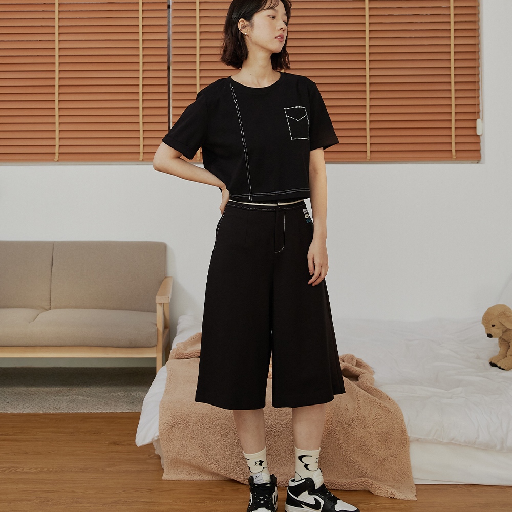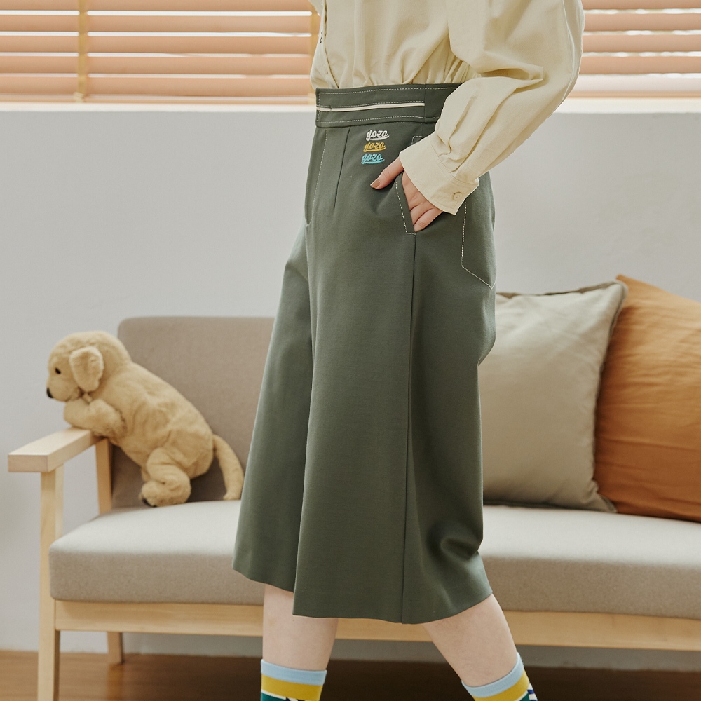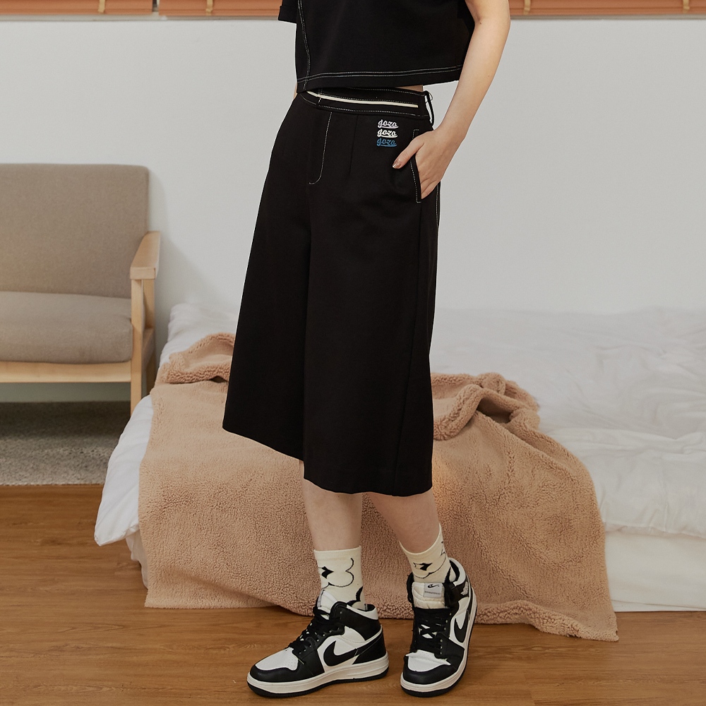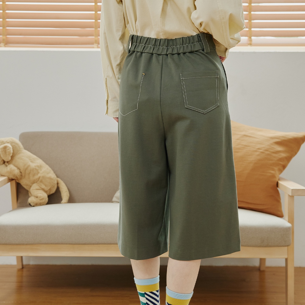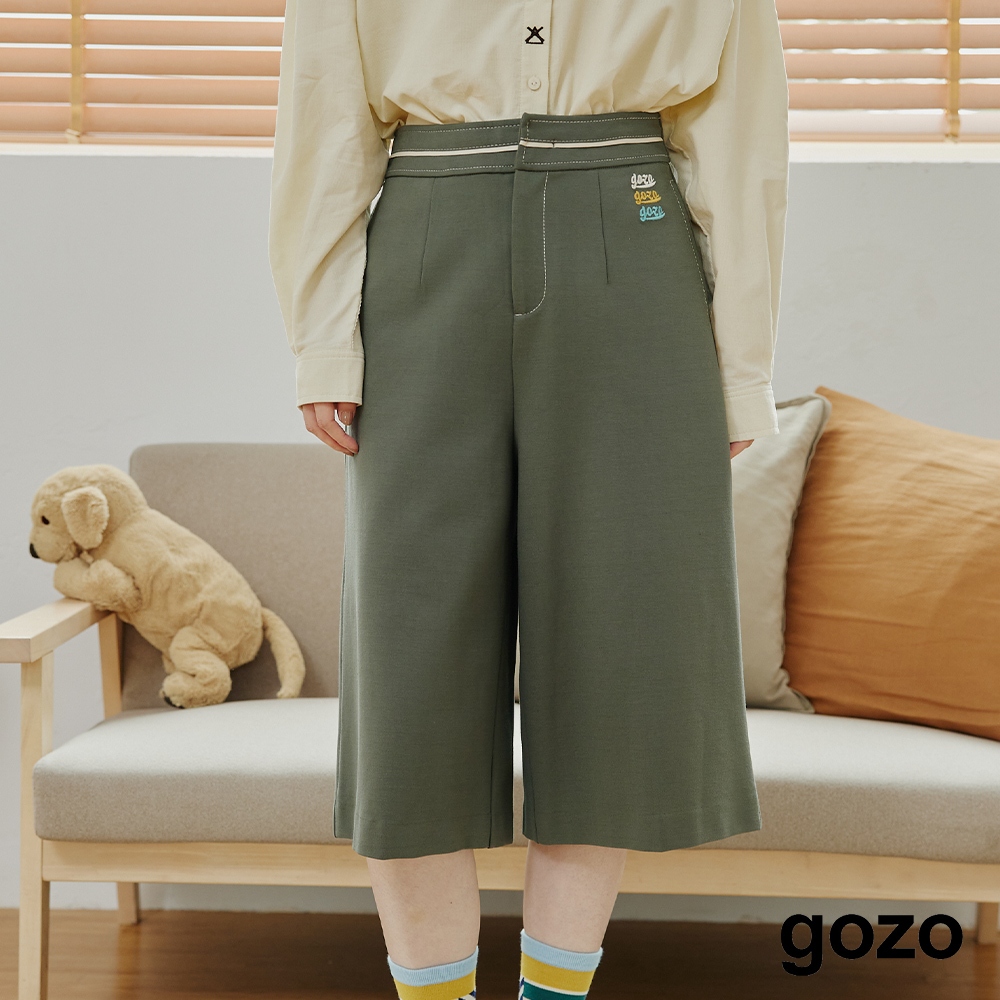 【gozo】gozo三次方配色腰頭彈性七分褲(黑色/深綠_M/L) | 女裝 修身 百搭黑色,M|黑色,L|深綠,M|深綠,LPantsgozo 品牌旗艦店