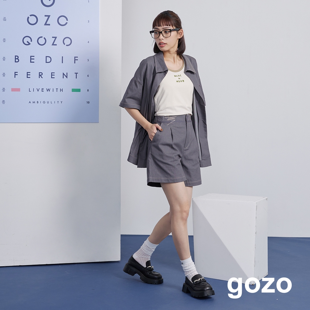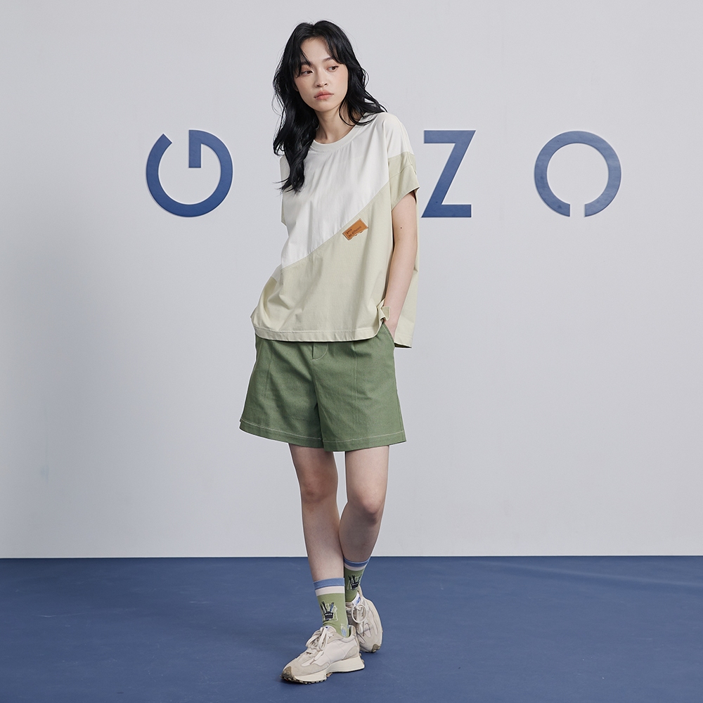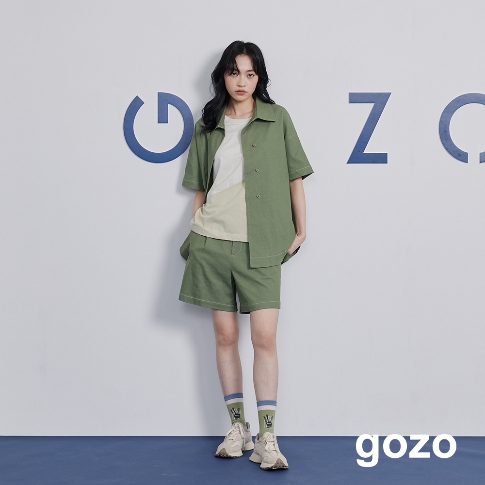 【gozo】率性車線腰頭剪接短褲(灰色/綠色_M/L) | 女裝 修身 百搭灰色,M|灰色,L|綠色,M|綠色,LShortsgozo 品牌旗艦店