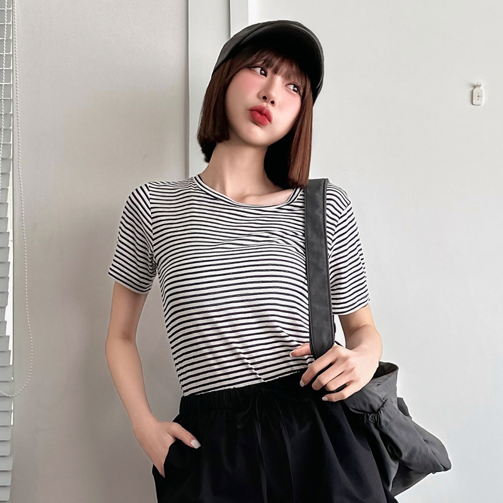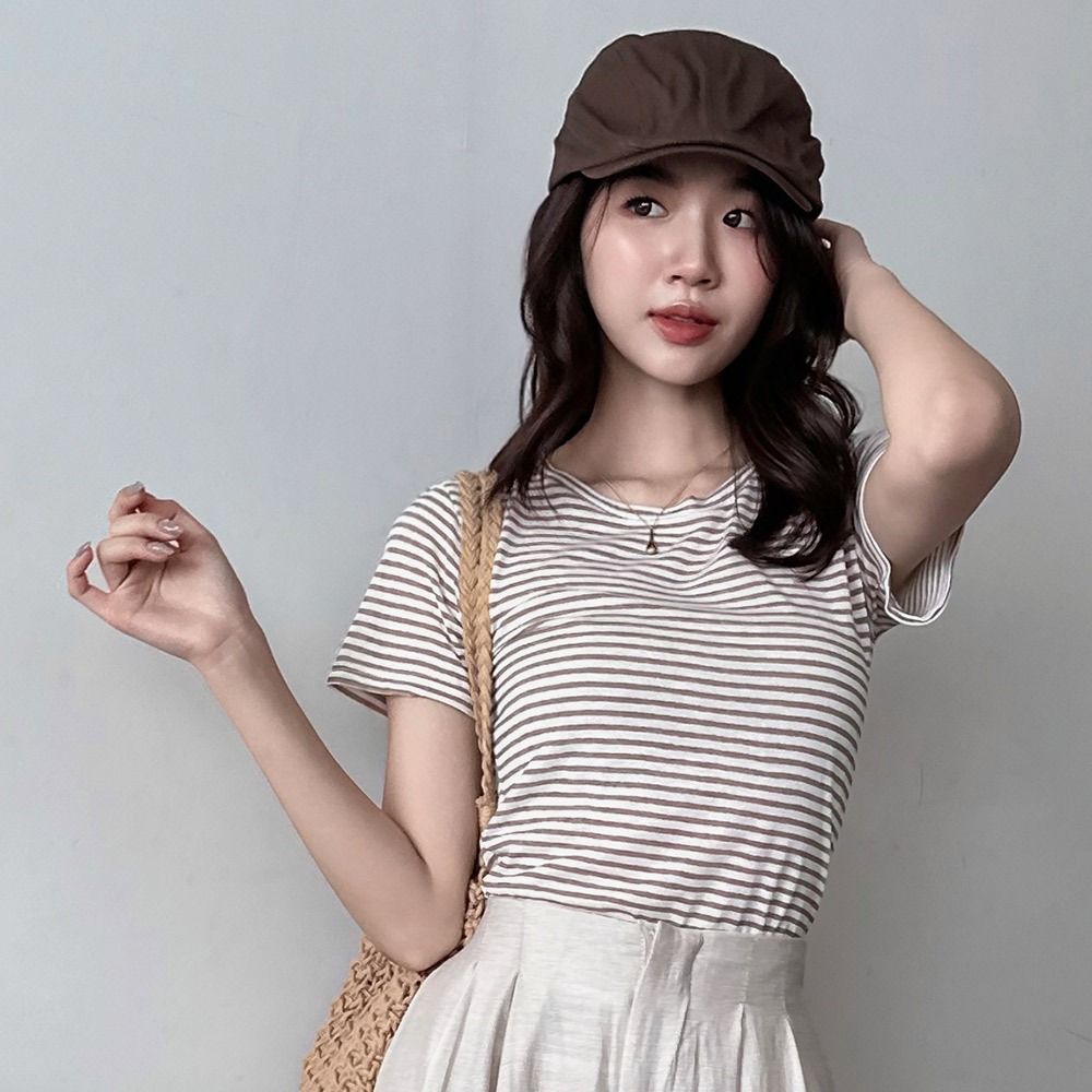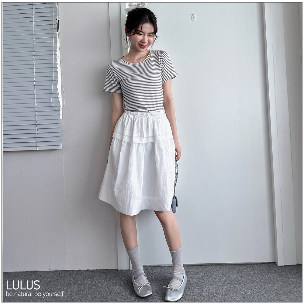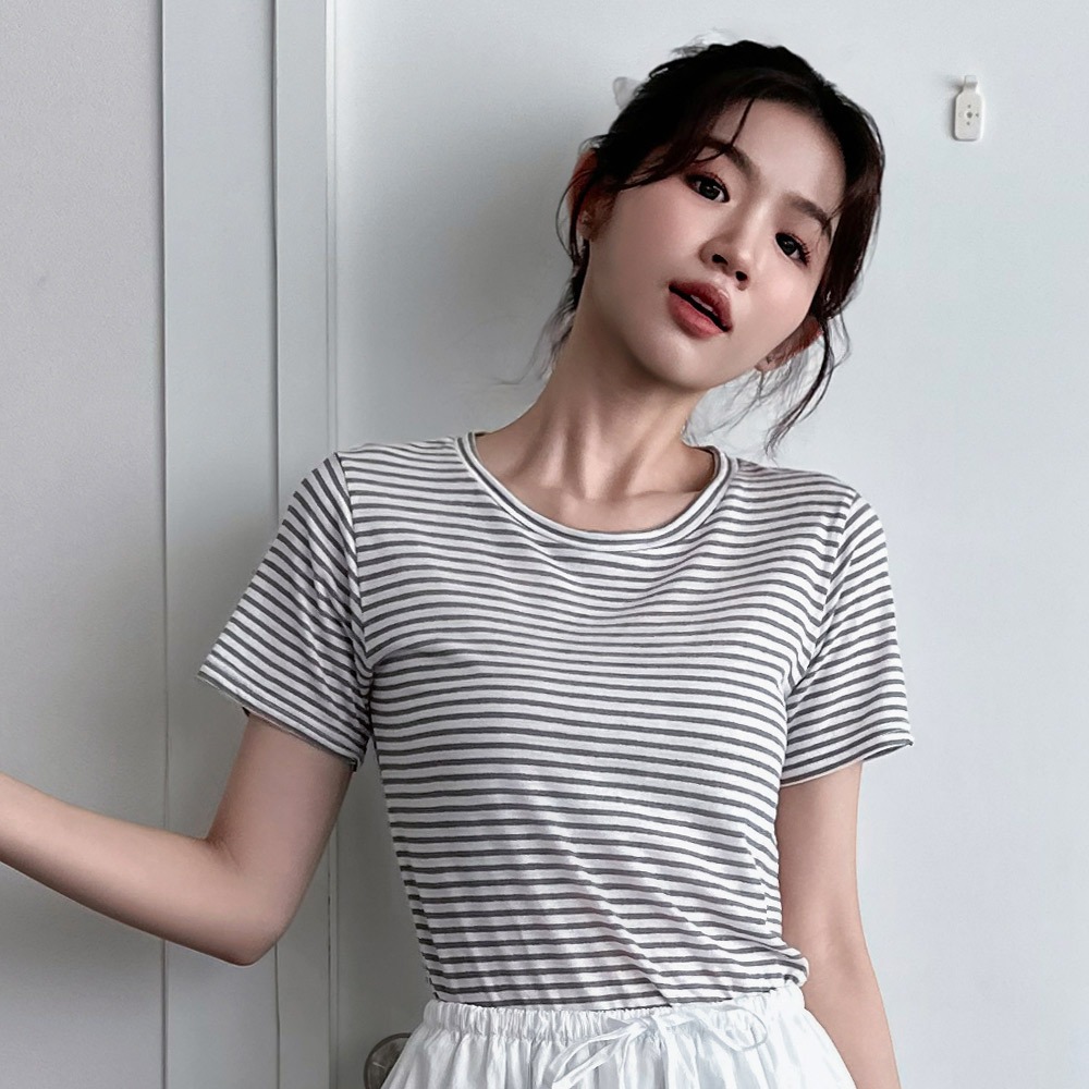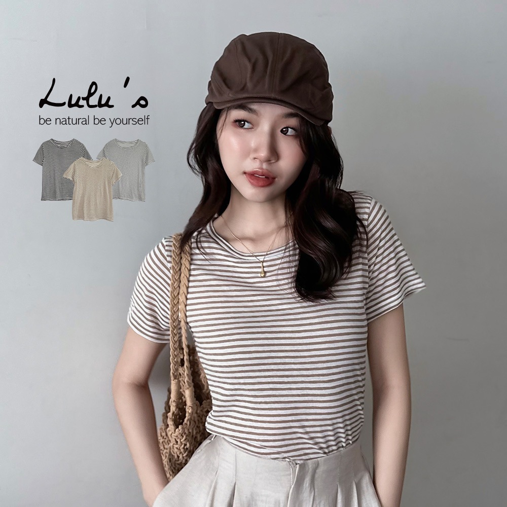 LULUS/輕薄舒適微透膚橫紋上衣3色【A01250462】250625卡其|灰|黑T-shirtsLULUS