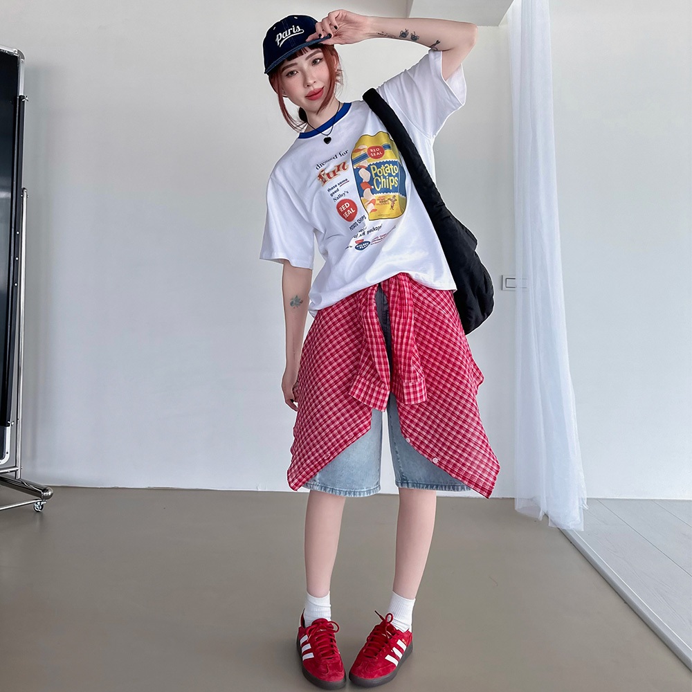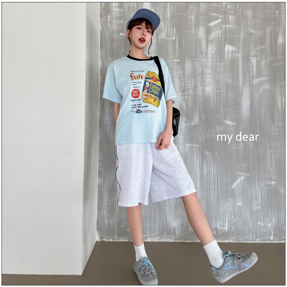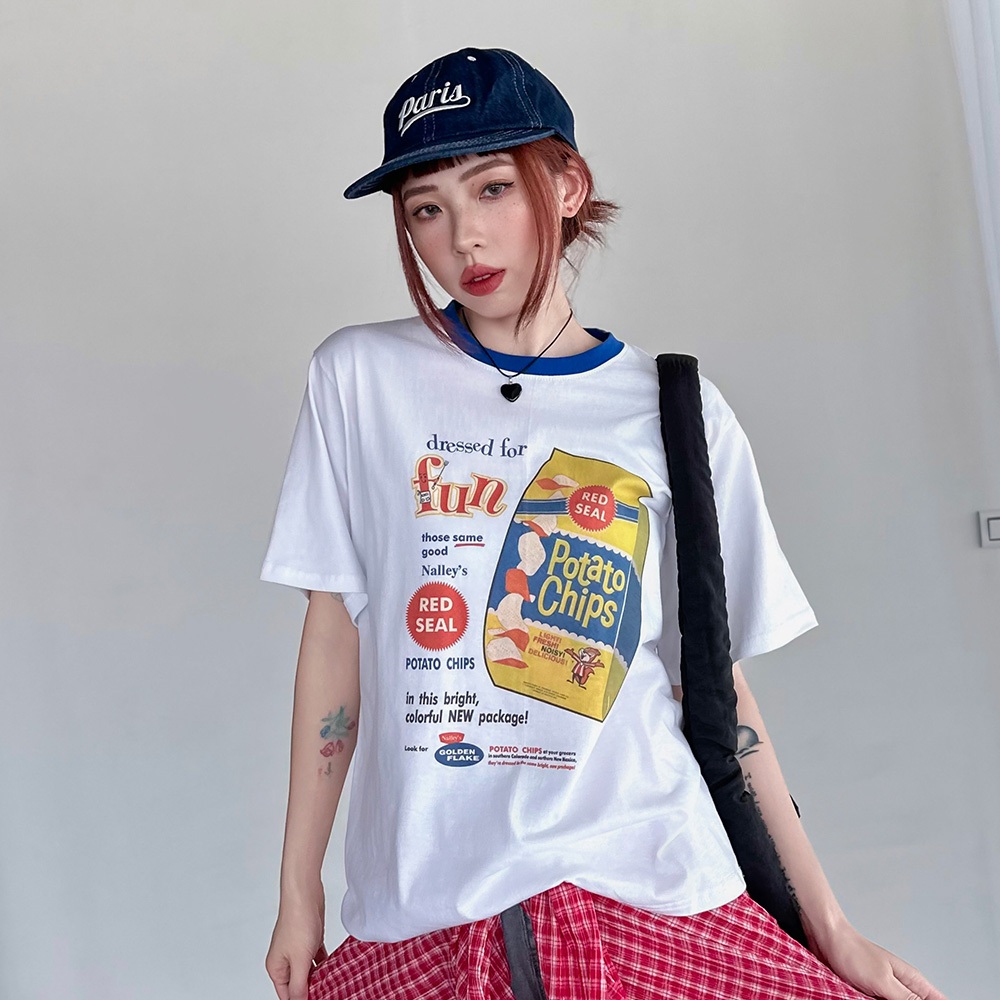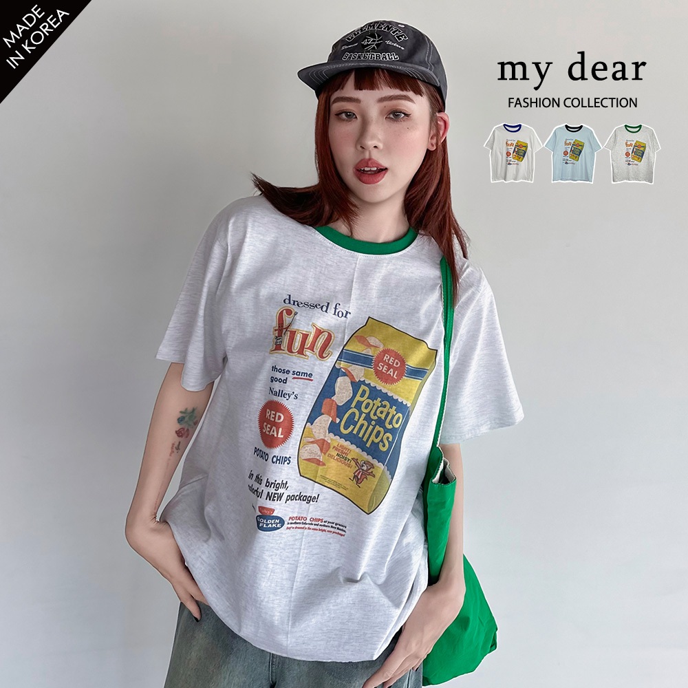 LULUS韓製/漫畫美式洋芋片寬鬆T恤3色【A01250568】正韓250724水藍|白|白灰T-shirtsLULUS