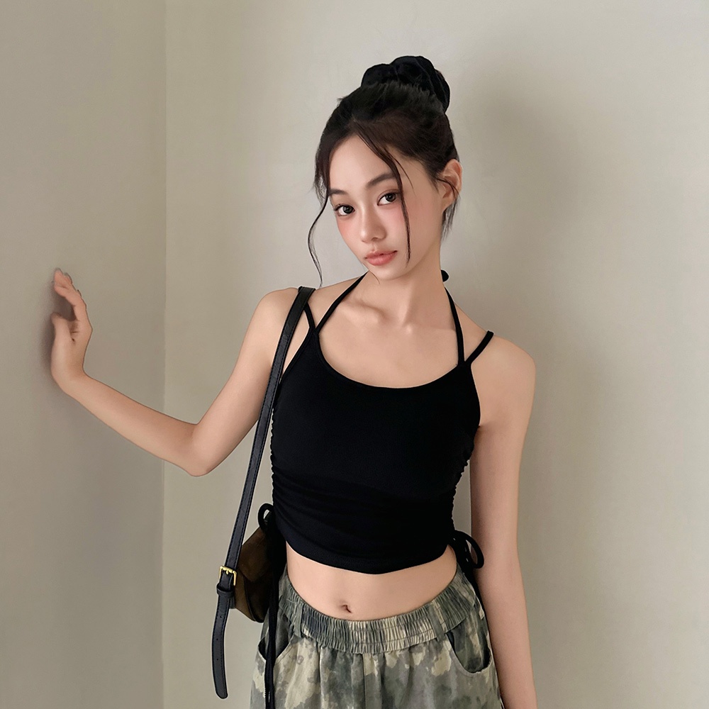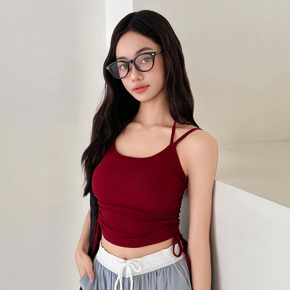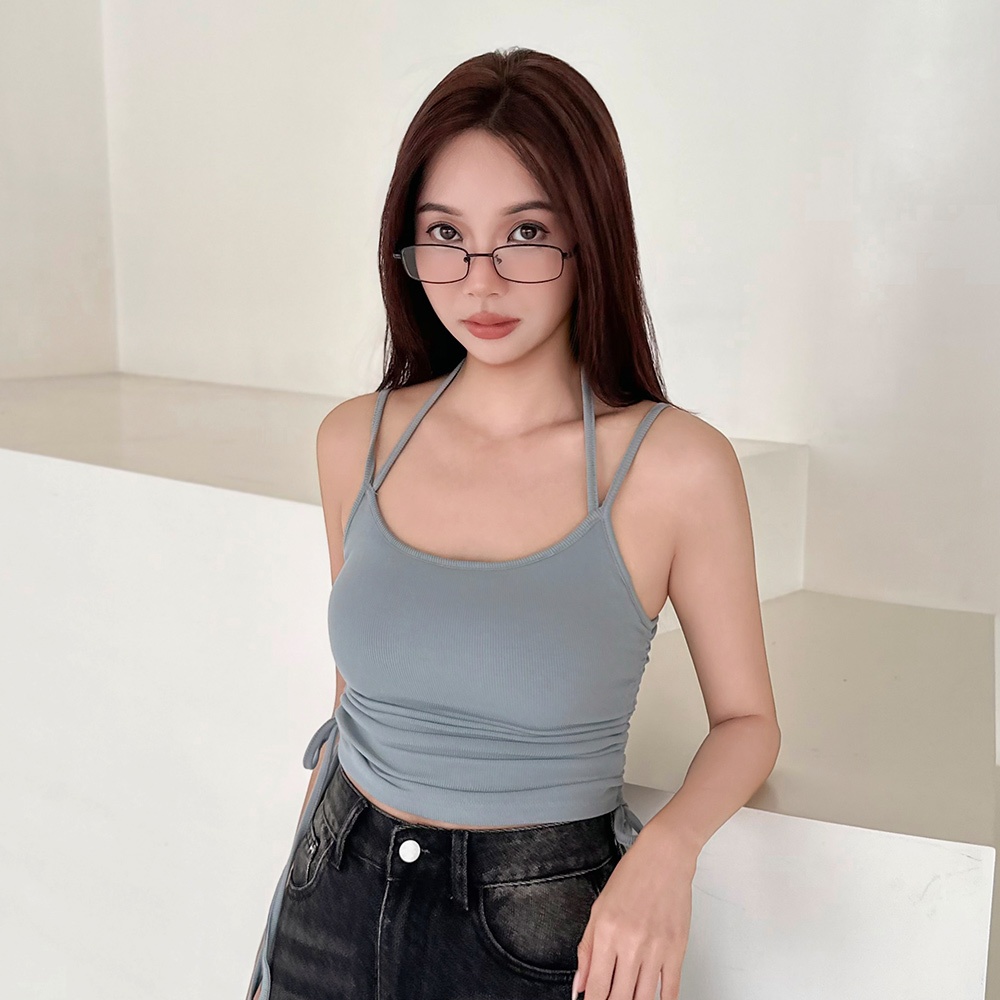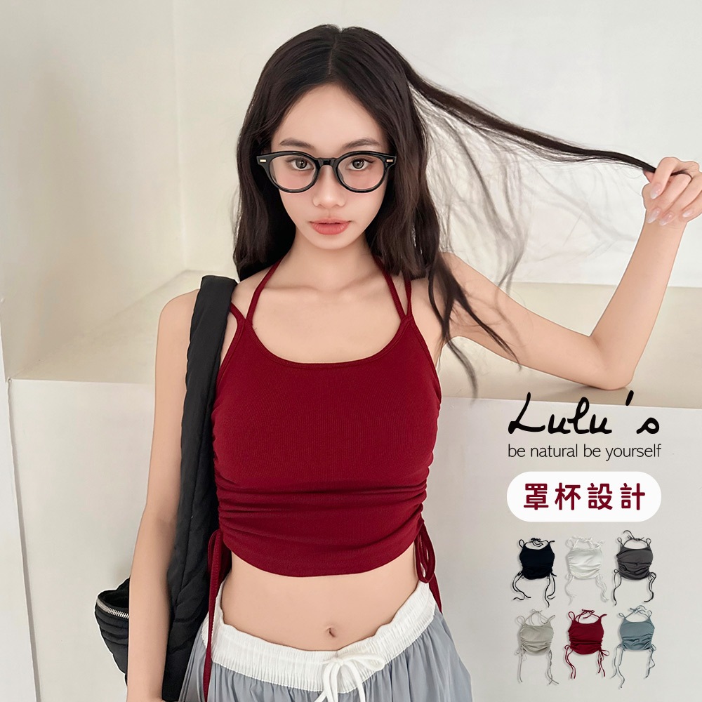 LULUS/側抽繩綁帶繞脖罩杯BRATOP背心6色【A01250609】細肩 250806灰藍|深灰|棗紅|黑|白|奶灰Tanks & CamisolesLULUS