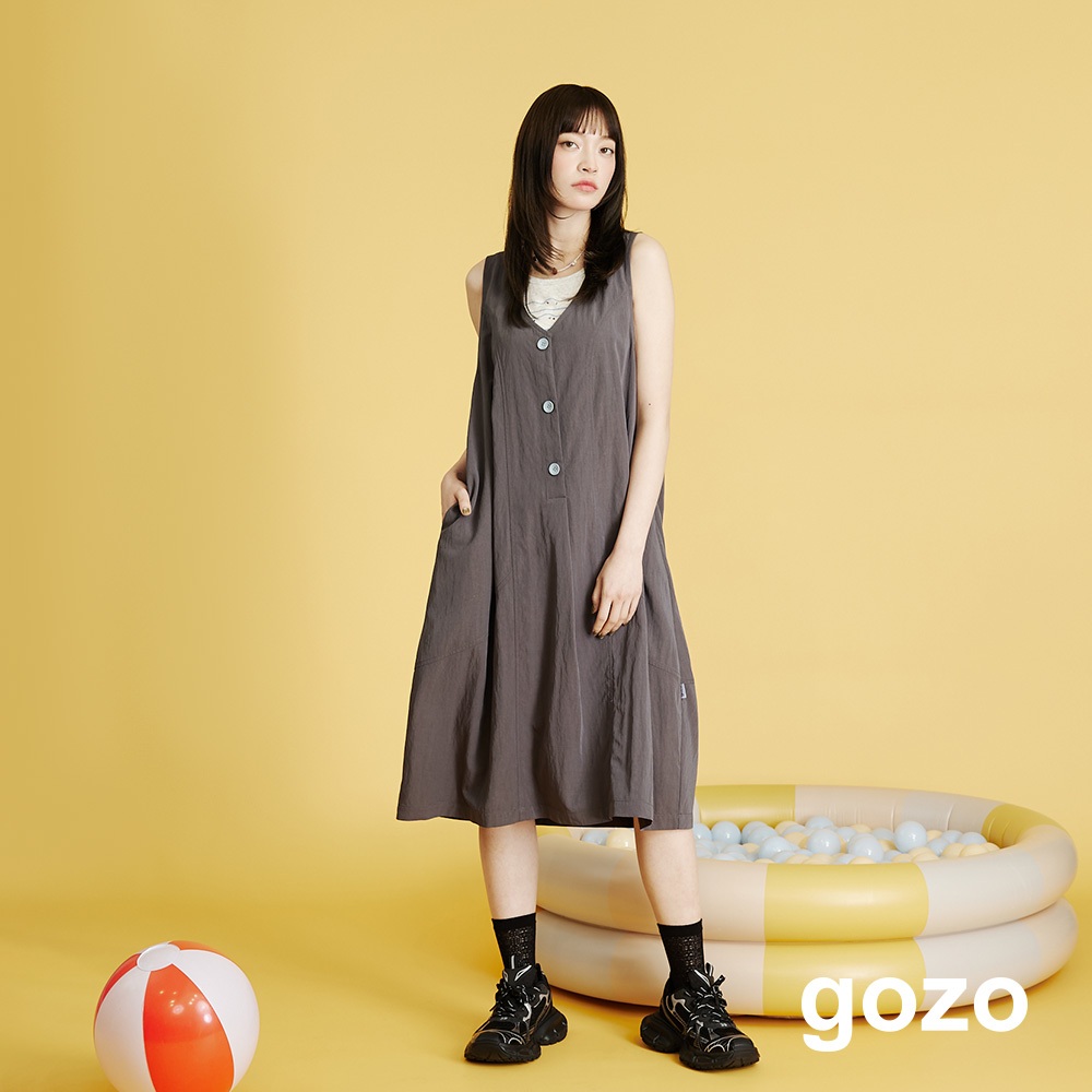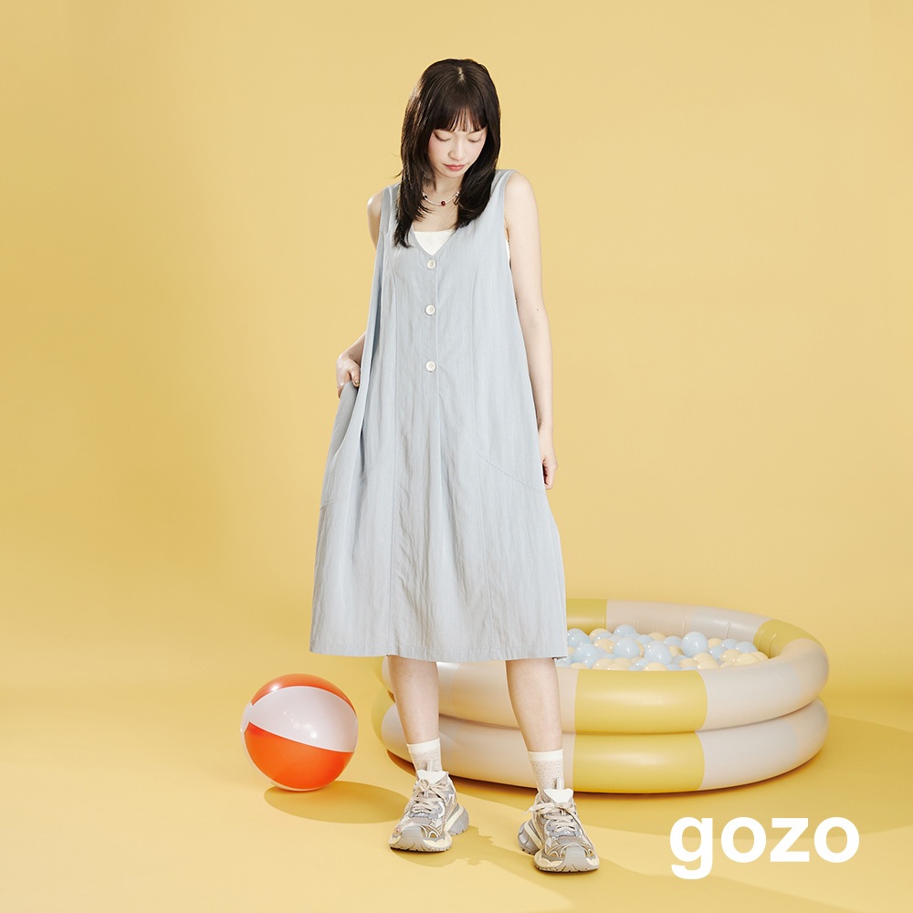 【gozo】垂墜感花苞造型背心洋裝(深灰/淺藍_F) | 女裝 顯瘦 百搭深灰,F|淺藍,Fgozo 品牌旗艦店
