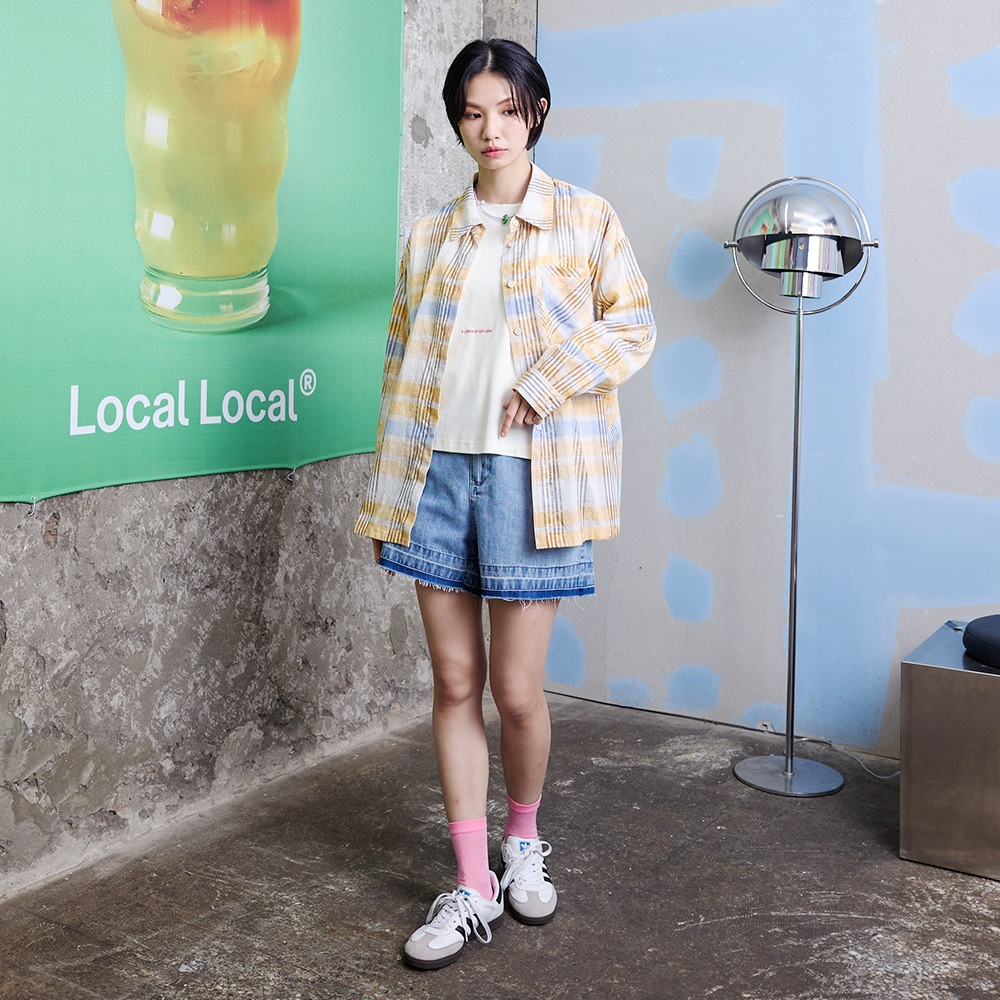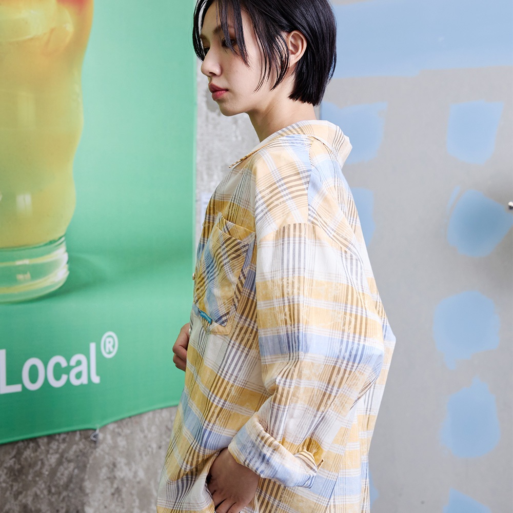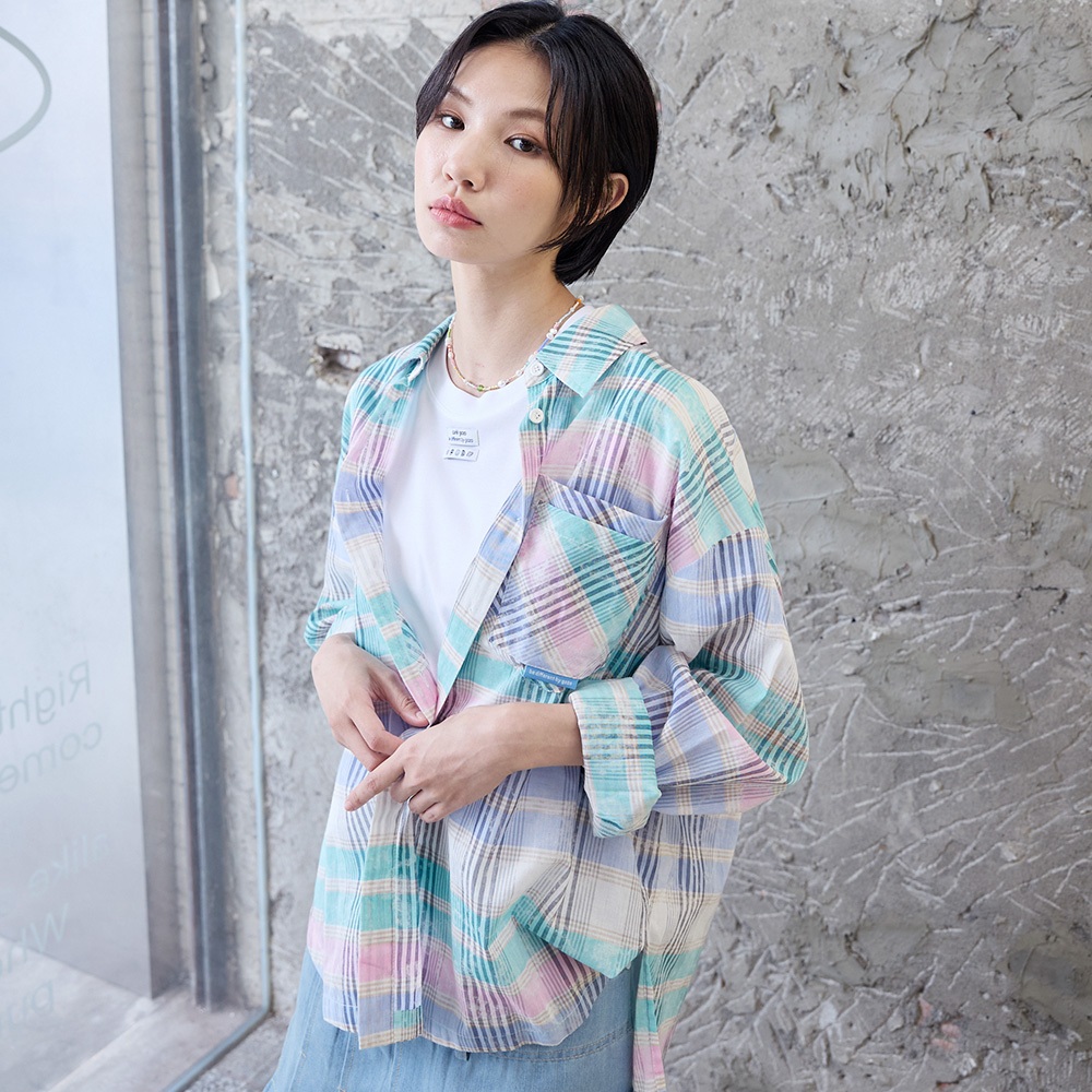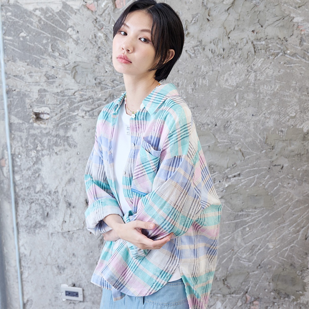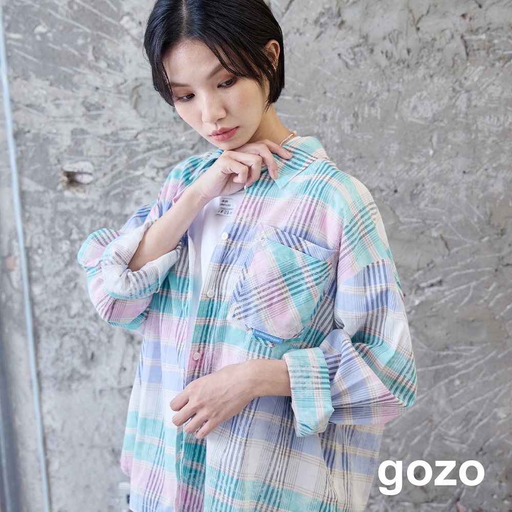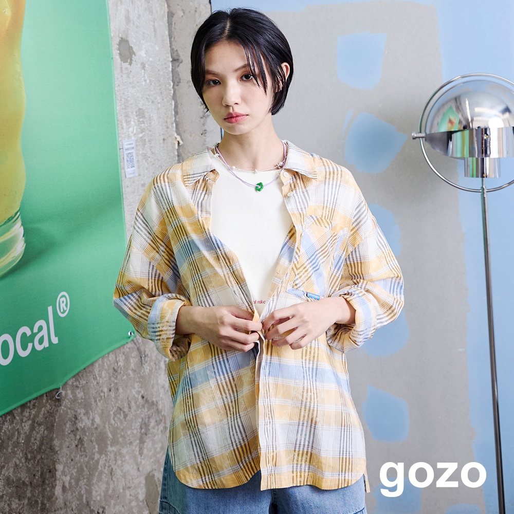 【gozo】撞色格紋純棉遮陽襯衫(淺桔/淺綠_F) | 女裝 襯衫領 百搭淺桔,F|淺綠,FShirts & Blousesgozo 品牌旗艦店