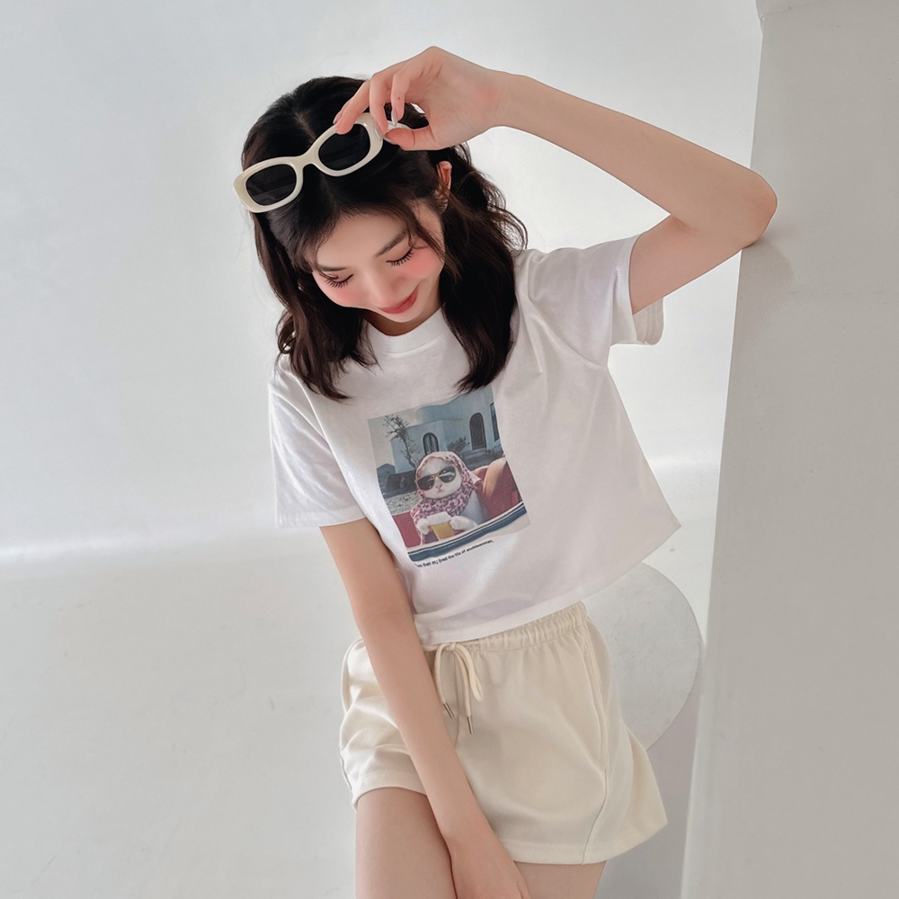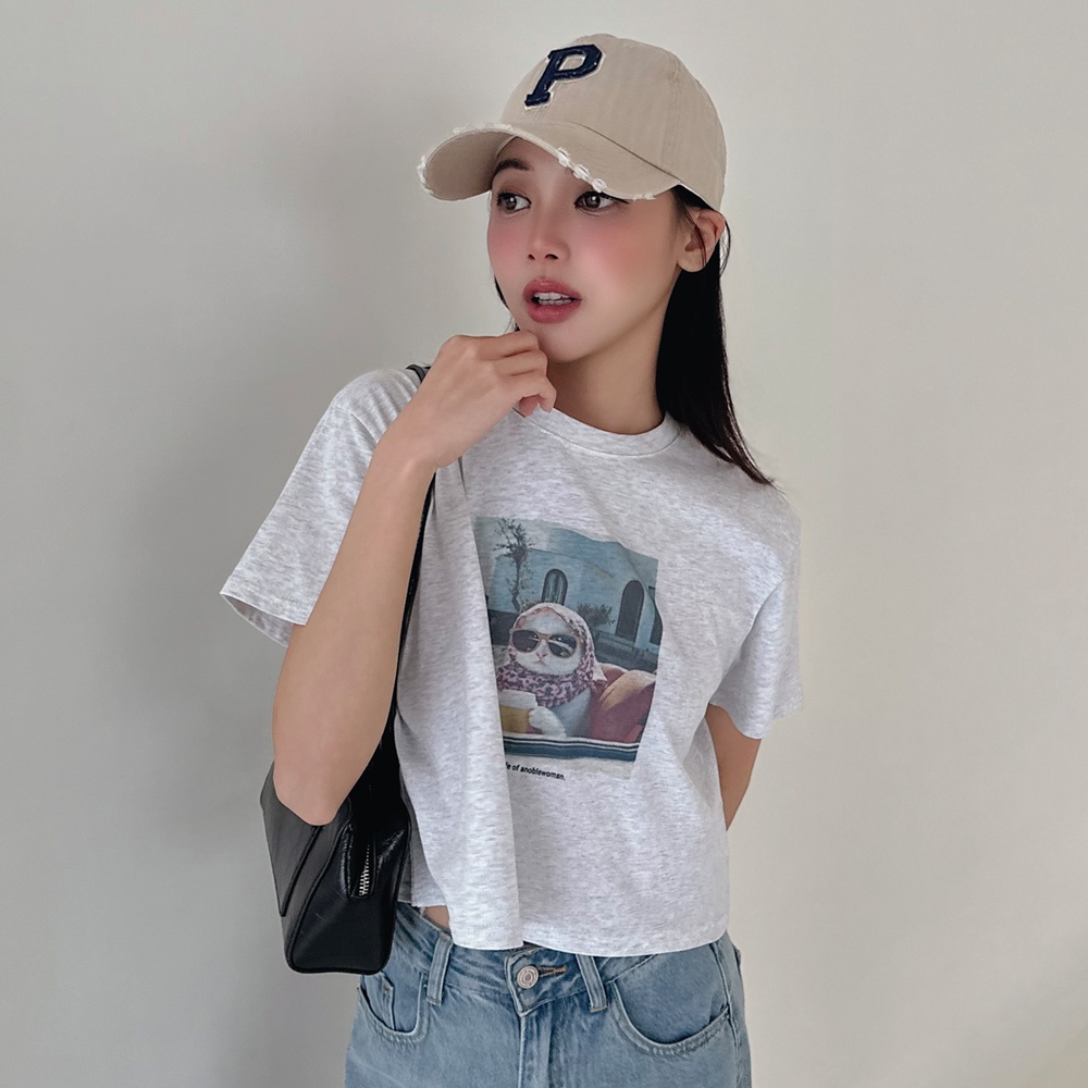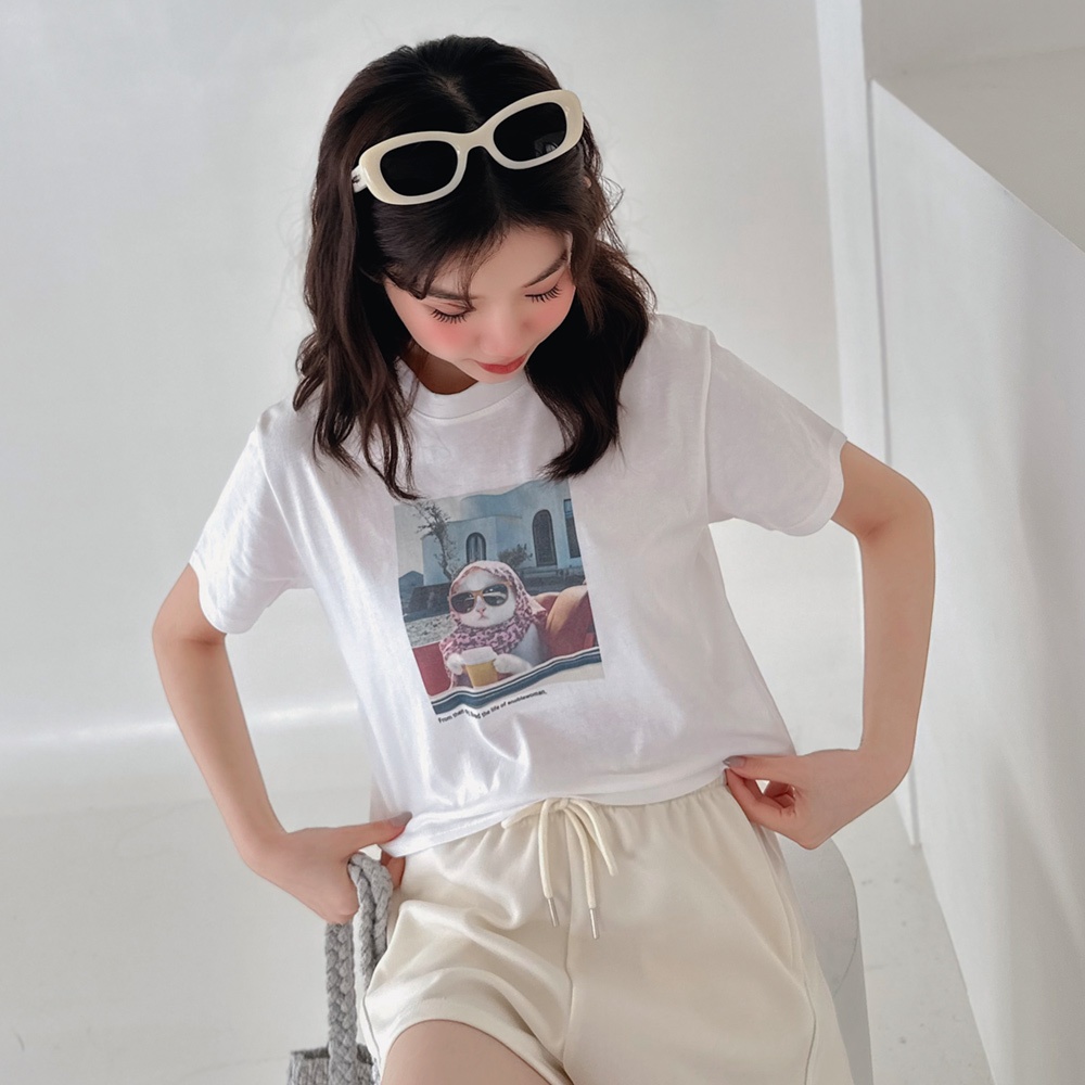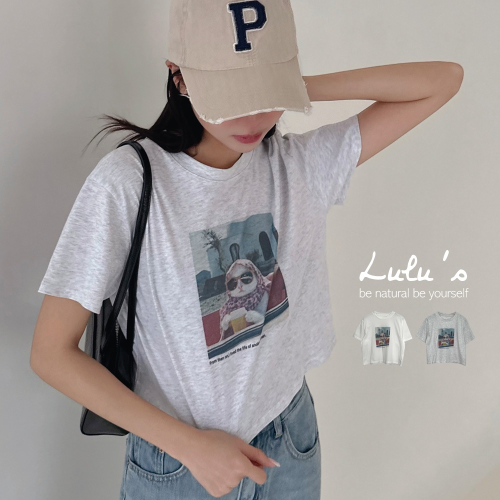 LULUS/從此過上貴婦生活的貓短版T恤2色【A01250129】貓奴 萌寵 貓咪 250319白|白灰T-shirtsLULUS