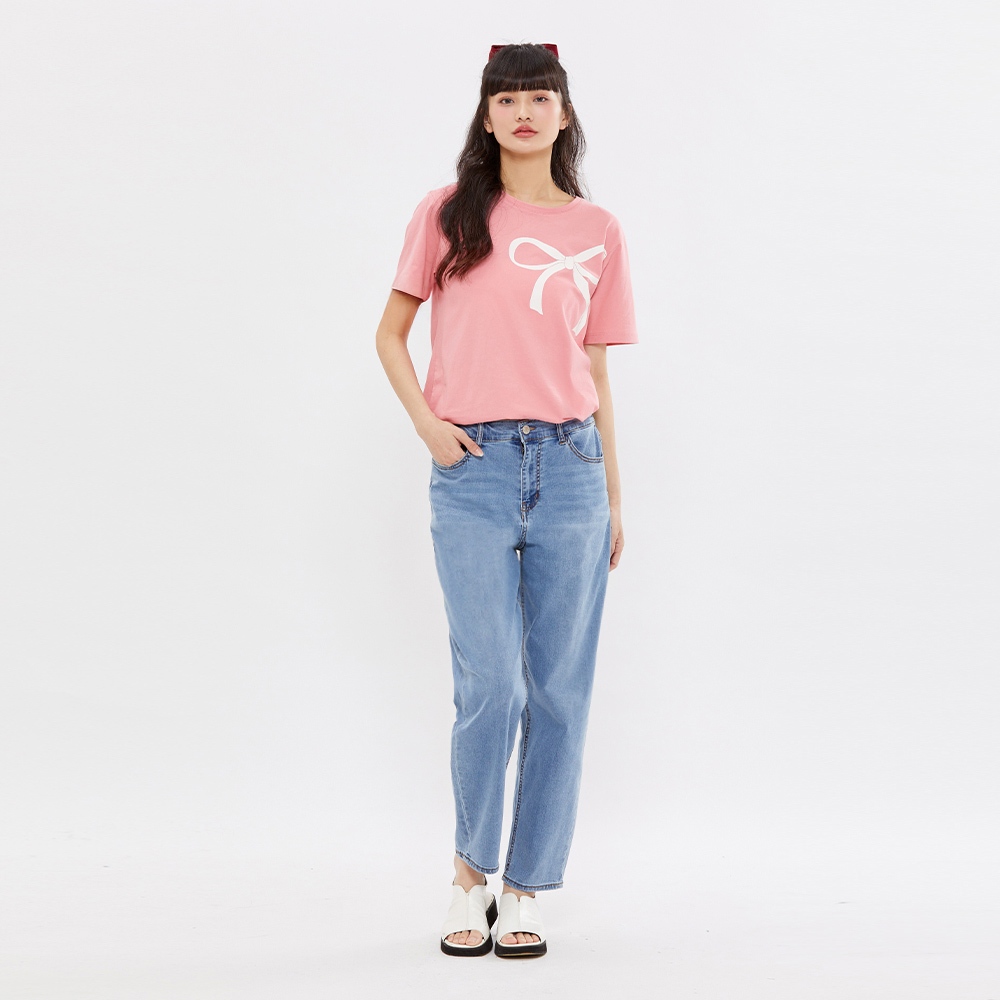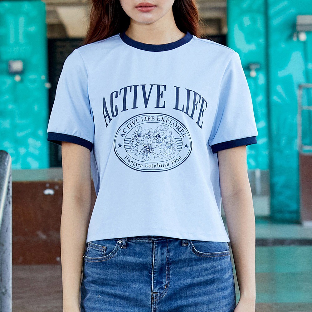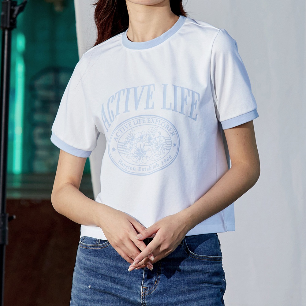 【Hang Ten】女裝-韓國同步款-撞色短版印花短袖T恤(多色選)藍,S|藍,M|粉,S|粉,M|白,S|白,MT-shirtsHANG TEN 官方旗艦館