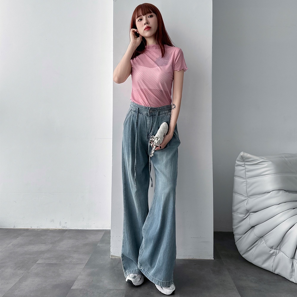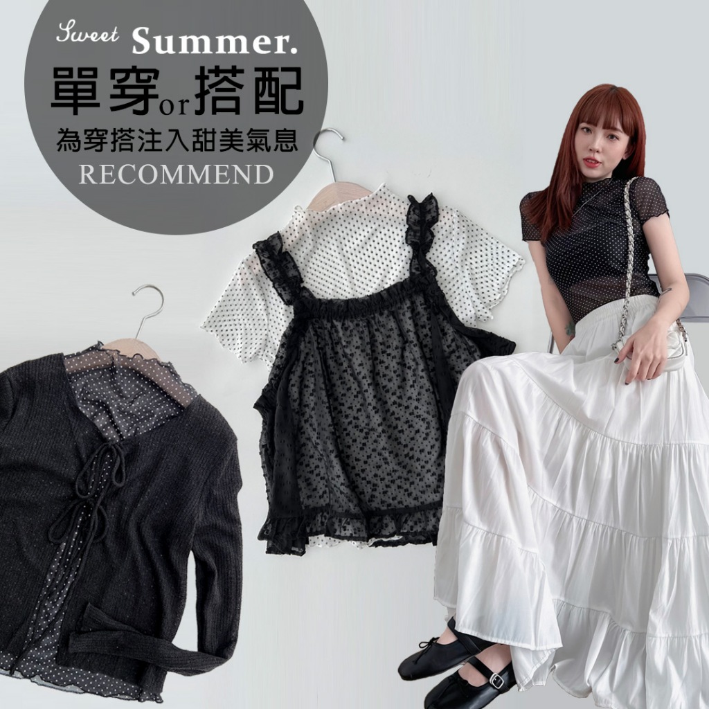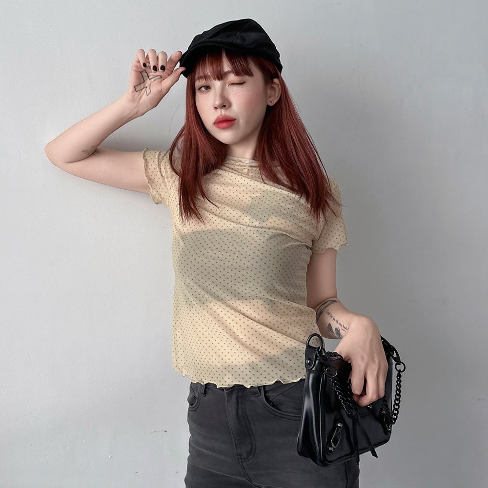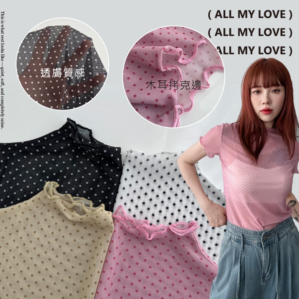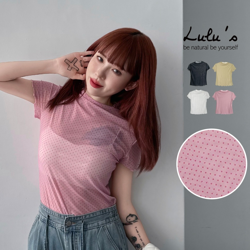 LULUS/復古點點網紗透膚上衣4色【A01250557】圓點 透視感 網感250716粉|黃|黑|白T-shirtsLULUS