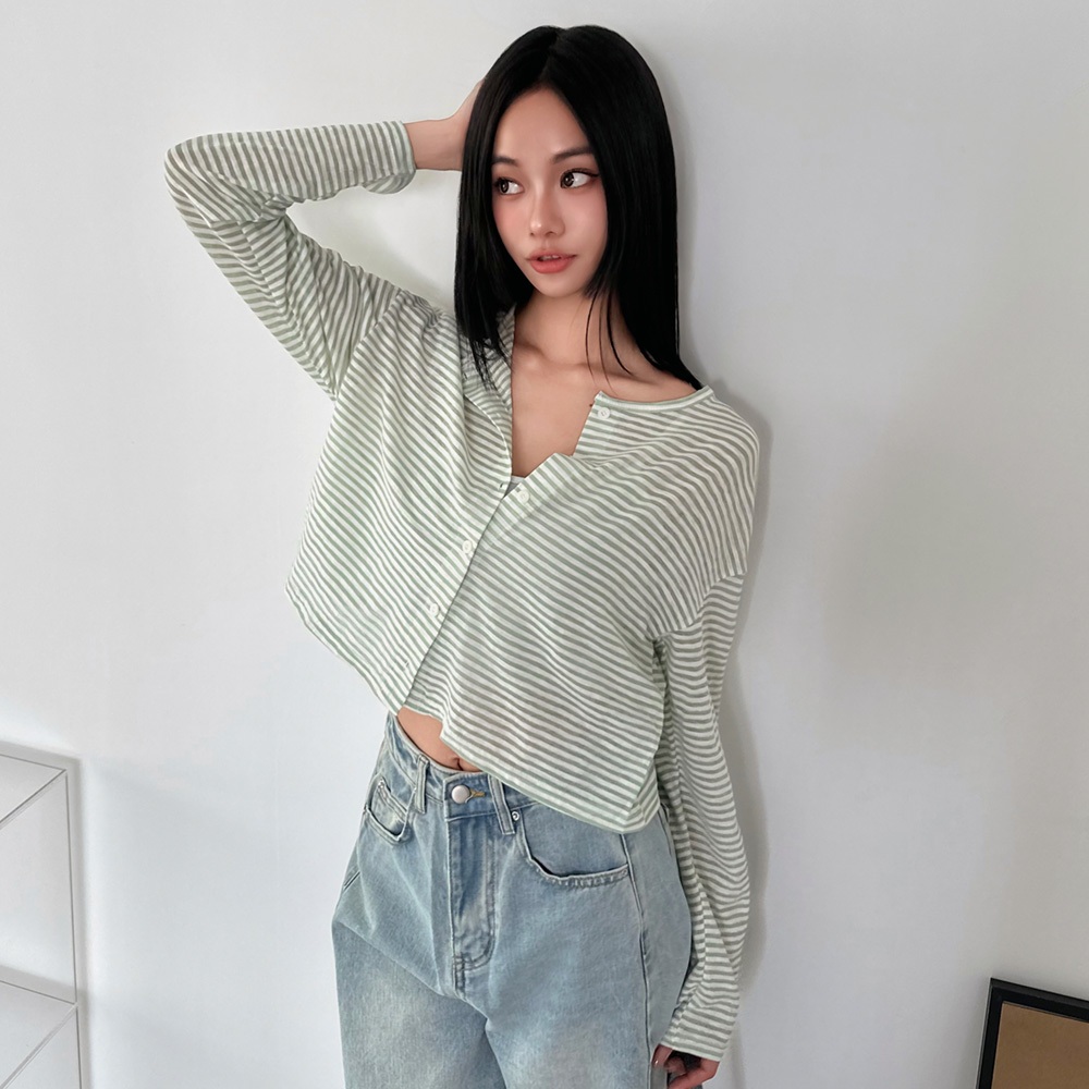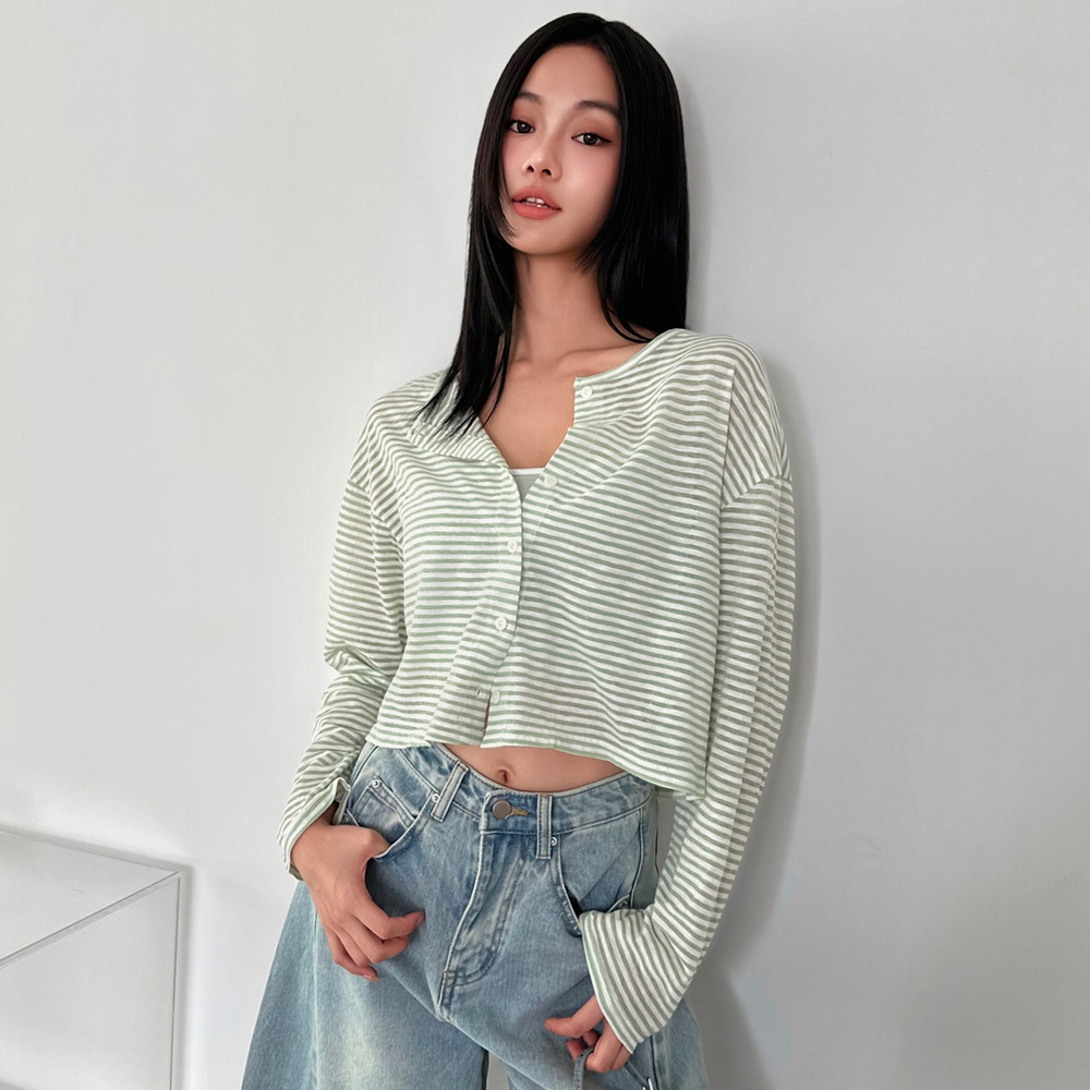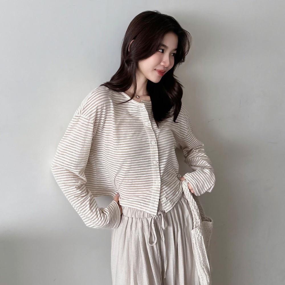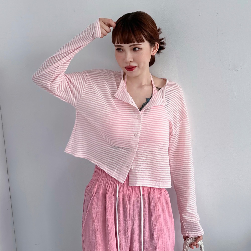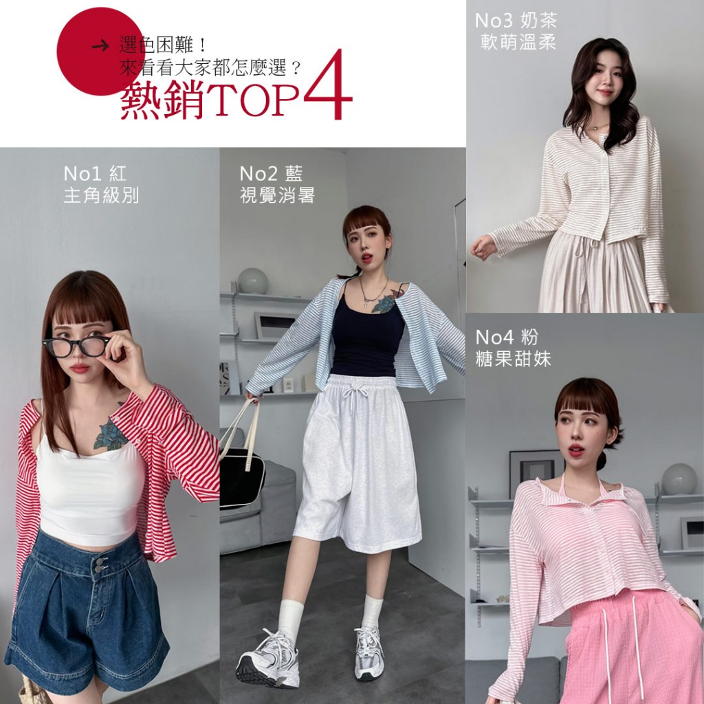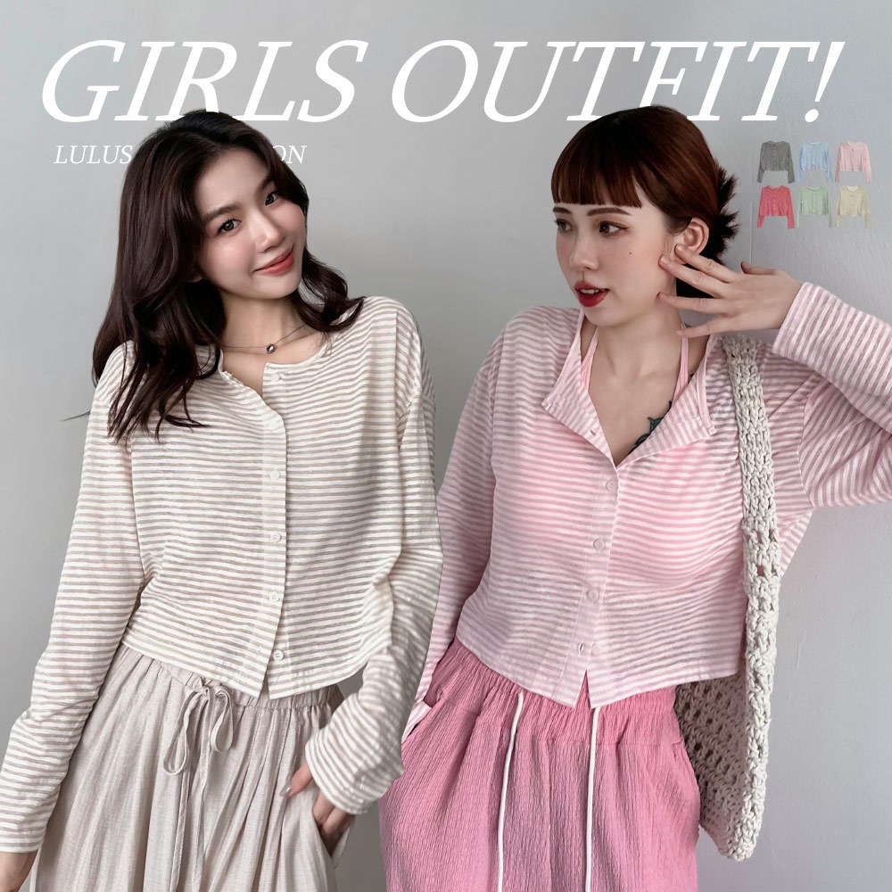 LULUS/撞色細橫紋排釦薄外套6色【A03250049】罩衫 條紋上衣 250625紅(現貨)|粉(現貨)|黑|綠(現貨)|藍(現貨)|奶茶JacketsLULUS