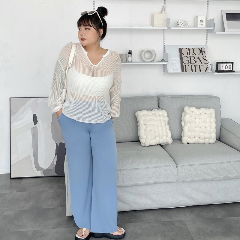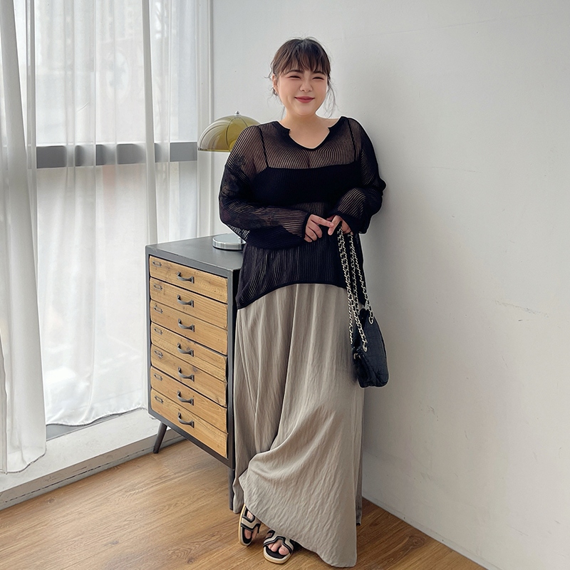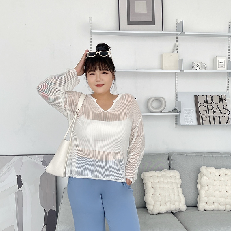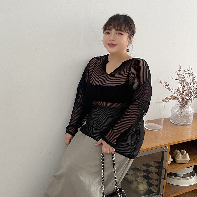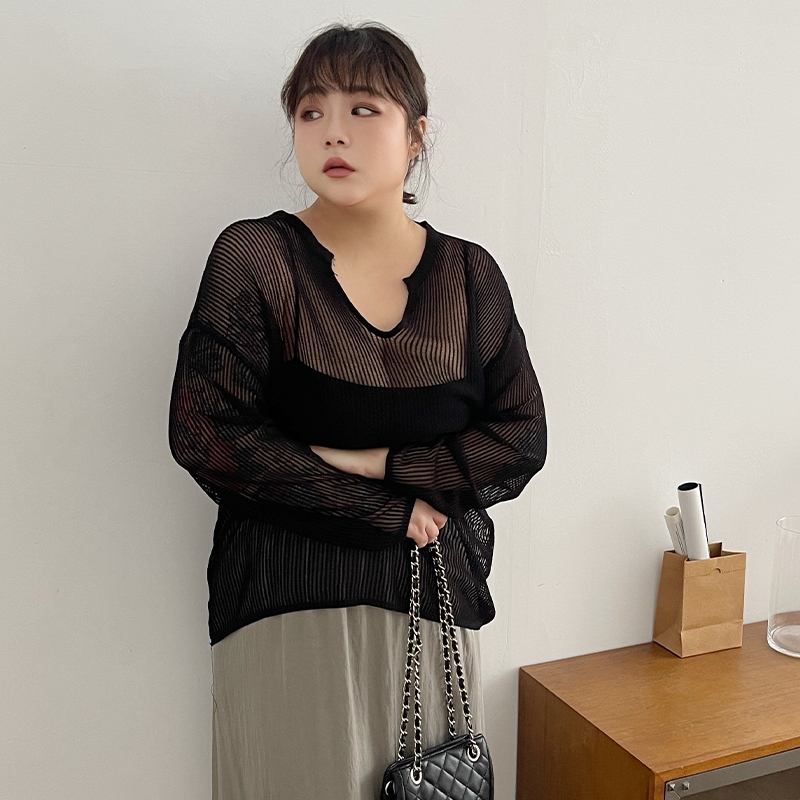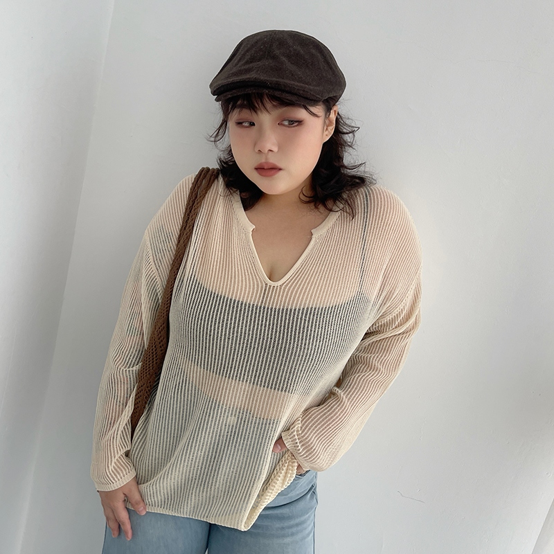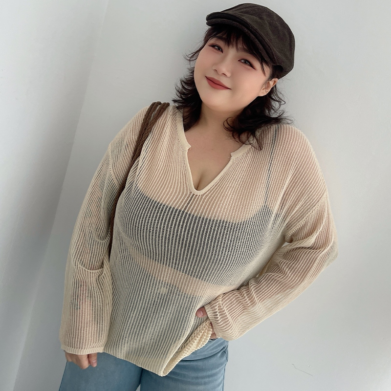 LULUS/PLUS/中大尺碼/慵懶V領針織簍空寬鬆上衣3色【A01250297】250521杏|黑|白T-shirtsLULUS