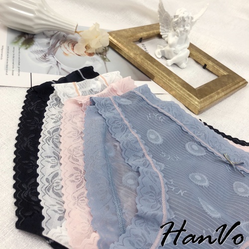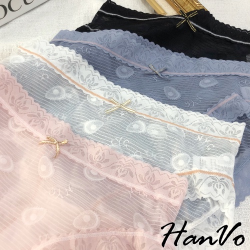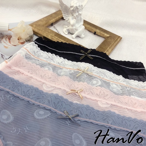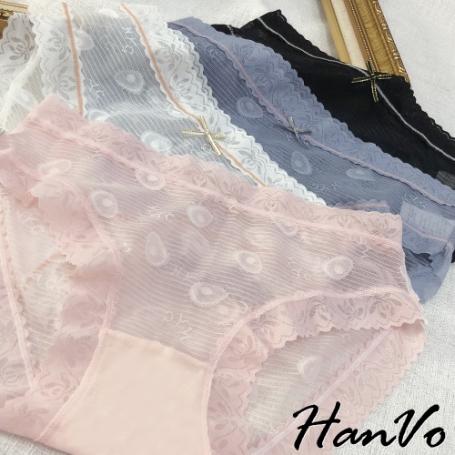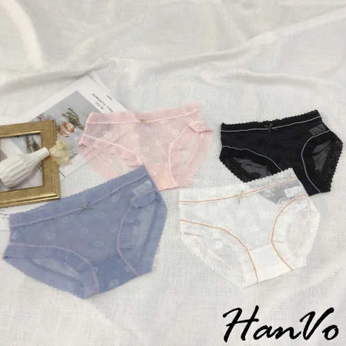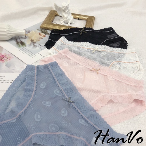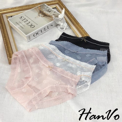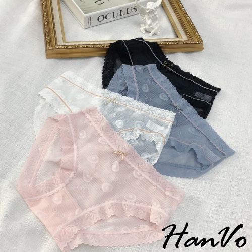 【HanVo】輕甜系牛油果網紗蕾絲內褲 涼感透膚系列 中低腰 輕盈透氣網紗蕾絲 透氣內褲 女內褲 內褲 A11-5582黑色|梨花白|花瓣粉|煙霧藍PantiesHanVo Wear Collection