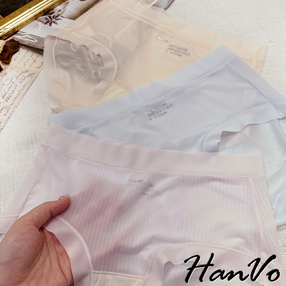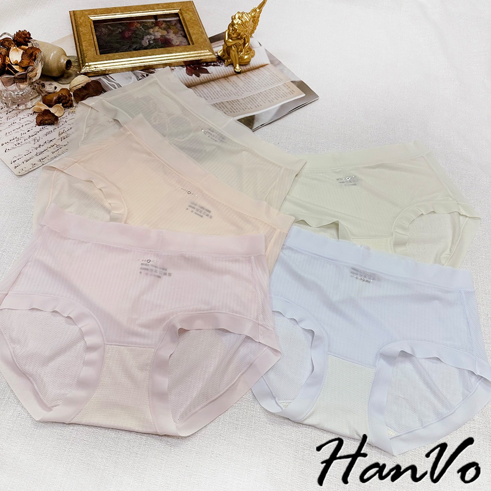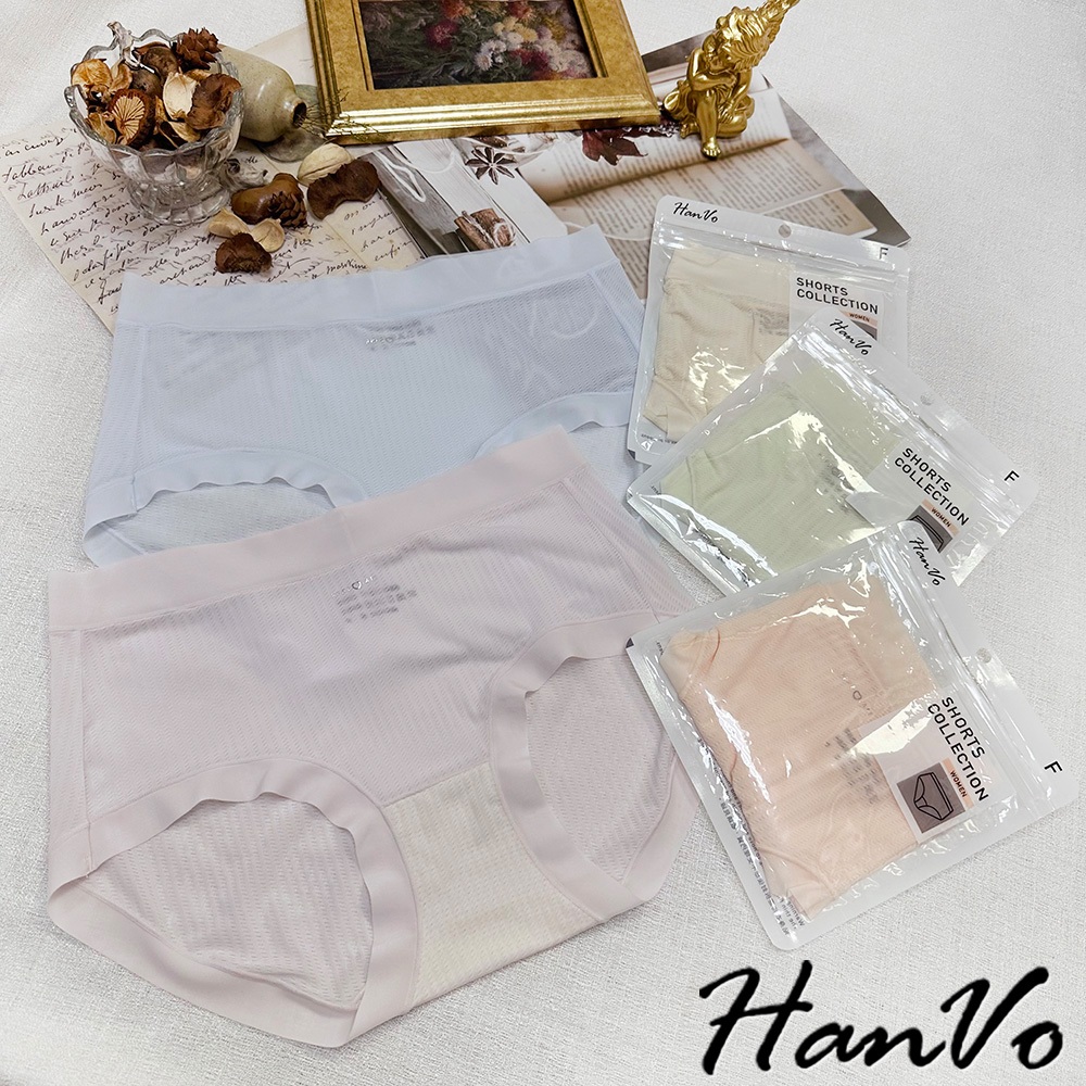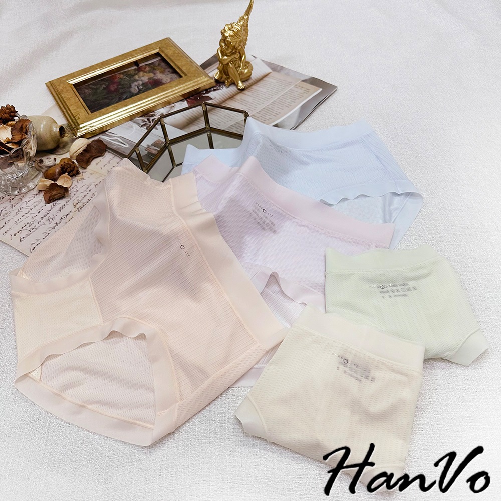 【HanVo】冰絲涼感透氣薄款內褲 速乾清爽速乾中腰三角褲 冰絲內褲 透氣內褲 女生內褲 內褲 A11-5223春草綠|晴空藍|少女粉|裸膚杏|丁香紫PantiesHanVo Wear Collection
