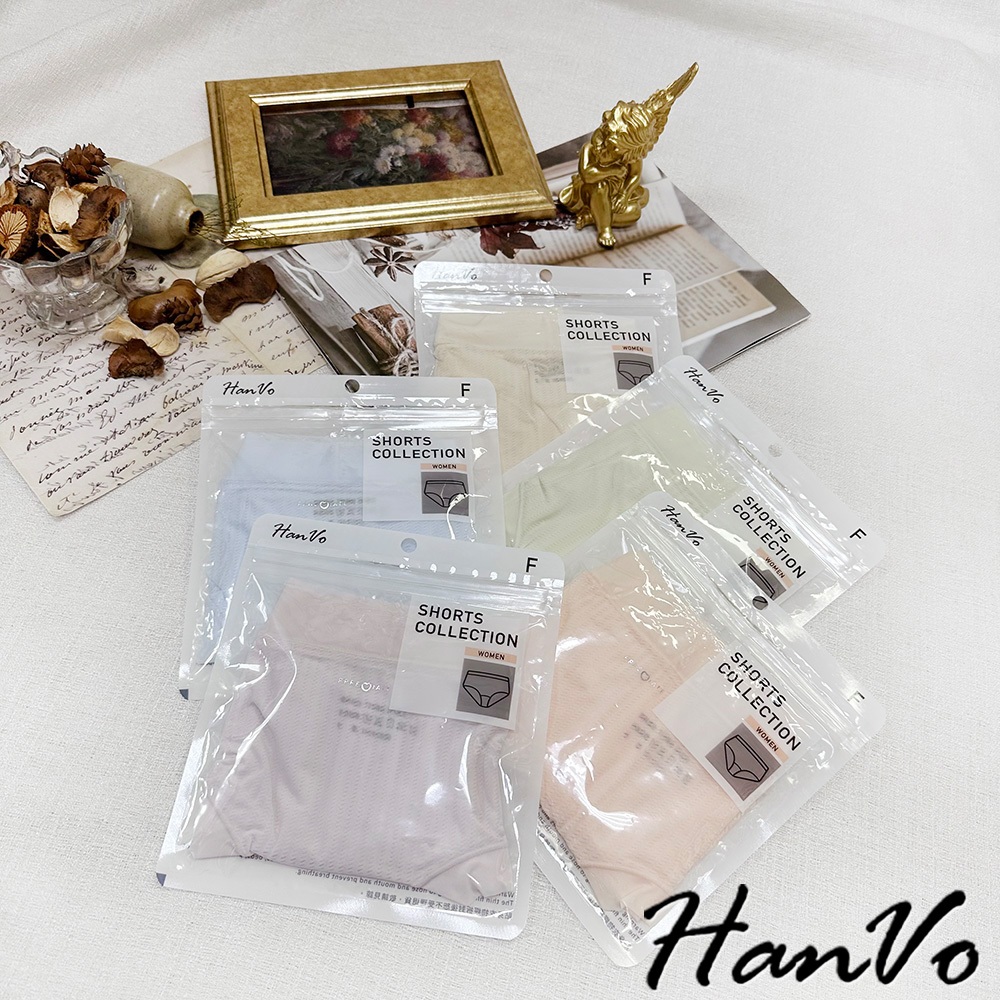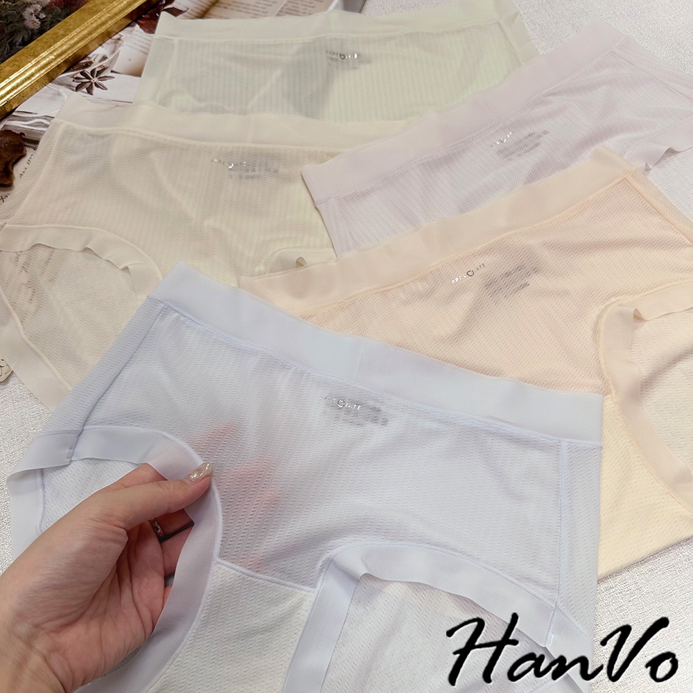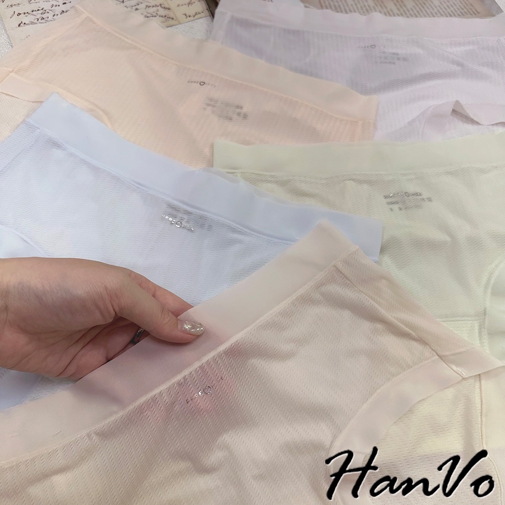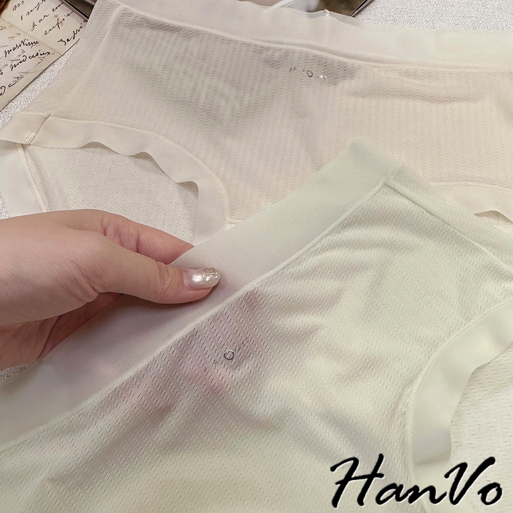 【HanVo】冰絲涼感透氣薄款內褲 速乾清爽速乾中腰三角褲 冰絲內褲 透氣內褲 女生內褲 內褲 A11-5223春草綠|晴空藍|少女粉|裸膚杏|丁香紫PantiesHanVo Wear Collection