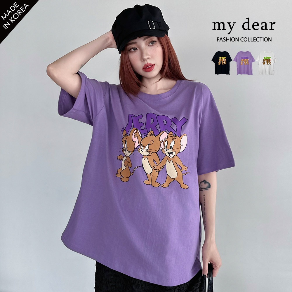 LULUS韓製/俏皮卡通膠印寬鬆T恤3色【A01250564】正韓250724紫|黑|白T-shirtsLULUS