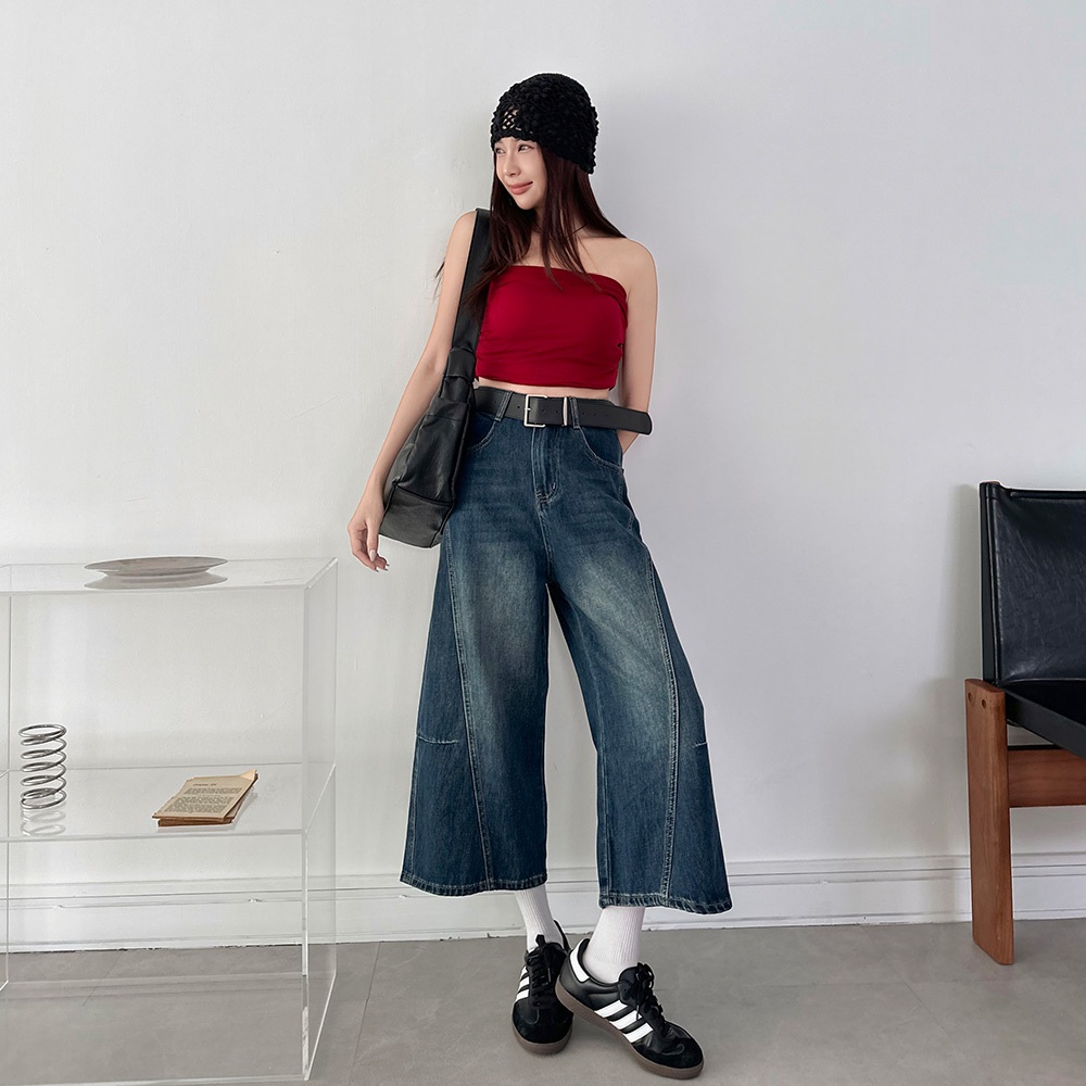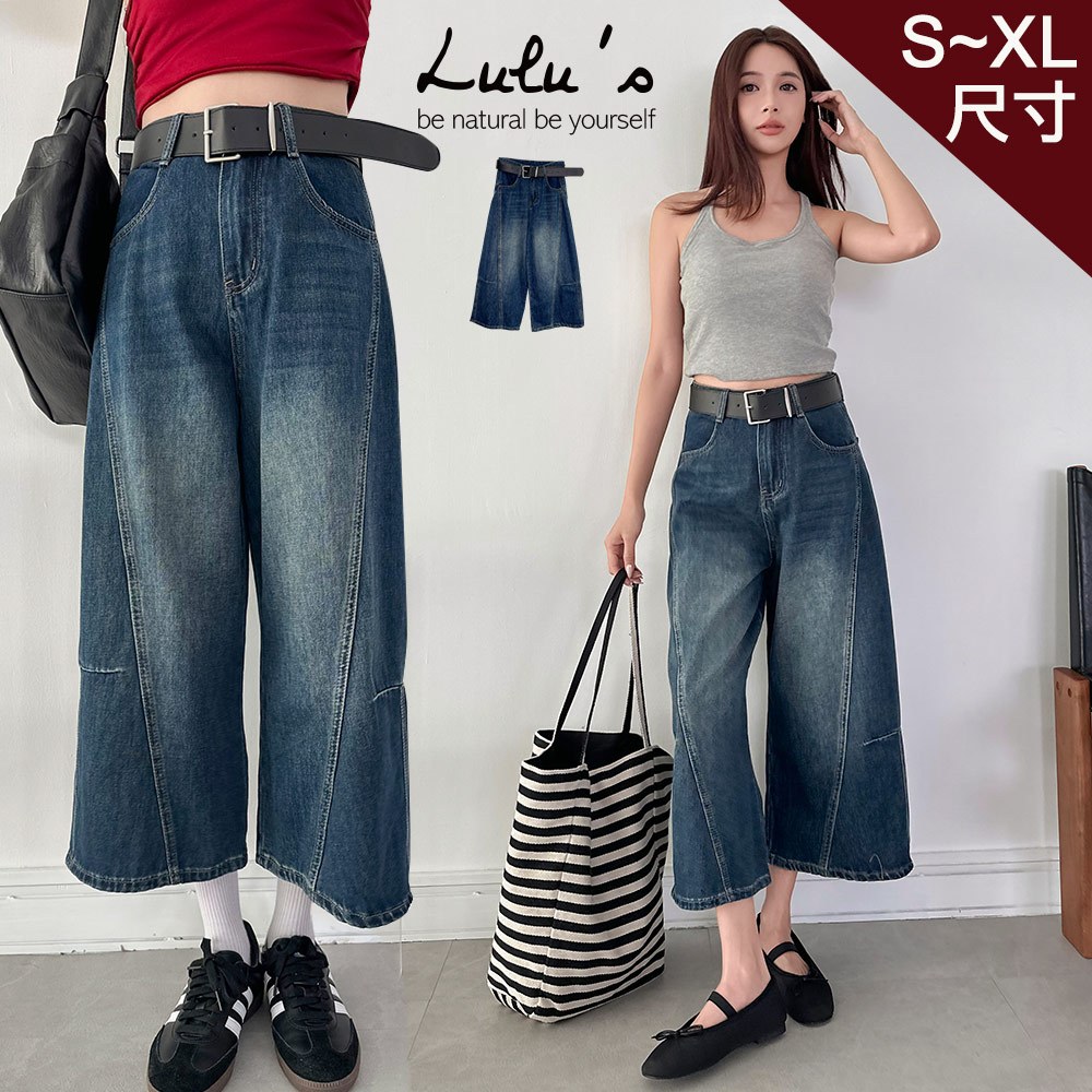 LULUS/時髦必收牛仔七分褲附皮帶S-XL復古藍【A04250181】高腰 250813復古藍L|復古藍M|復古藍S|復古藍XLPantsLULUS