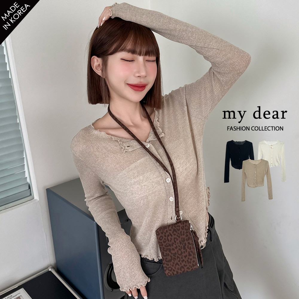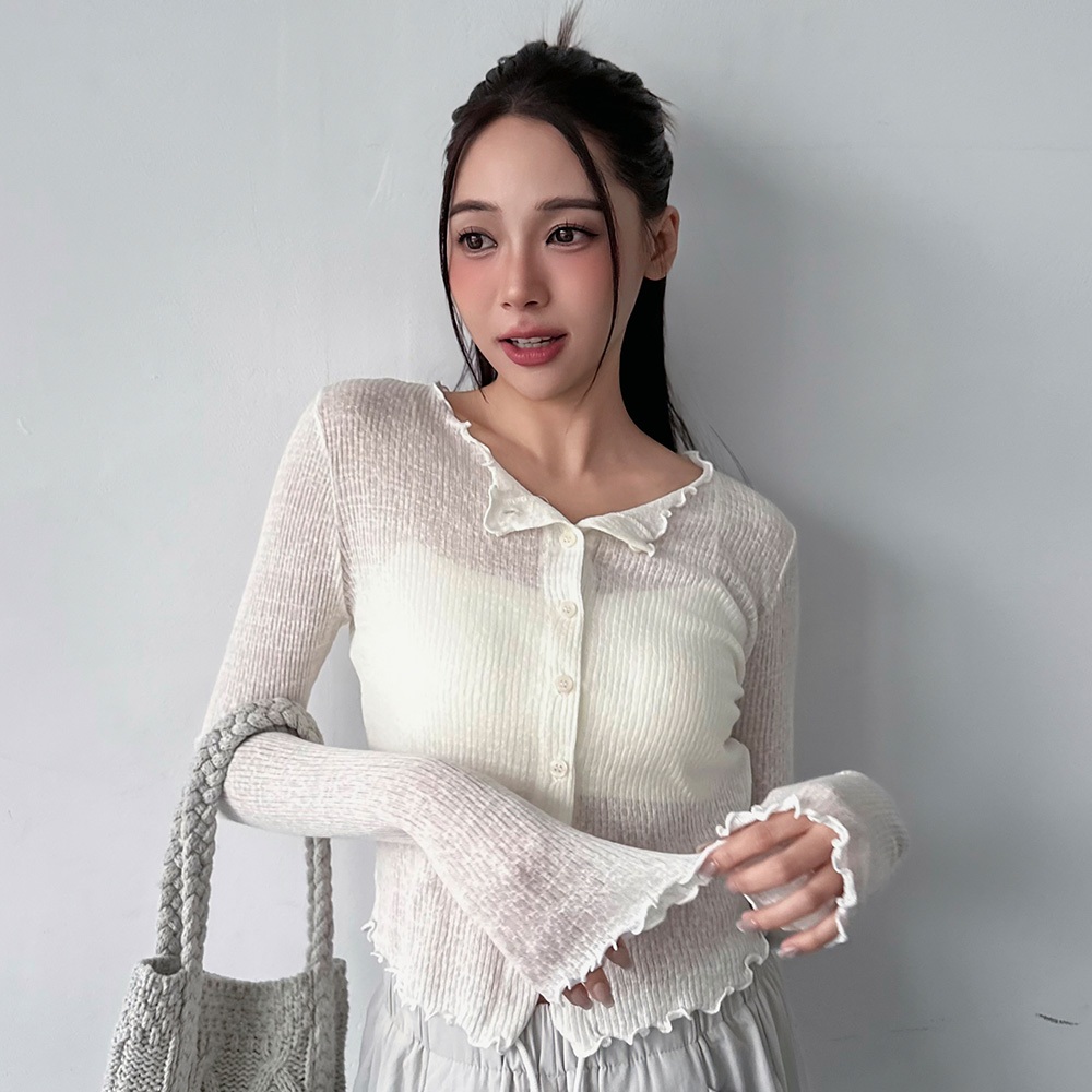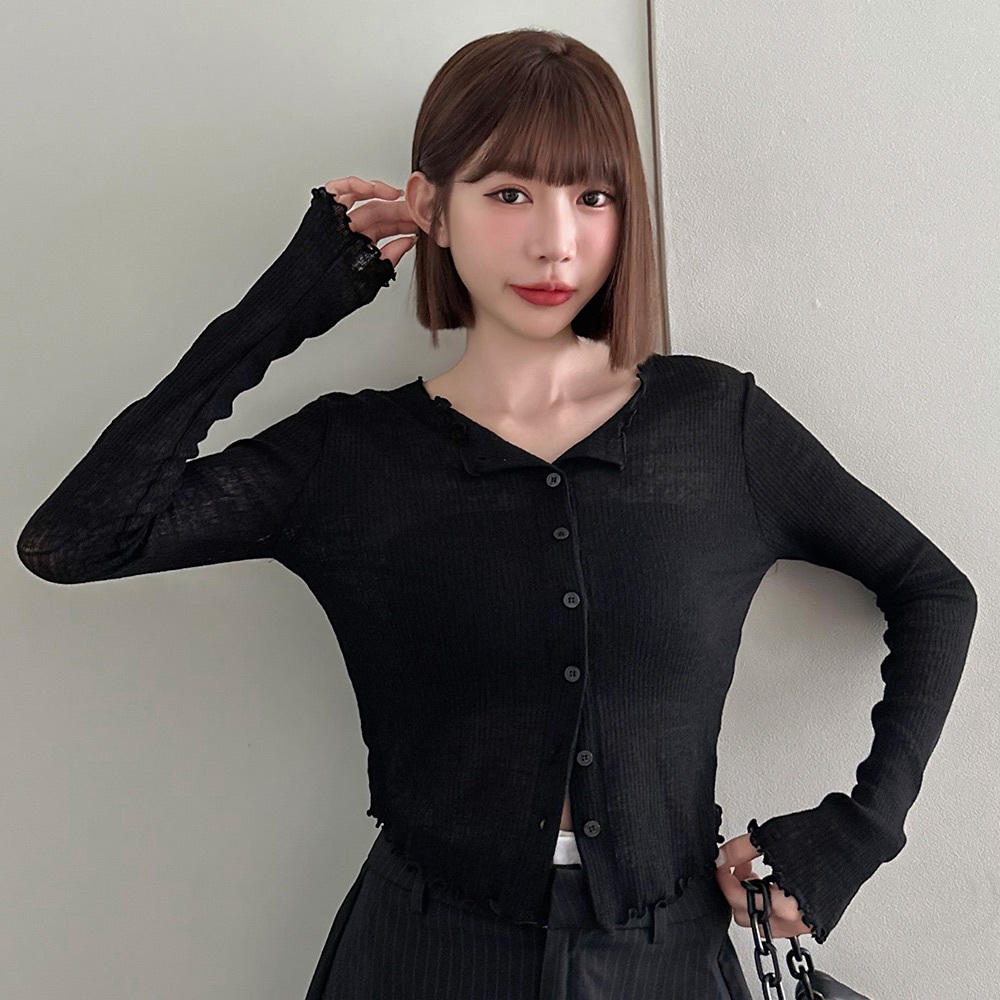 LULUS韓製/輕薄木耳邊排釦上衣3色【A01250449】正韓250626卡其|黑|白T-shirtsLULUS