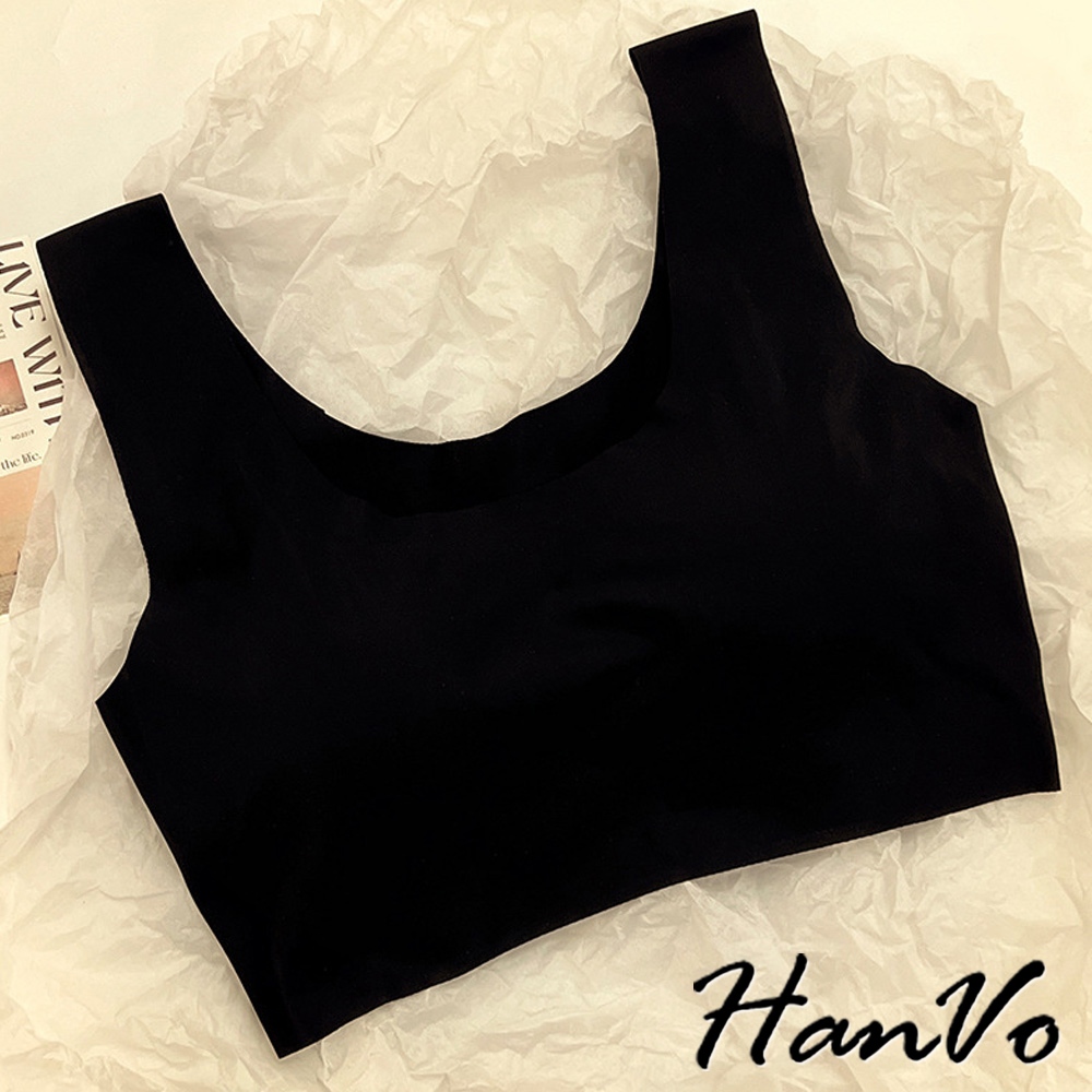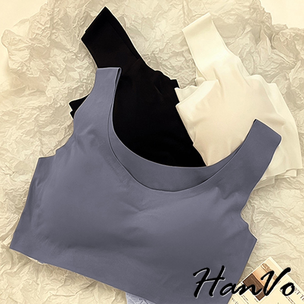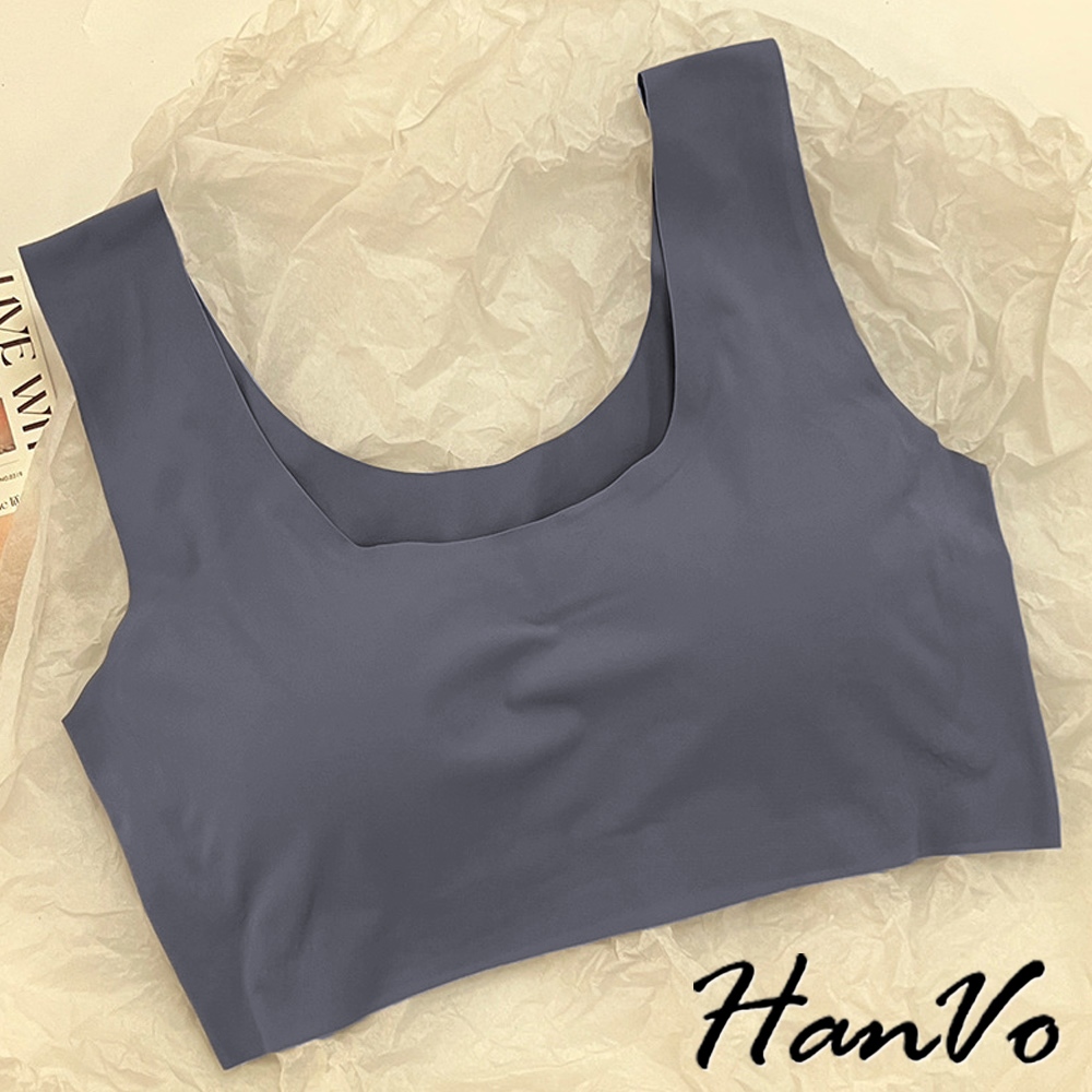 【HanVo】零束縛感無痕運動內衣背心 無鋼圈內衣 附可拆式胸墊 舒適彈性 女生內衣 內衣 女生衣著 A09-5079黑色|灰色BrasHanVo Wear Collection