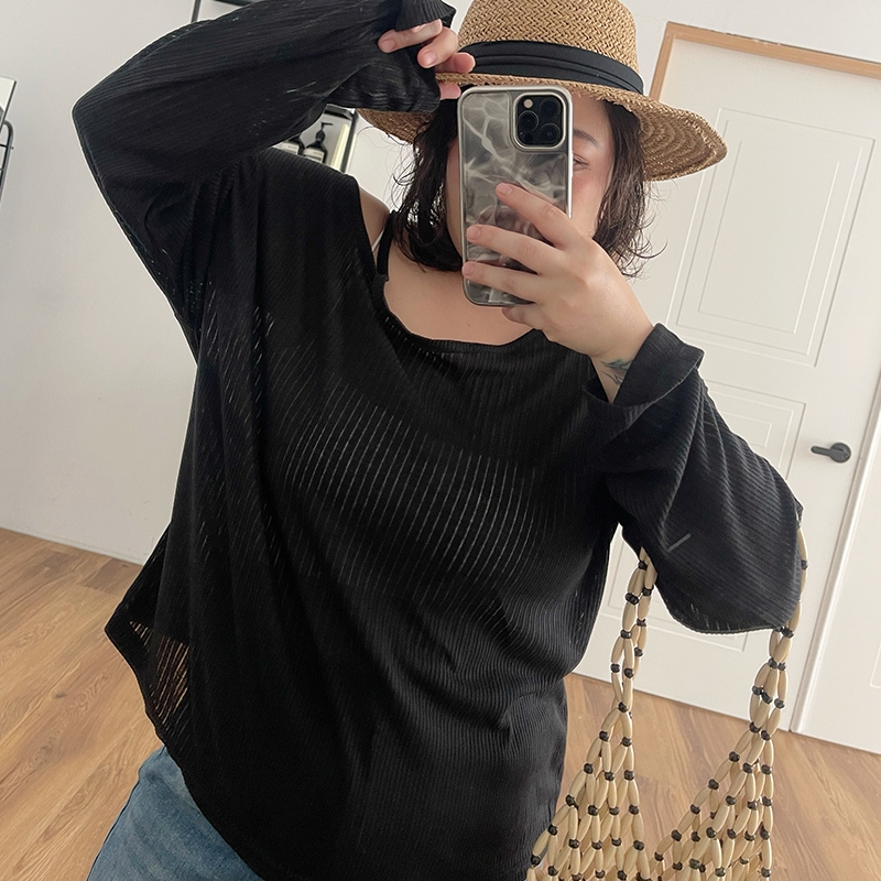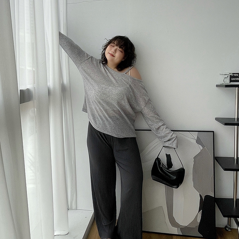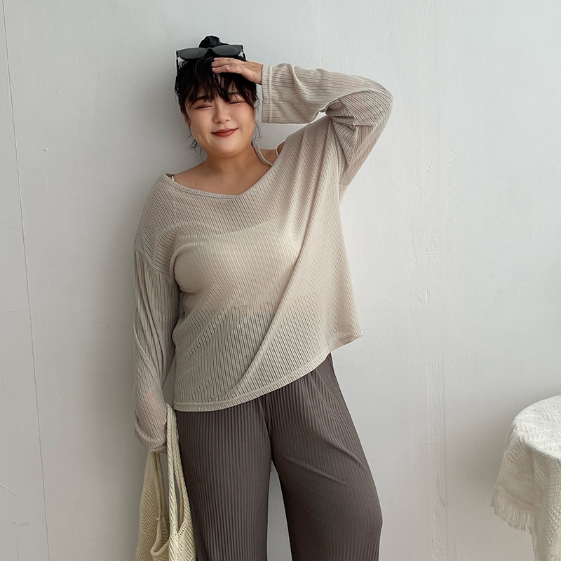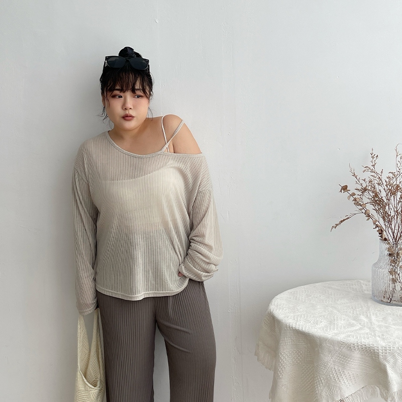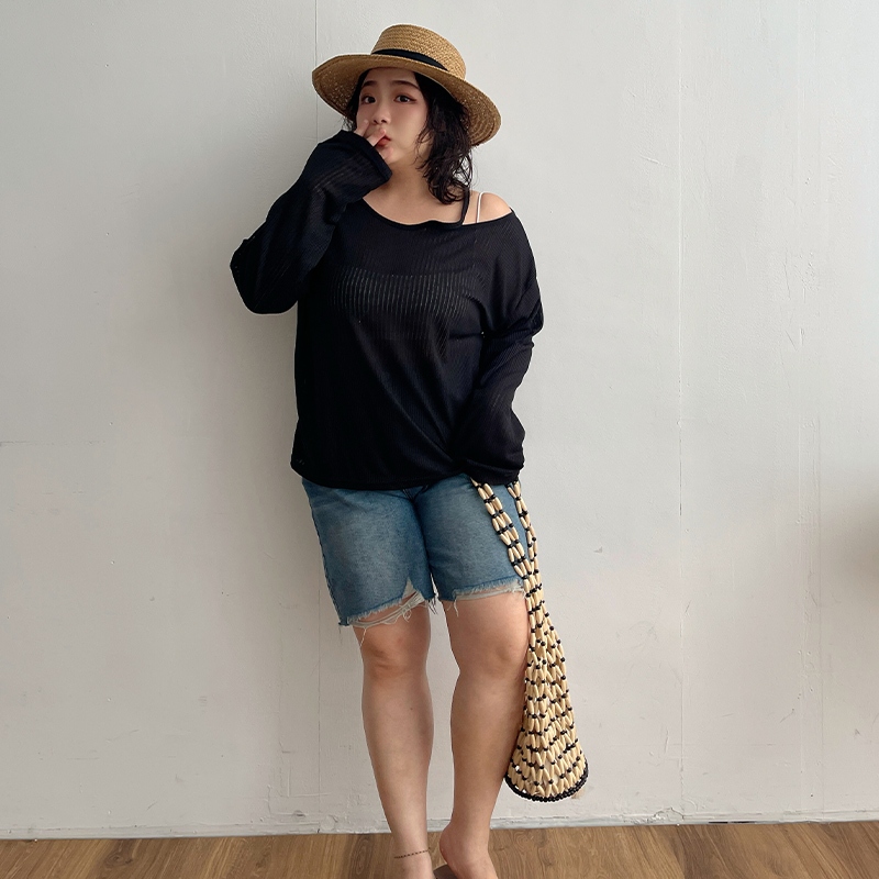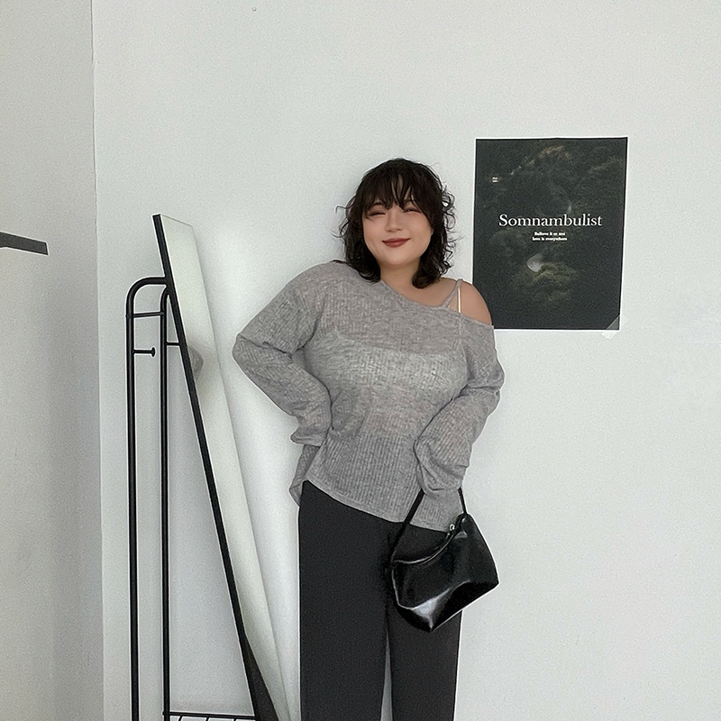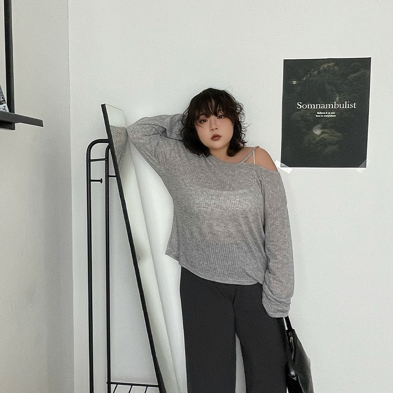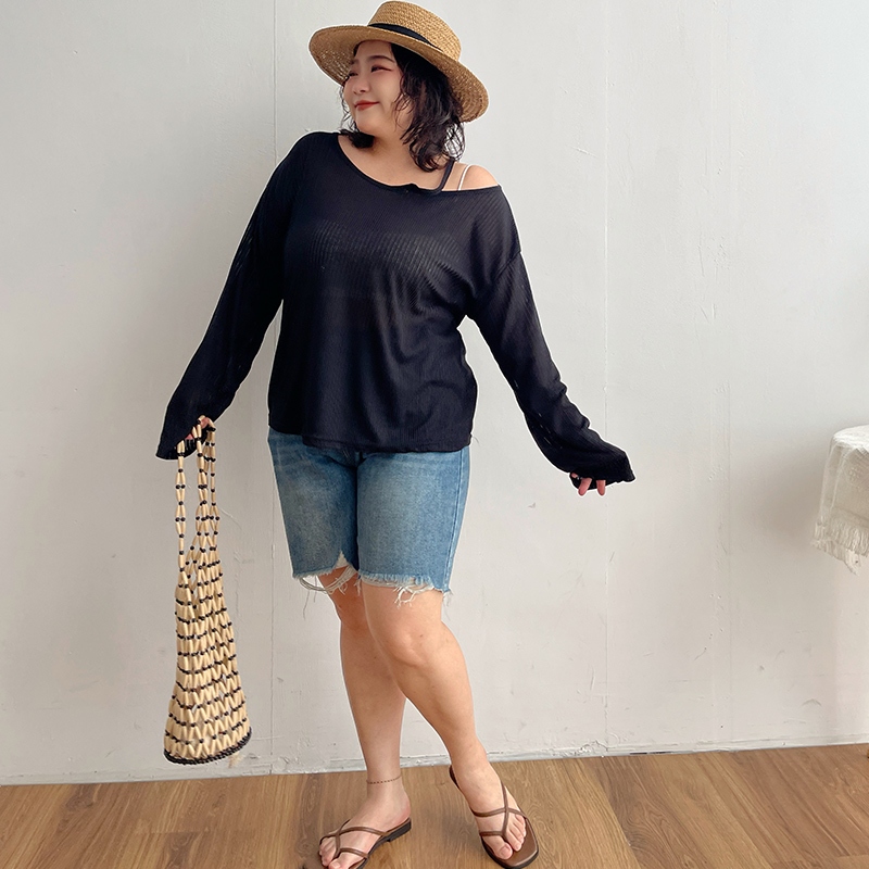 LULUS/PLUS/中大尺碼/造型露肩透膚寬鬆上衣4色【A01250296】250507灰杏|花灰|黑|白T-shirtsLULUS