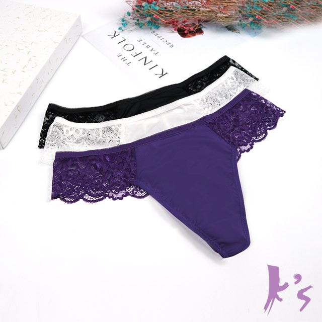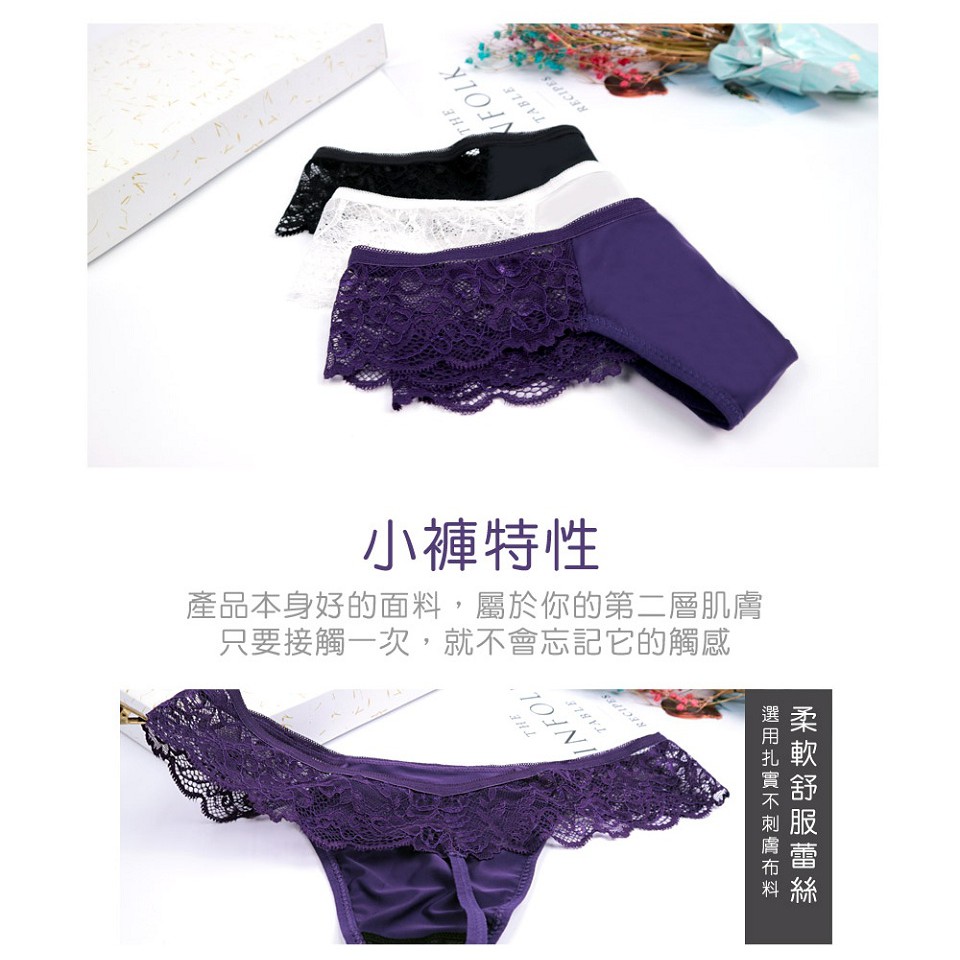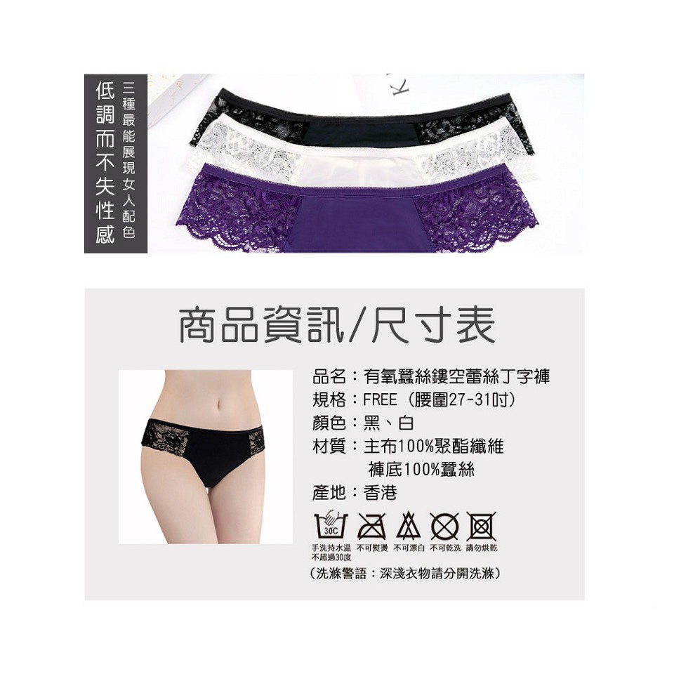 【K’s凱恩絲】鏤空蕾絲有氧蠶絲丁字褲-紫、白、黑色白,F (腰圍27-31吋)|黑,F (腰圍27-31吋)|紫,F (腰圍27-31吋)PantiesKS凱恩絲蠶絲塑身內衣