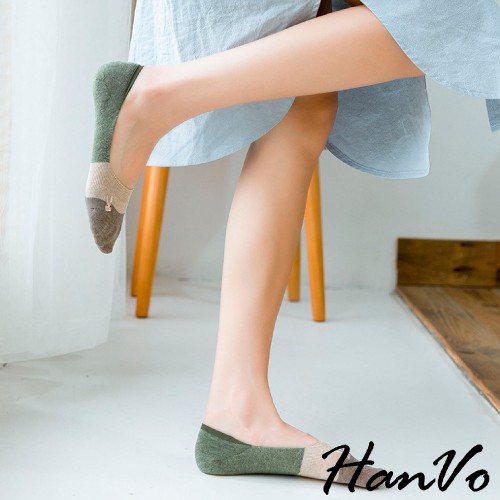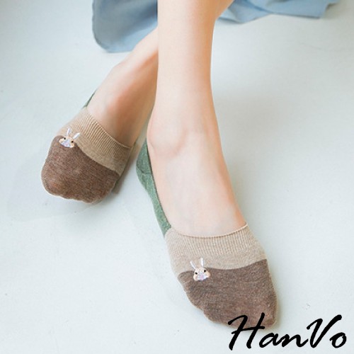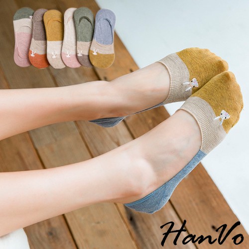 【HanVo】兔子刺繡止滑矽膠撞色隱形襪 現貨韓系少女襪船型襪 韓系襪子 襪子 襪子女 女生配件 A12-6024黃藍|綠粉|咖綠|粉卡其|橘咖|卡其黃SocksHanVo Wear Collection