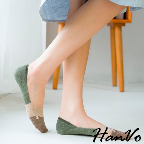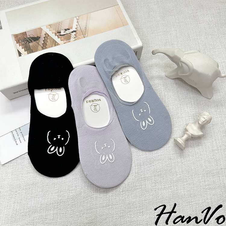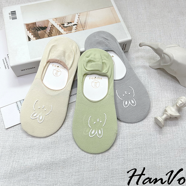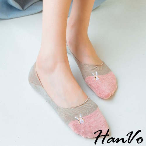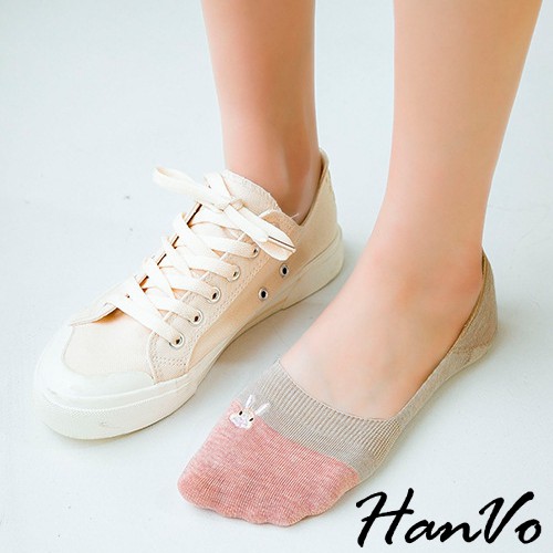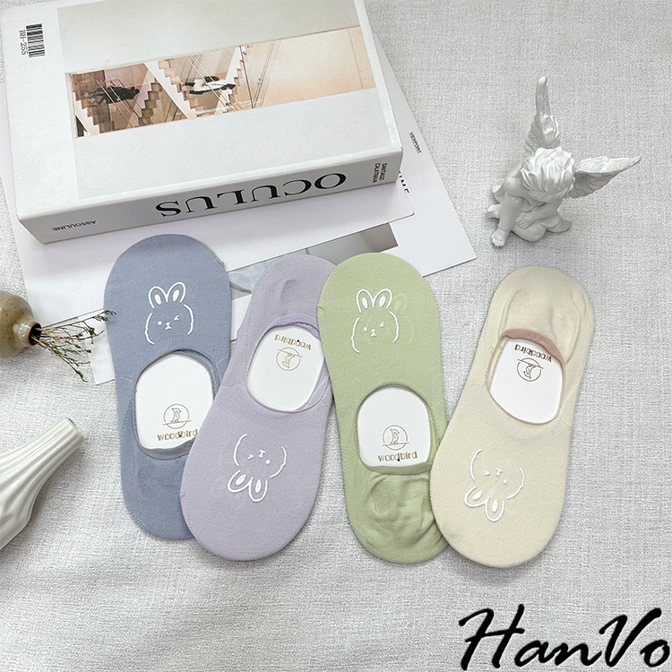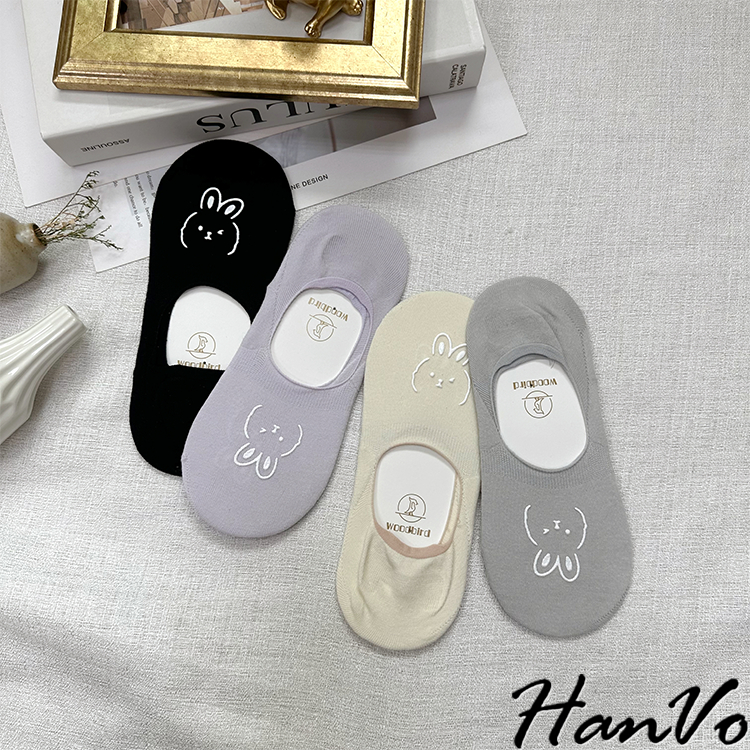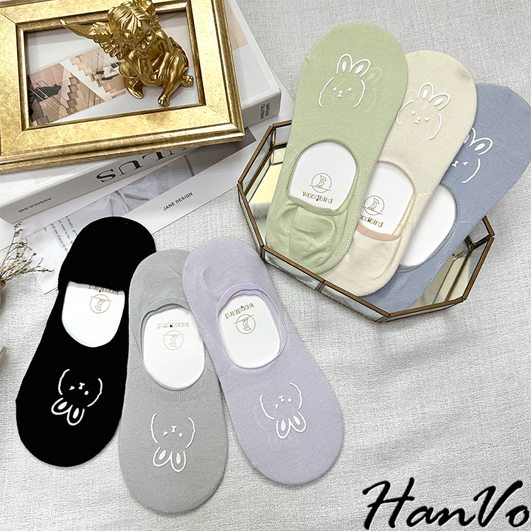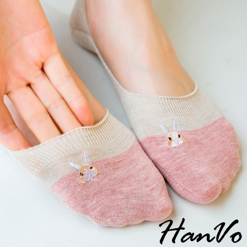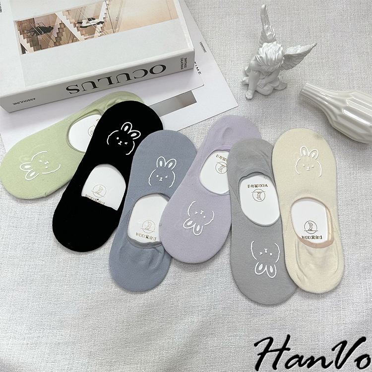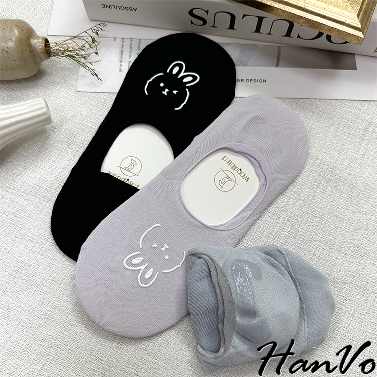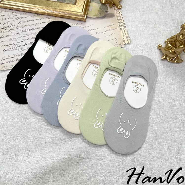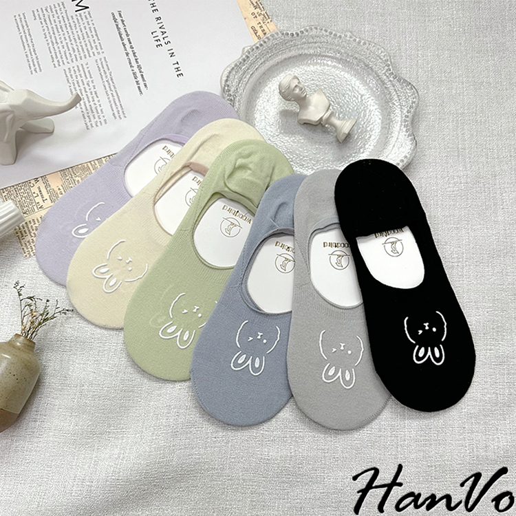【HanVo】春夏柔和可愛兔兔隱形襪 薄款透氣親膚舒適淺口棉質船襪 流行百搭休閒襪 女生配件 A12-6194丁香紫|雲藍|草綠|米色|霧灰|黑色SocksHanVo Wear Collection