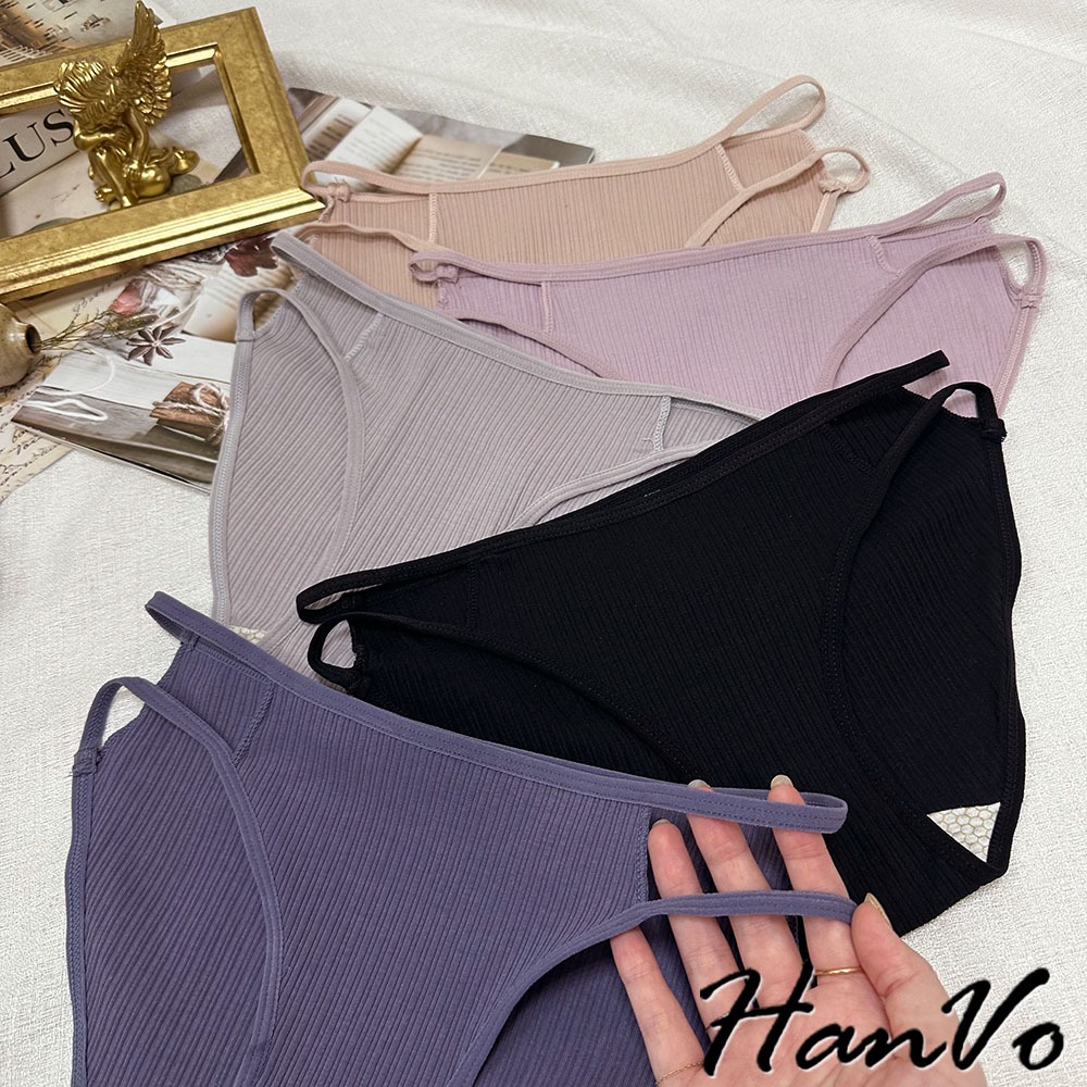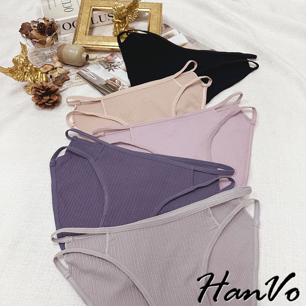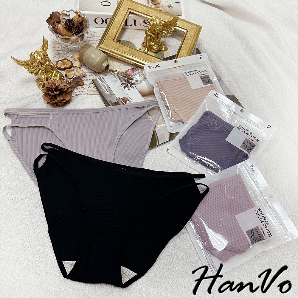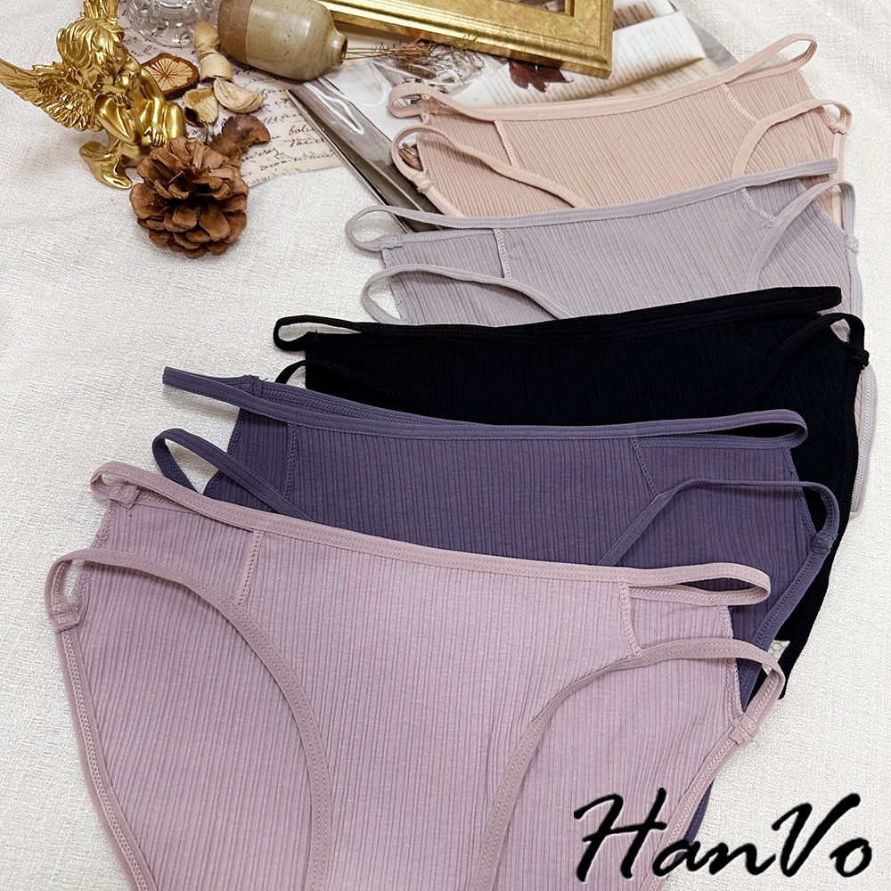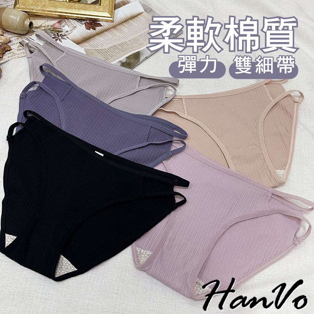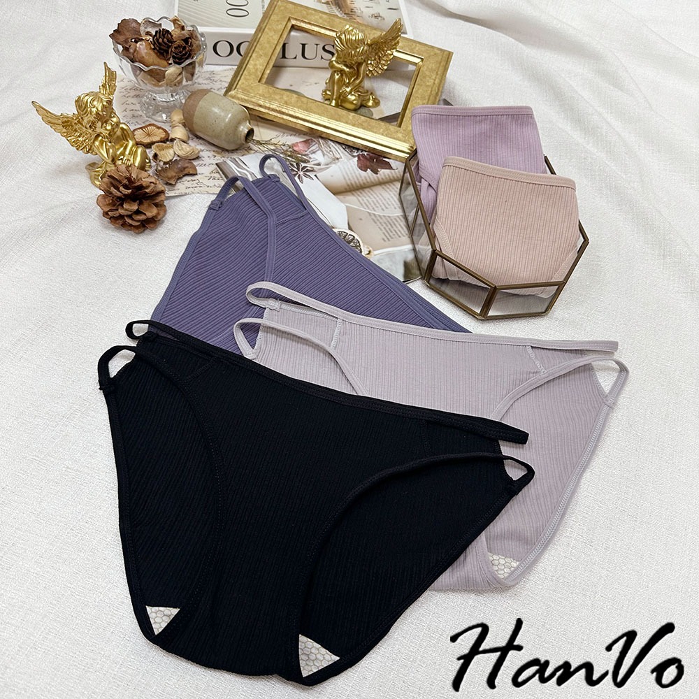 【HanVo】雙細帶直紋棉質內褲 透氣吸濕排汗中低腰 獨立包裝 舒適親膚柔軟 女生內褲 女內褲 內褲 A11-5871