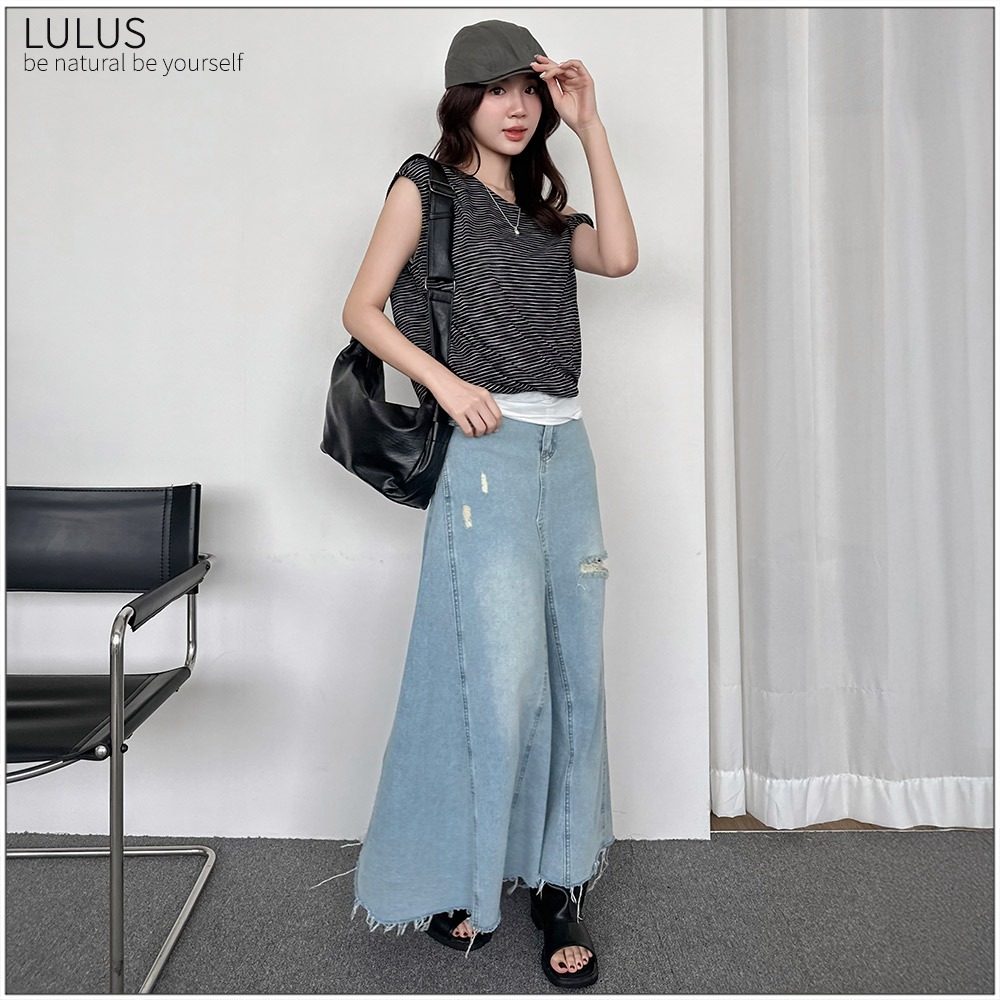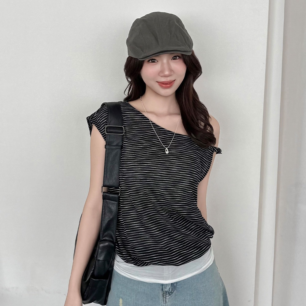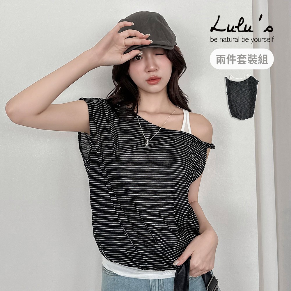 LULUS/兩件式鬆弛感橫紋露肩上衣+背心黑【A01250653】250813黑T-shirtsLULUS