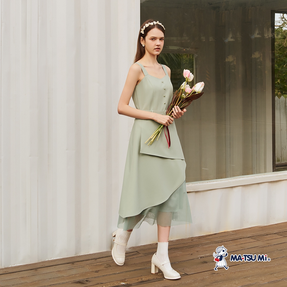 MA‧TSU Mi 優雅層次雪紡拼接網紗吊帶洋裝(卡其.草綠)卡其,S|卡其,M|卡其,L|草綠,S|草綠,M|草綠,LMA•TSU Mi瑪之蜜官方旗艦店